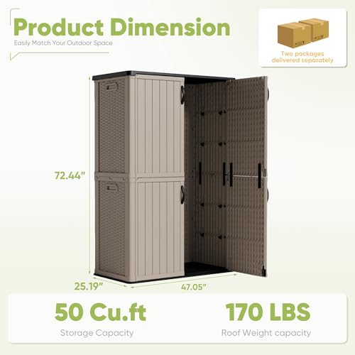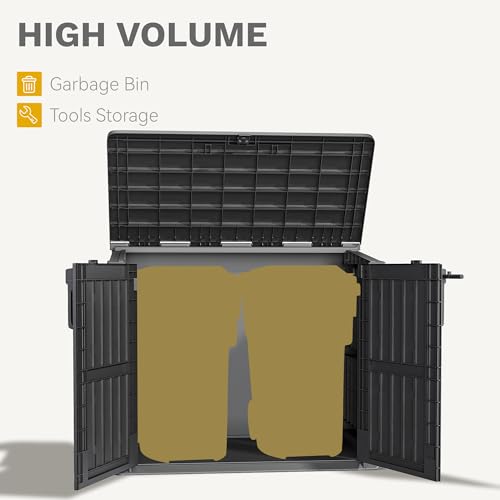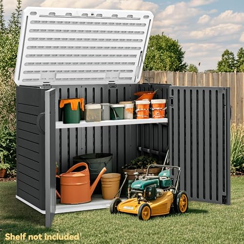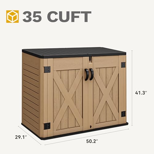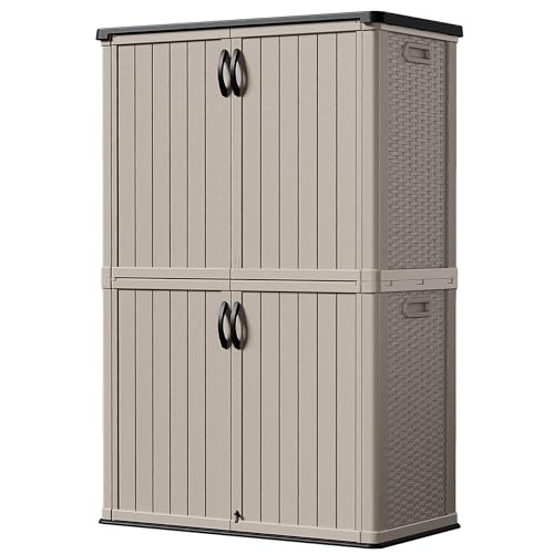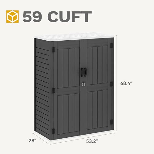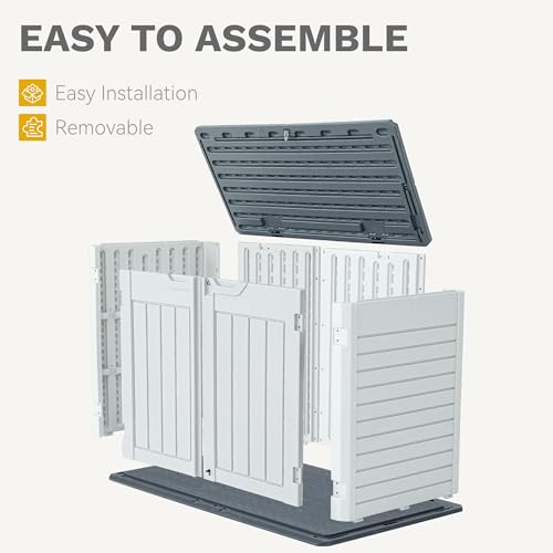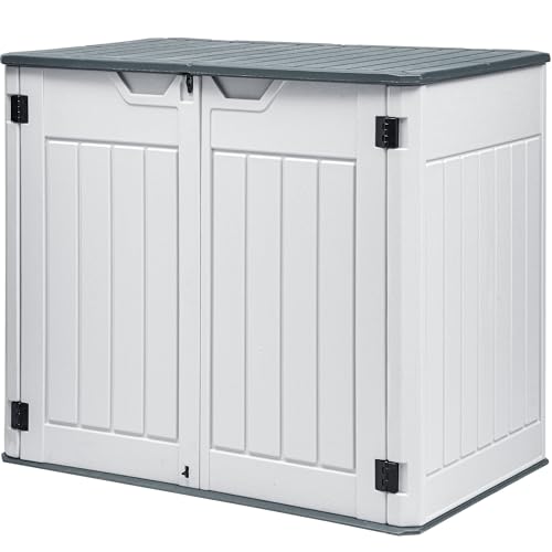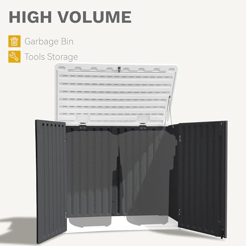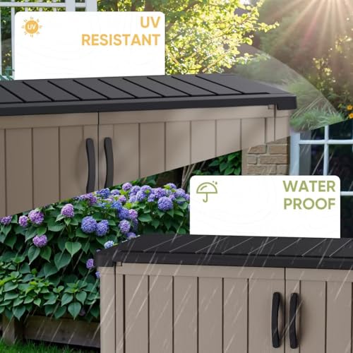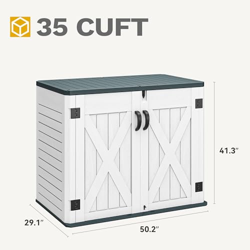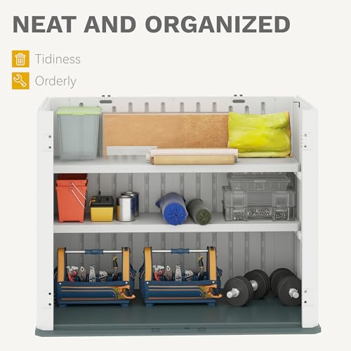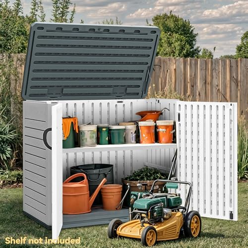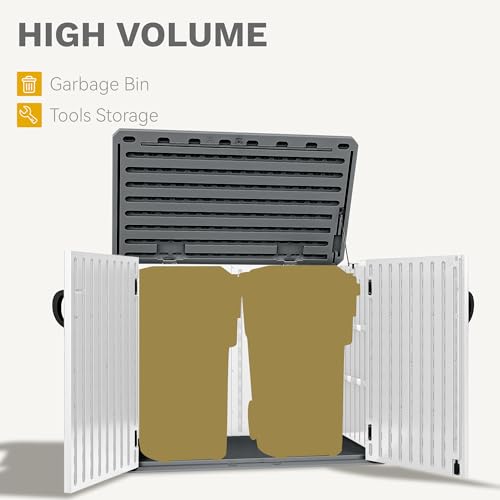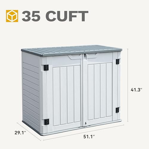 DWVO Outdoor Weather-Resistant Horizontal Storage Shed, 35 Cu Ft Capacity, Lockable and Waterproof, Suitable for Storing Garden Tools, Light Gray