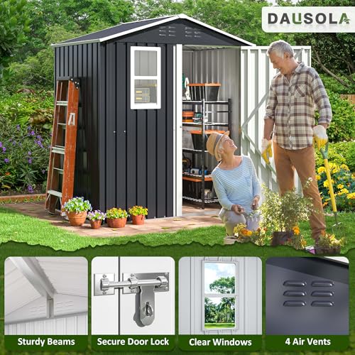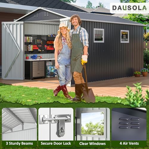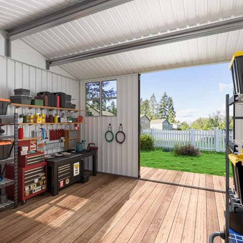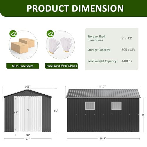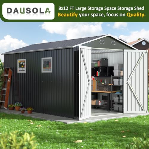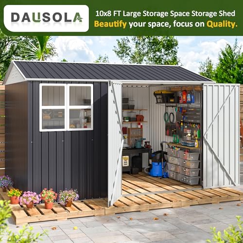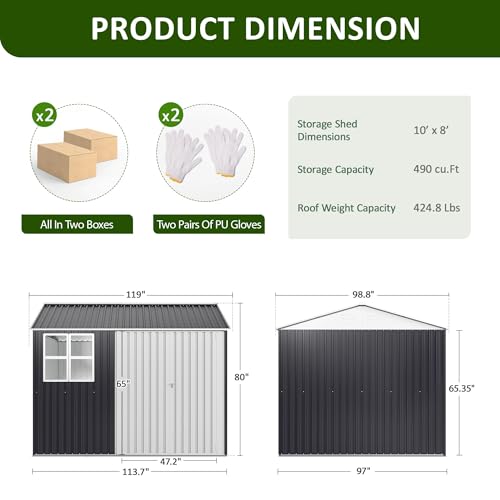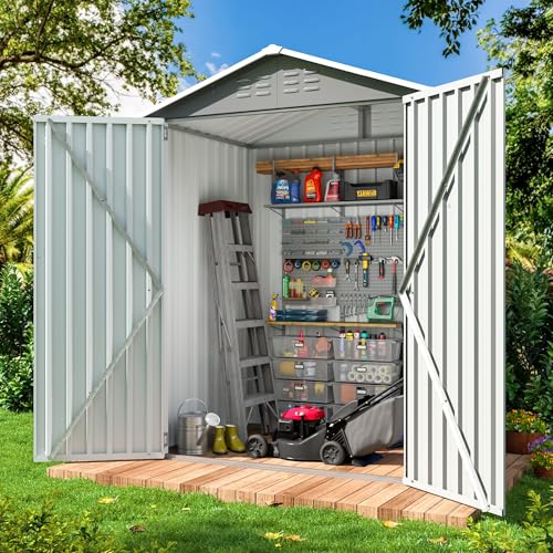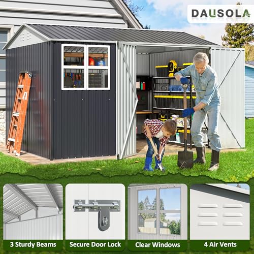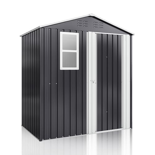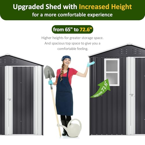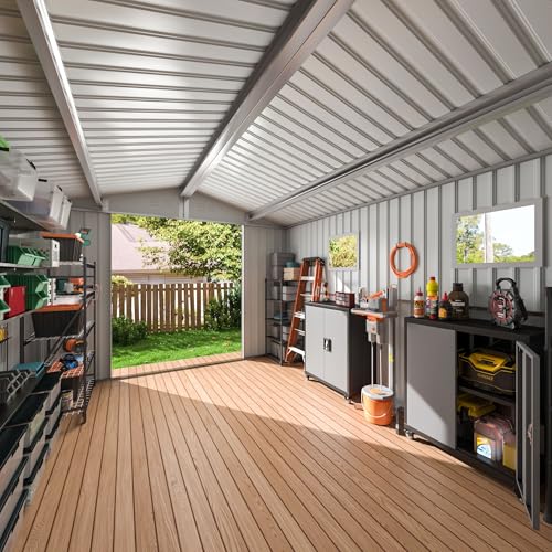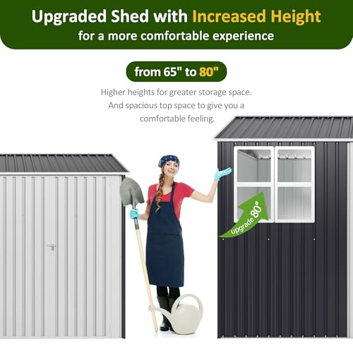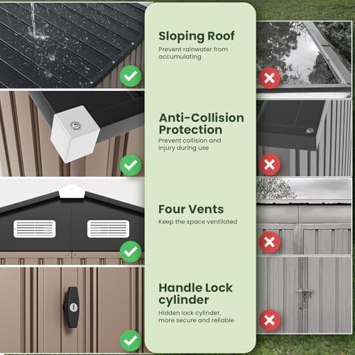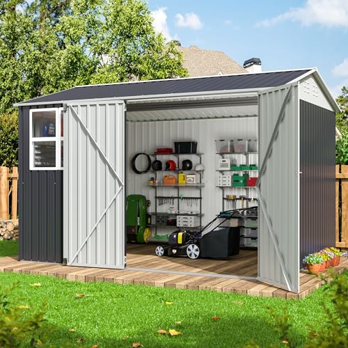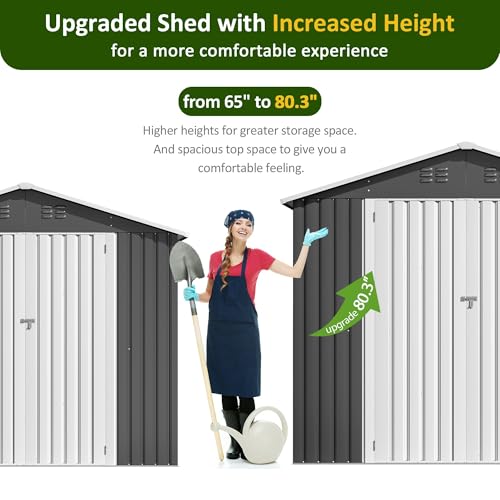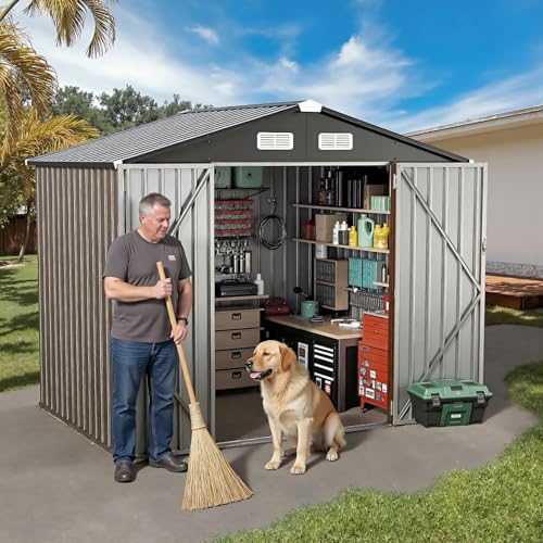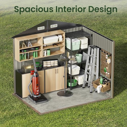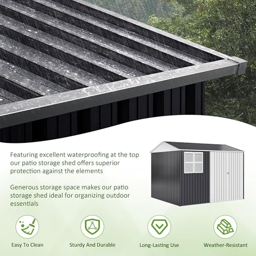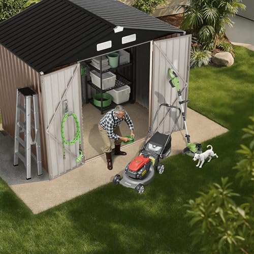 GVDV 8x6 FT Outdoor Metal Storage Shed, Durable Garden Shed with Updated Frame Structure for Backyard, Patio, Tool Storage, All-Weather Shelter for Bike, Gardening Tools