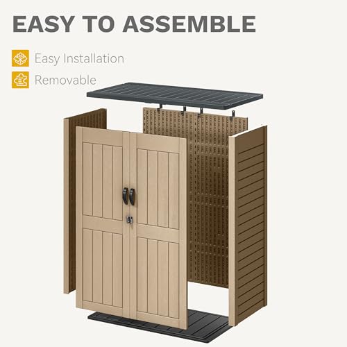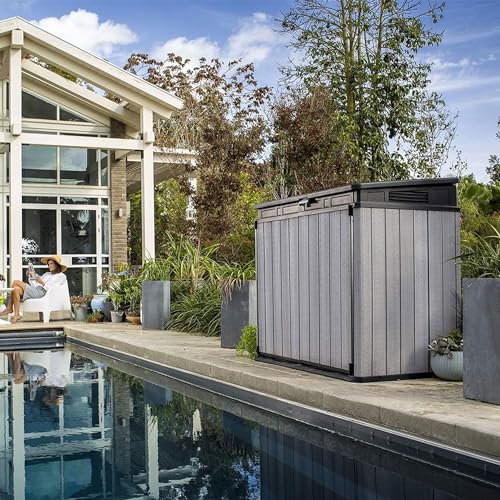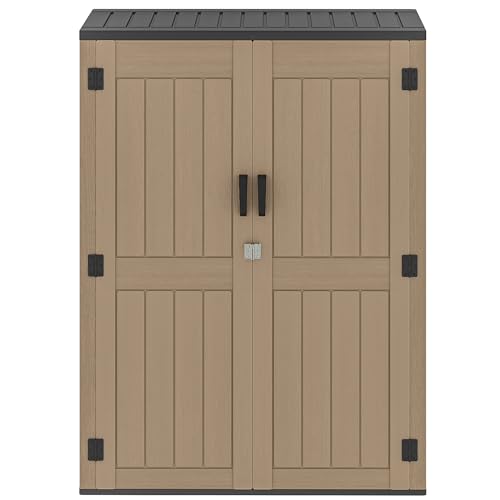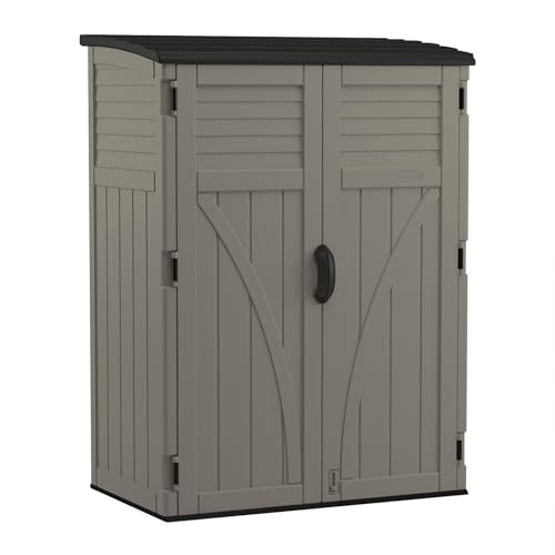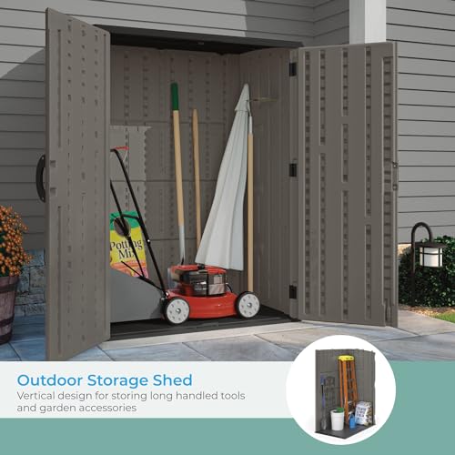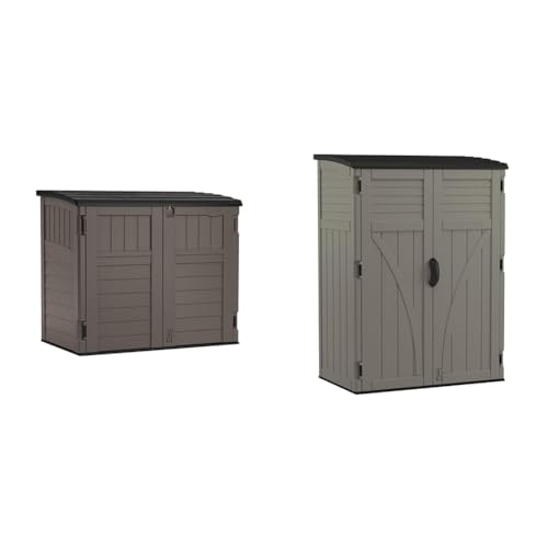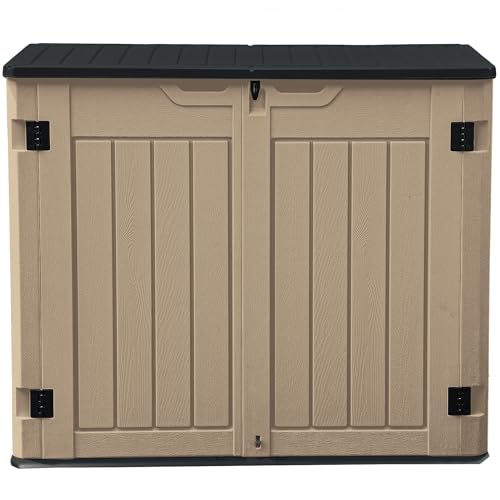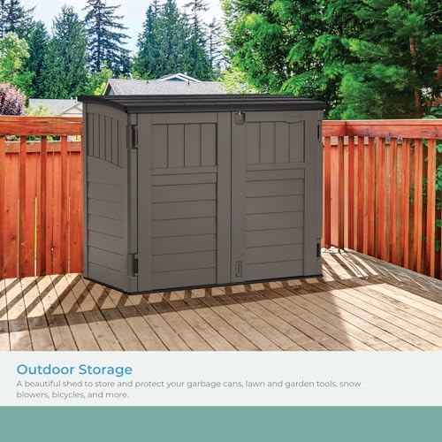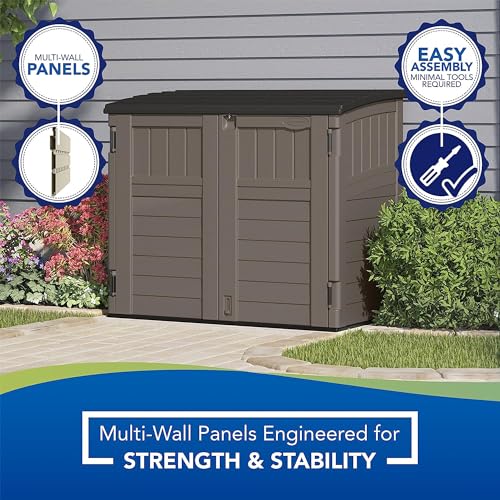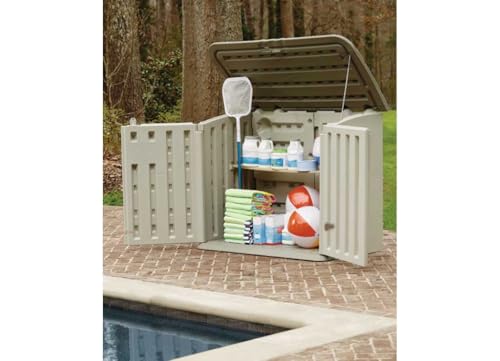 Rubbermaid Small Horizontal Resin Outdoor Storage Shed With Floor (4.5 x 3 Ft) Weather Resistant, Beige/Brown, Organization for Home/Backyard/Pool Chemicals/Toys/Garden Tools/Porch/Patio Cushions