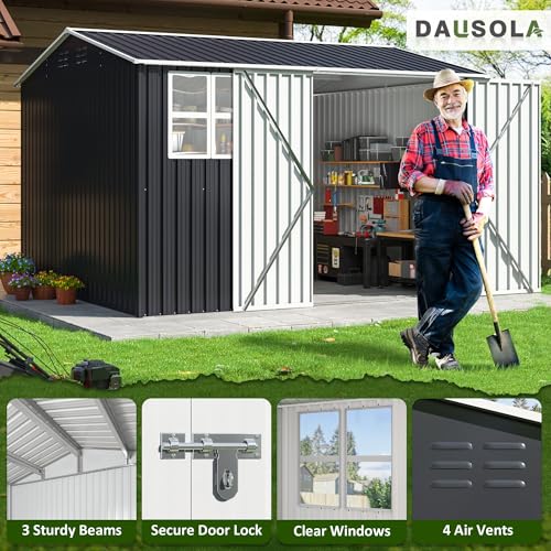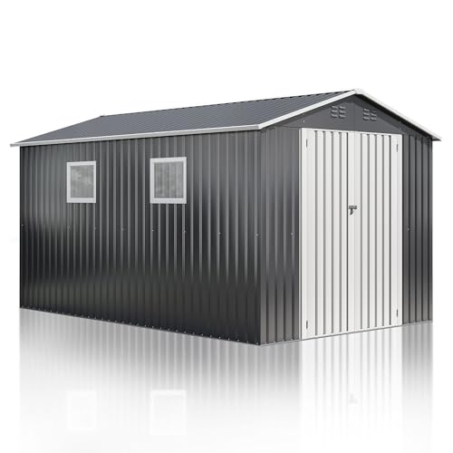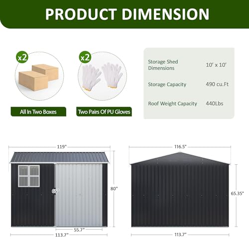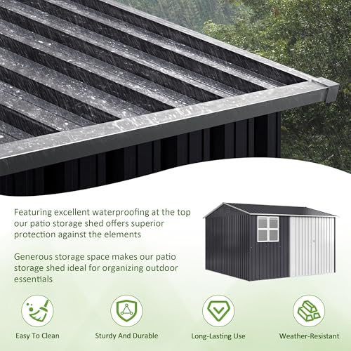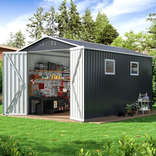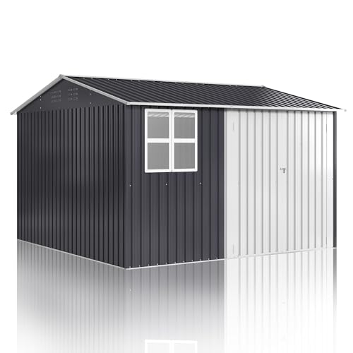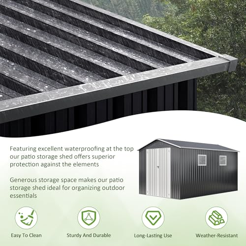 10x10 FT Outdoor Storage Shed, Metal Garden Tool Shed with Updated Frame Structure, Lockable Doors and Windows, Ideal for Backyard Garden Patio Lawn, Grey