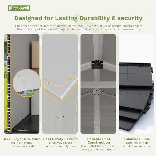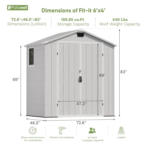 Patiowell 6 x 4 FT Plastic Outdoor Storage Shed with Floor, Resin Outside Tool Shed with Window and Lockable Door for Garden, Backyard, Tool Storage Use, Easy to Install, Light Grey