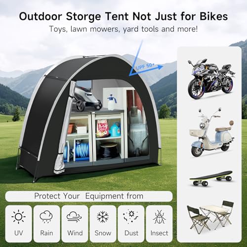 Bike Storage Tent Outdoor - Upgraded Portable Bicycle Storage Sheds with 210D Oxford Fabric PU5000 Waterproof for 2-3 Bikes, Bike Tent/Bike Shed/Bike Cover for Motorcycle, Garden Tools, etc