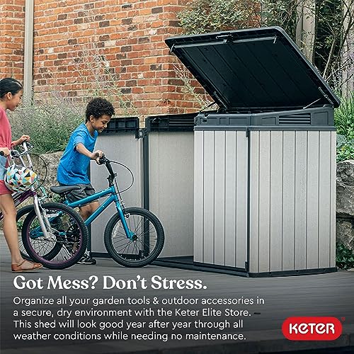 Keter Manor 4x6 Resin Outdoor Storage Shed Kit-Perfect to Store Patio Furniture, Garden Tools Bike Accessories, Beach Chairs and Lawn Mower, Grey & White
