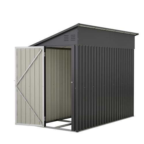 4×8 FT Outdoor Metal Storage Shed,Heavy-Duty Lean to Storage Shed with Floor Base,Garden Tool Metal Storage House W/Lockable Door and 2 Air Vents,Weather Resistant,for Backyard,Patio,Lawn,Black