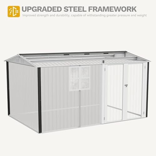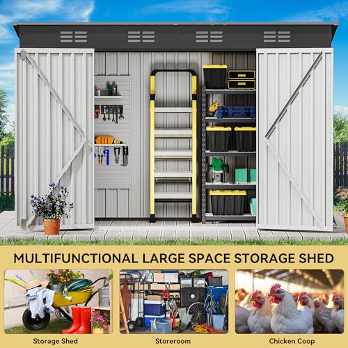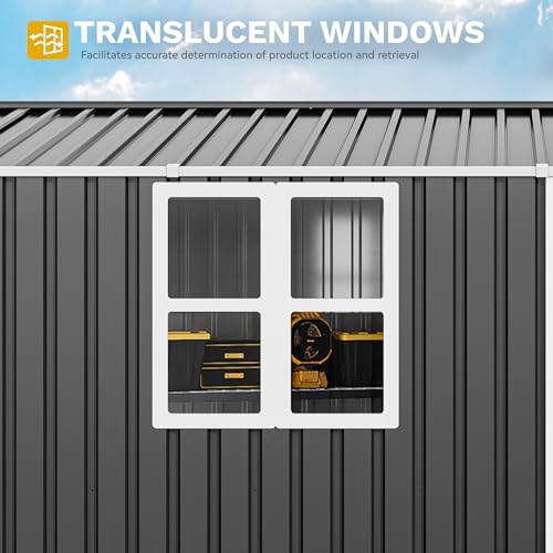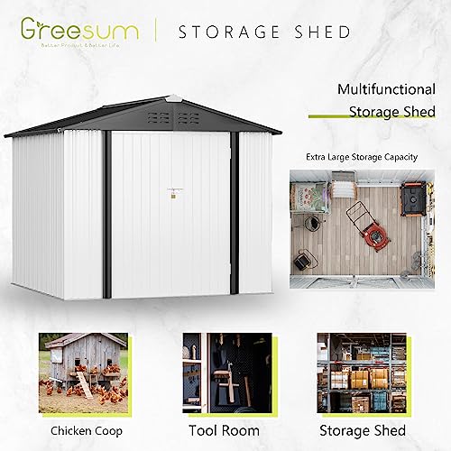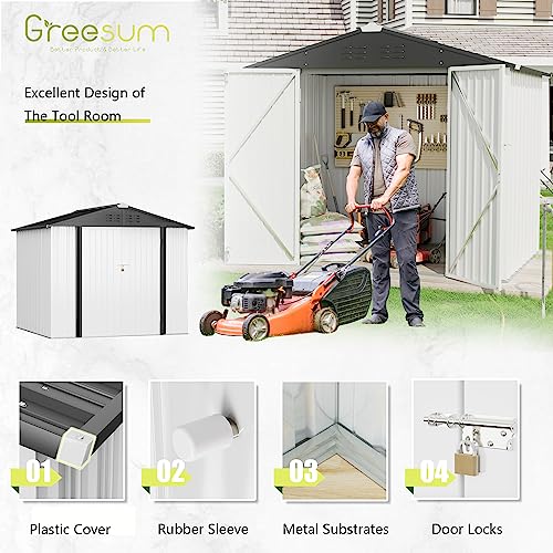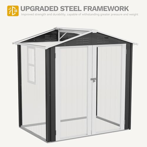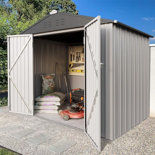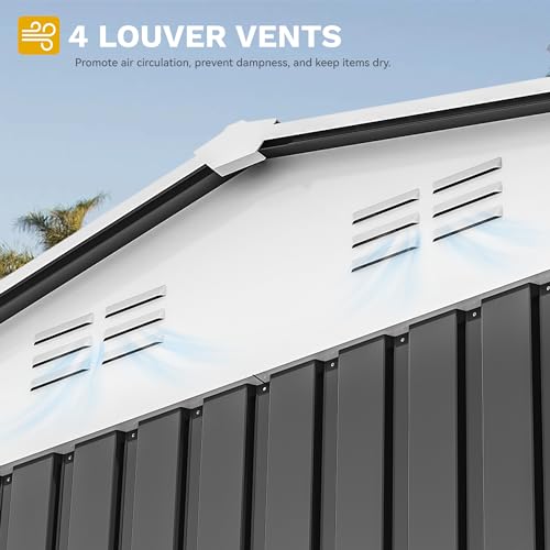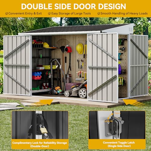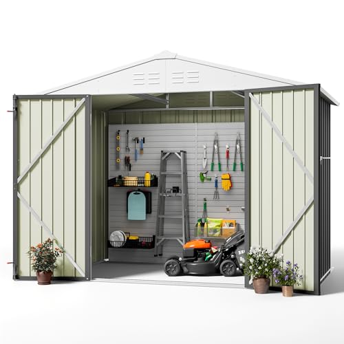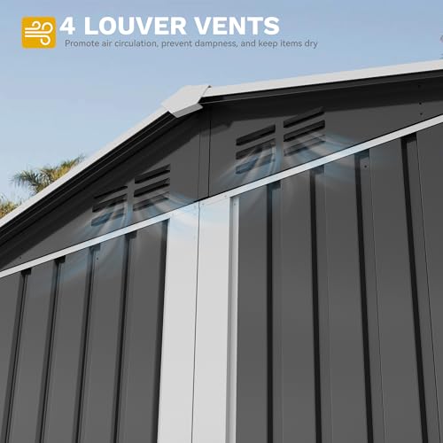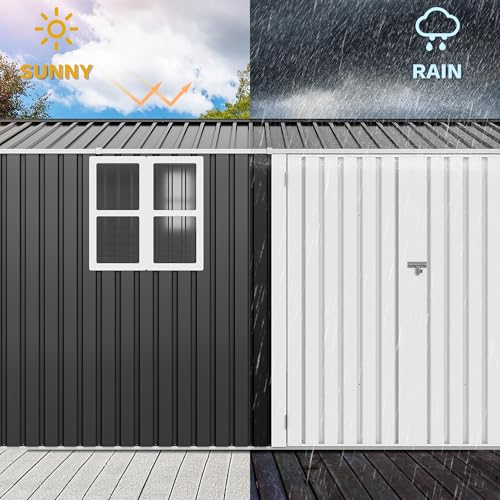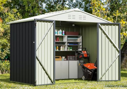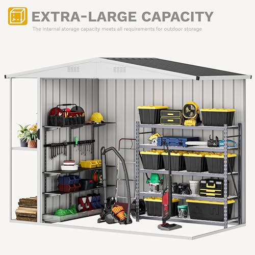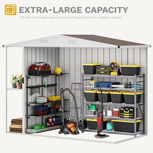 DWVO 8x6ft Metal Outdoor Storage Shed with Window, Lockable Tool Storage Sheds, Oversized Steel Garden Sheds with Sloped Roof for Backyard, Patio, Garage, Lawn (Gray + White)