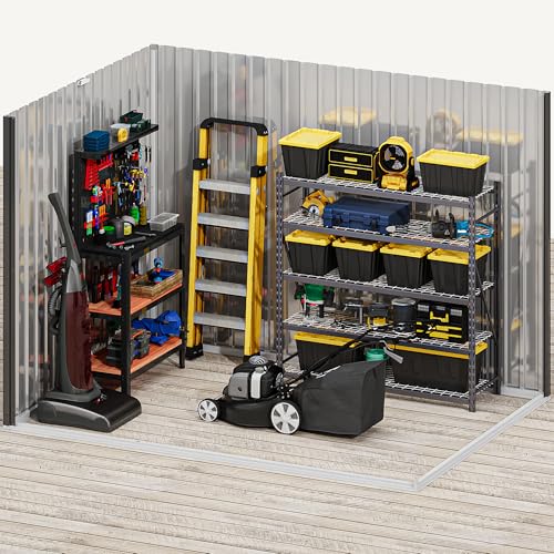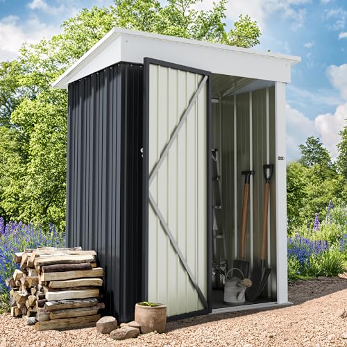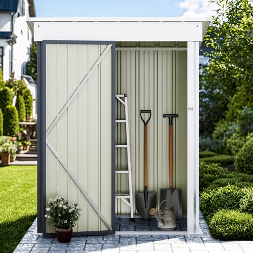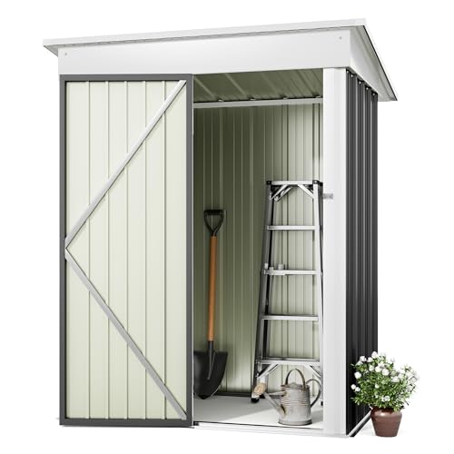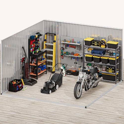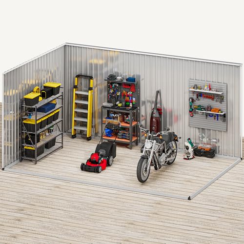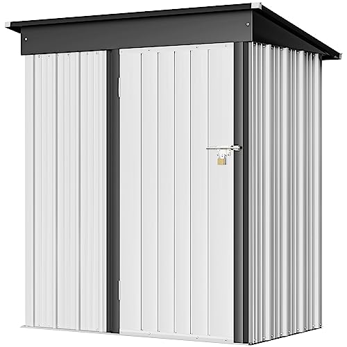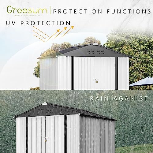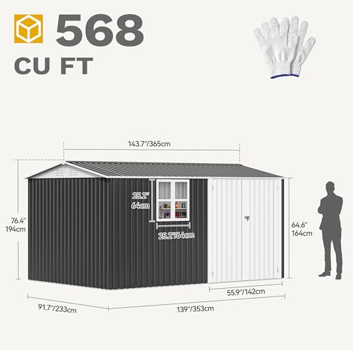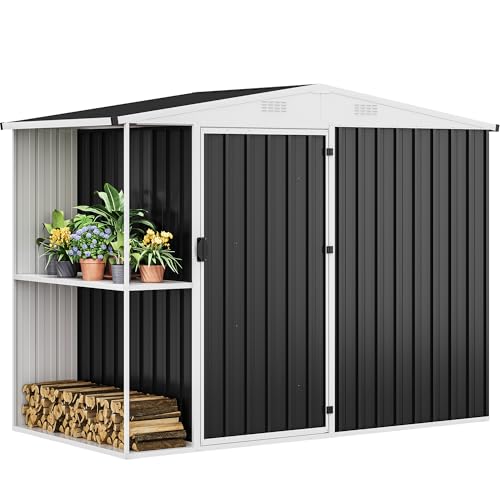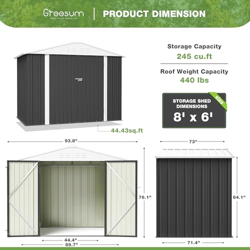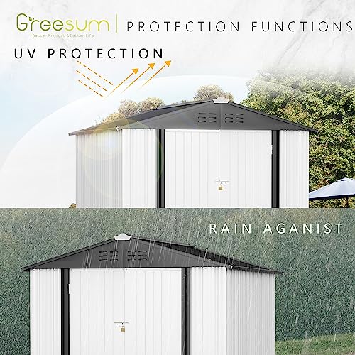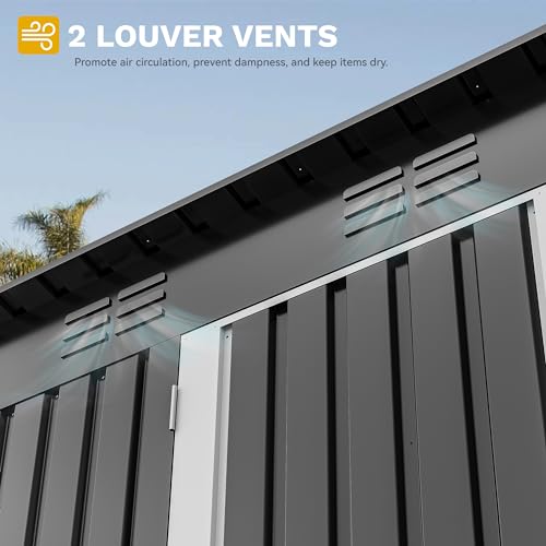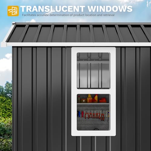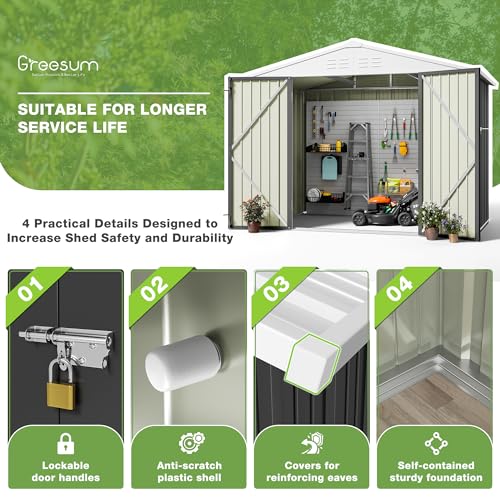 DWVO 8x6ft Metal Outdoor Storage Shed with Window, Lockable Tool Storage Sheds, Oversized Steel Garden Sheds with Sloped Roof for Backyard, Patio, Garage, Lawn (Gray + White)
