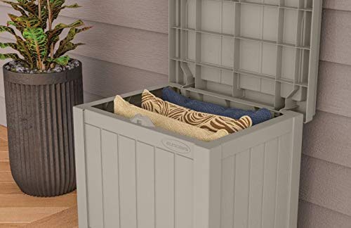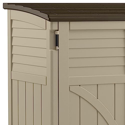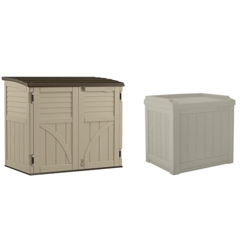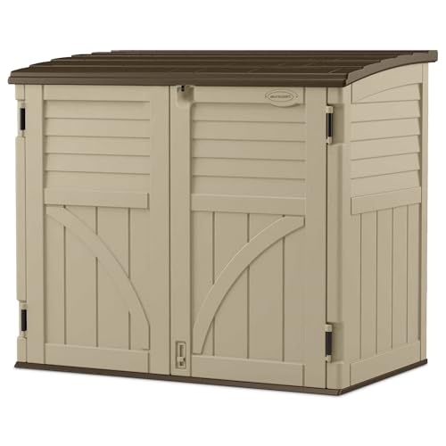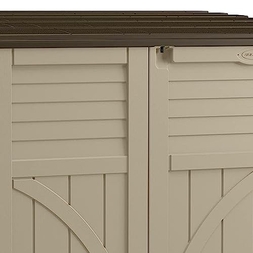 Suncast Horizontal Shed, Compact Outdoor Storage System, 34 Cu. Ft. Capacity, Sand & Slate - Lockable Multi-Wall Resin Organizer for Garbage Cans, Garden Tools, Bins, Bikes and Yard Equipment