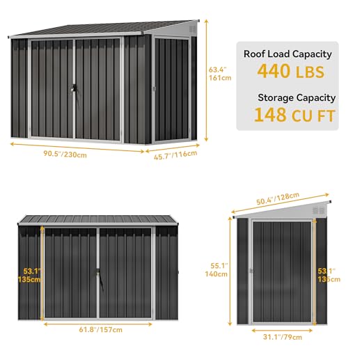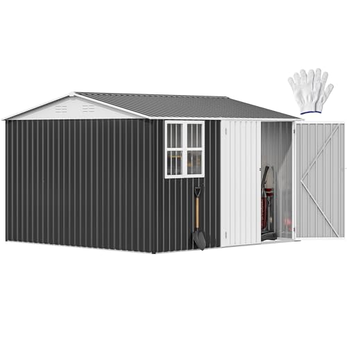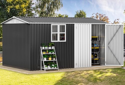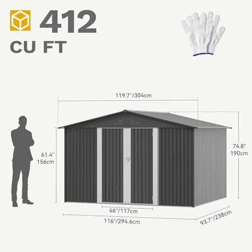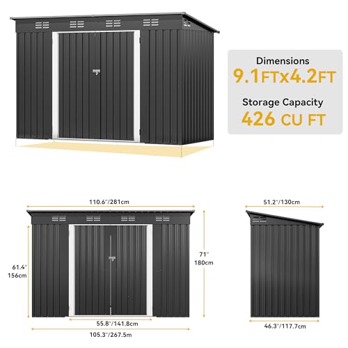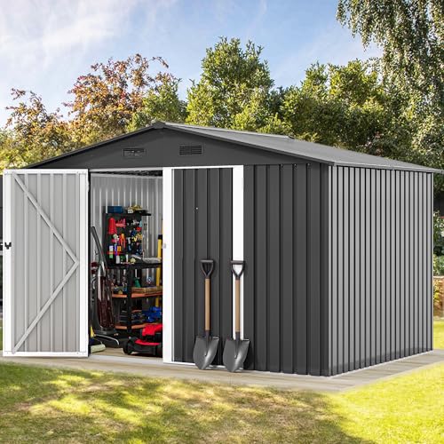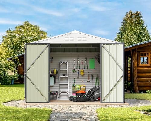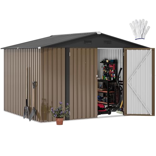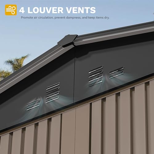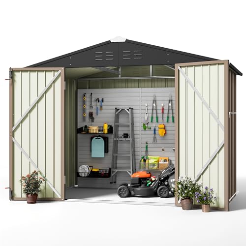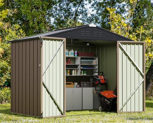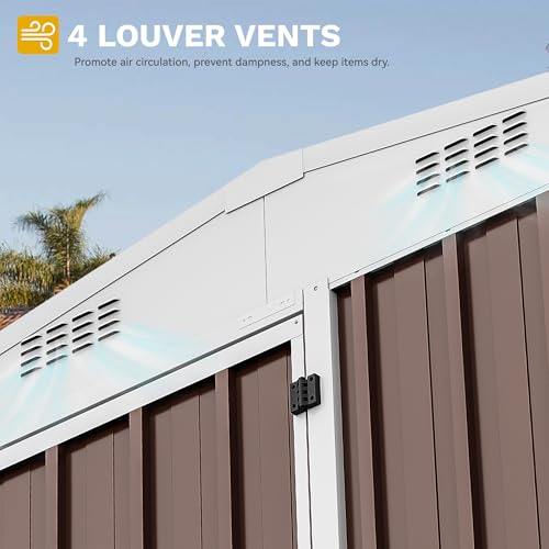 DWVO 9.1x4.2ft Large Outdoor Storage Shed, Metal Tool Sheds, Heavy Duty Tool Storage with Lockable Doors & Air Vent for Backyard Patio Lawn to Store Bikes, Tools, Lawnmowers,Brown