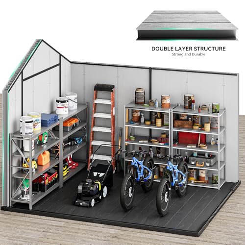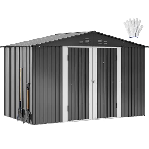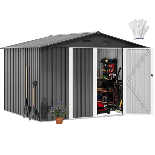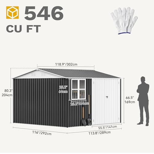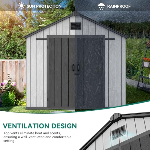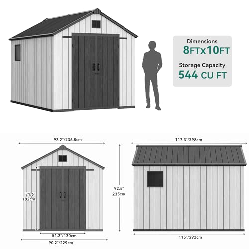 YITAHOME 8x10 FT Outdoor Storage Shed with Lockable Door, Large 544 Cuft Resin Shed with Floor Roof Windows Vents, All-Weather Plastic Storage Shed Tool Organizer for Backyard Garden Patio Lawn, Gray