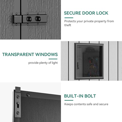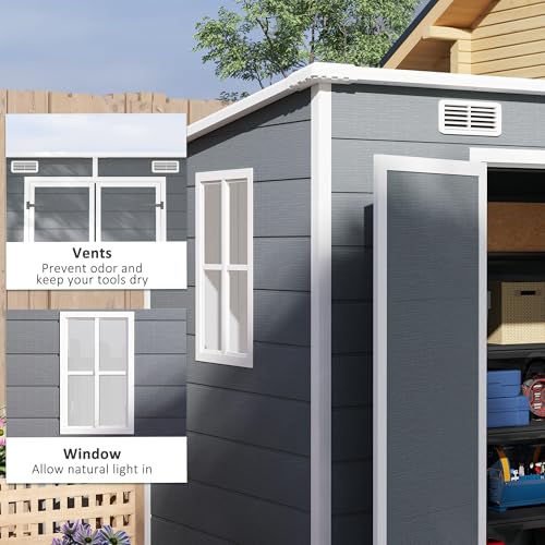 Outsunny 8' x 4' Outdoor Storage Shed, Resin Plastic Shed with Floor, Window, Lockable Doors and Vents, All-Weather Tool Shed for Backyard, Patio, Lawn, Gray