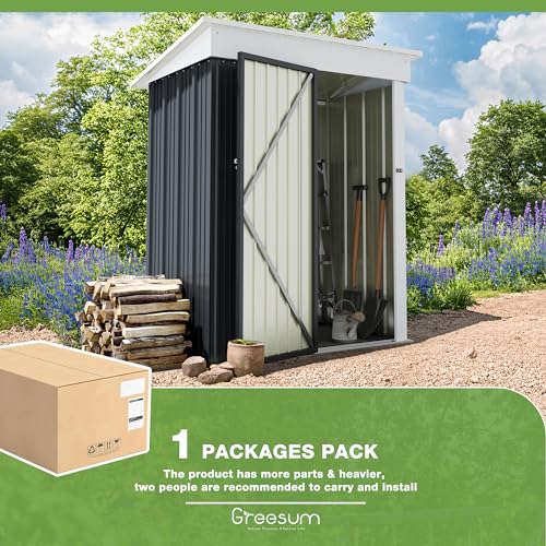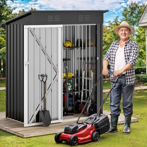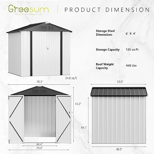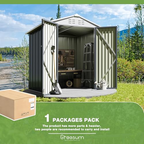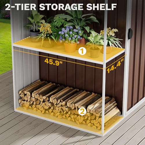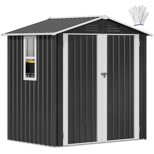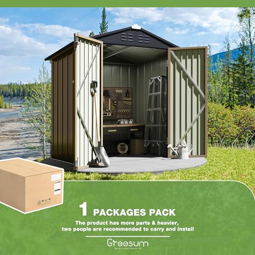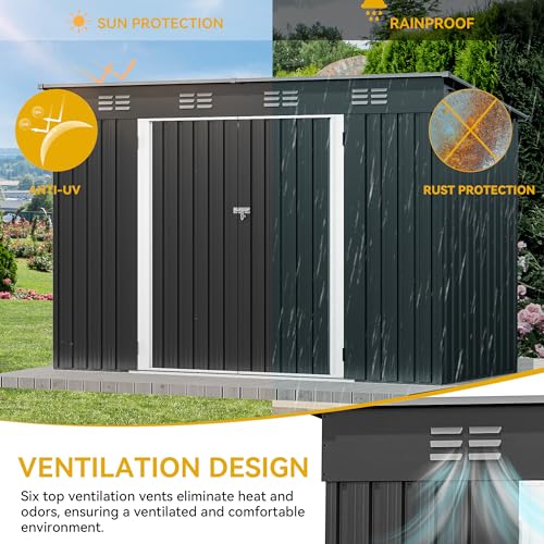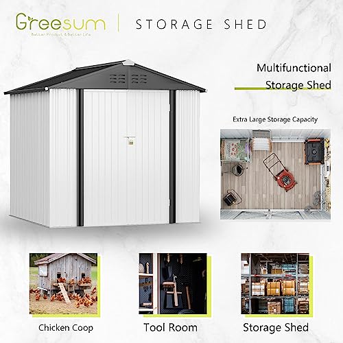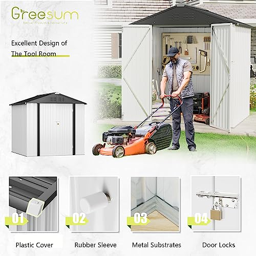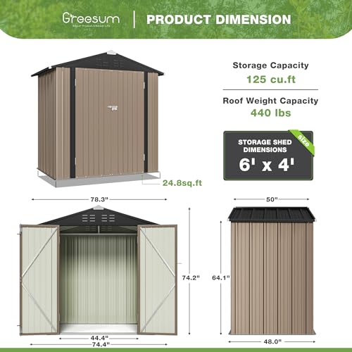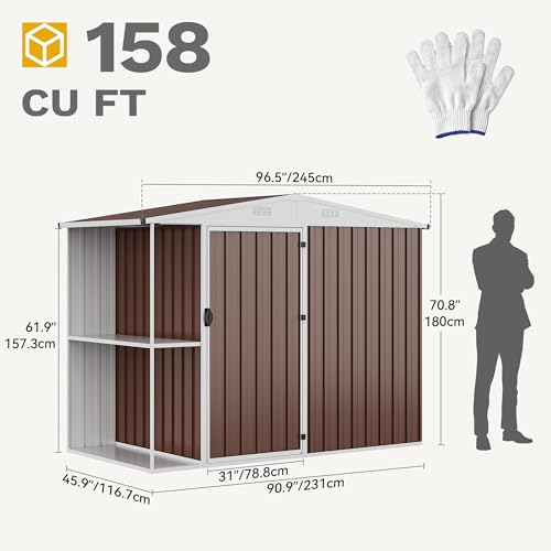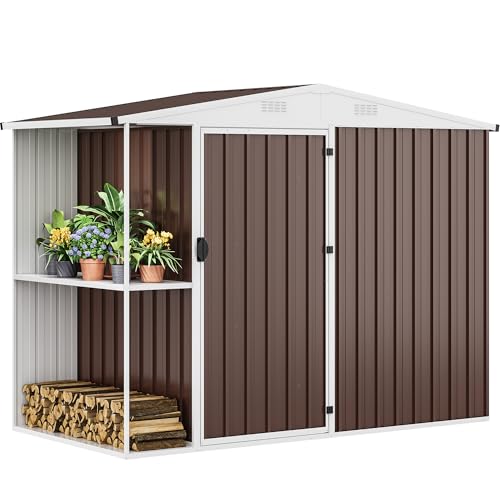 Greesum Outdoor Storage Shed 6 x 8 ft. Utility Tool Shed Metal Storage Garden Shed with Door & Lock for Patio Storage, Brown