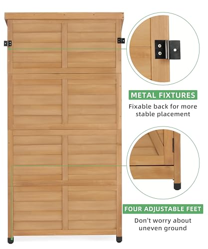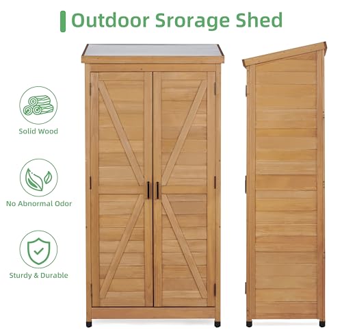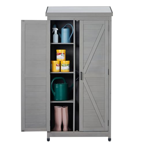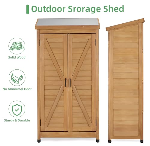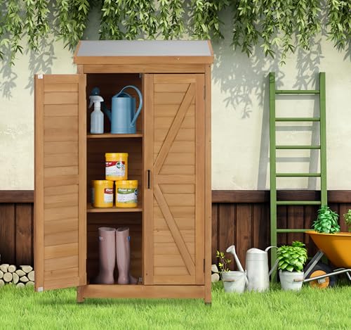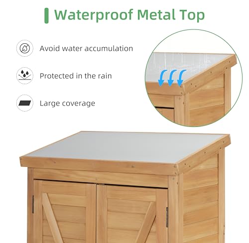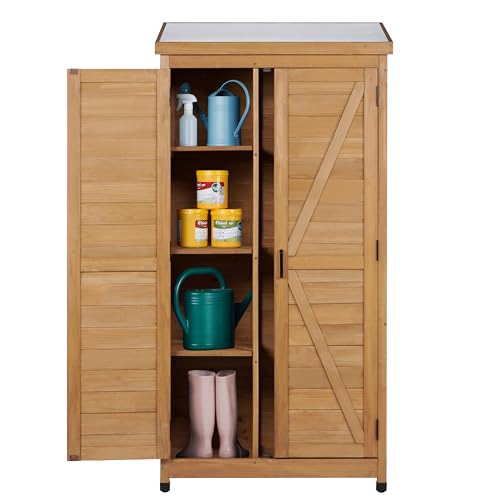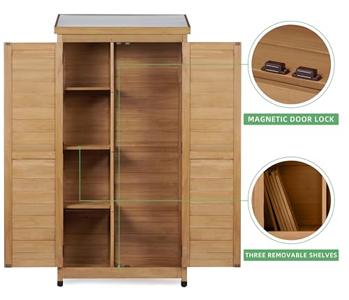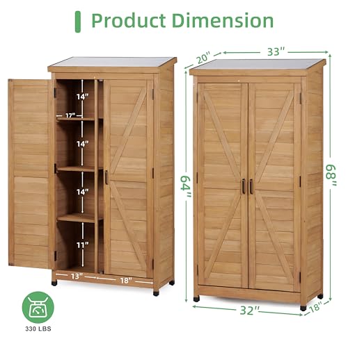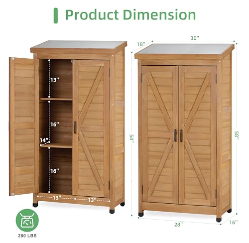 58''x30''x18'' Outdoor Wooden Storage Shed with Metal Top Tall Vertical Tool Cabinet for Backyard Garden Patio Lawn (Gold)