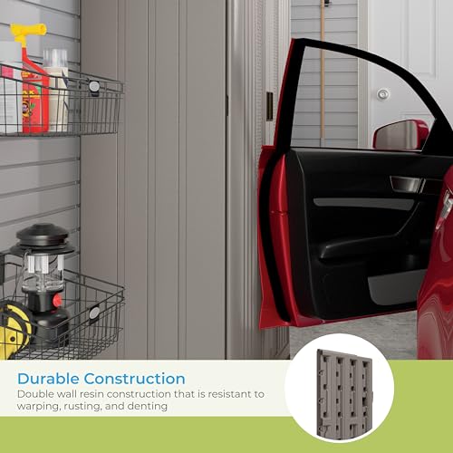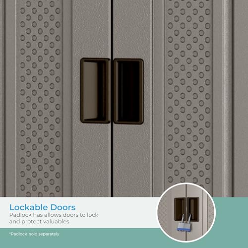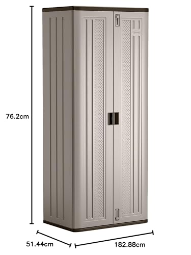 Suncast Tall Storage Cabinet, Platinum Resin Outdoor & Garage Storage Cabinet with Doors & Shelves, Plastic, Weather-Resistant, Lockable, Freestanding Utility Closet for Tools & Supplies, Made in USA