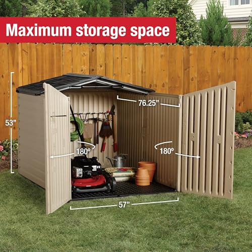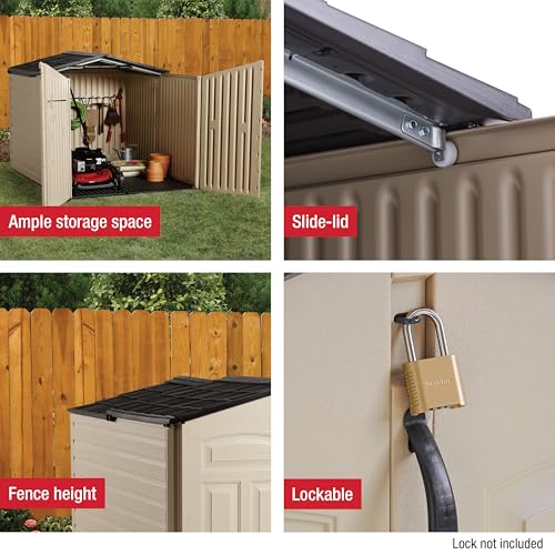Rubbermaid Slide-Lid Resin Outdoor Storage Shed (5 x 6.5 Ft),Weather Resistant, Beige/Brown, Organization for Home/Backyard/Garden Tools/Lawn Mower/Bike Storage/Pool Supplies