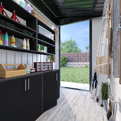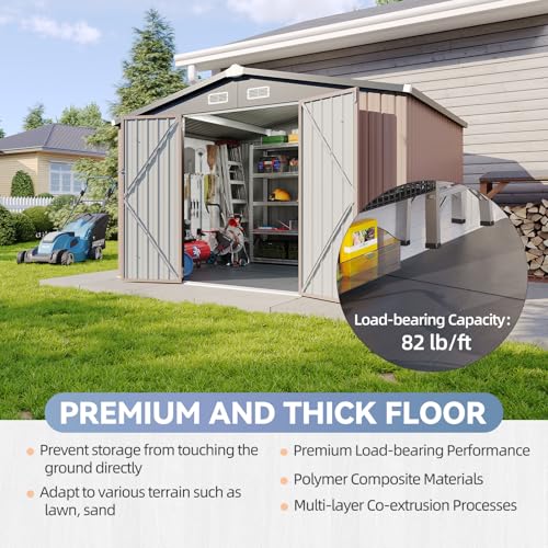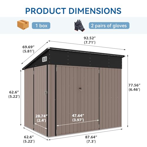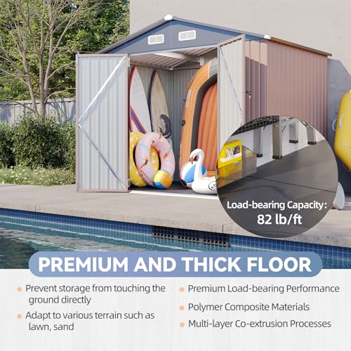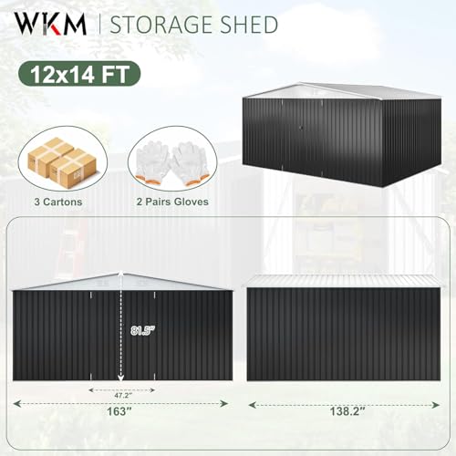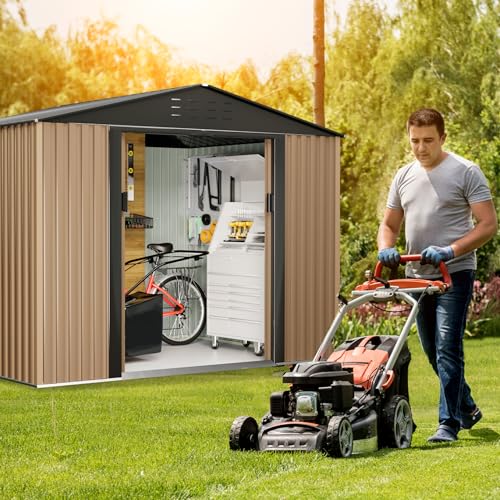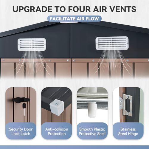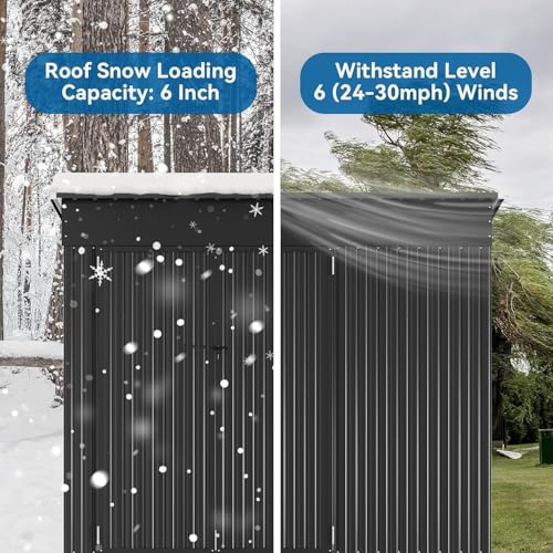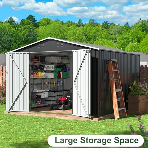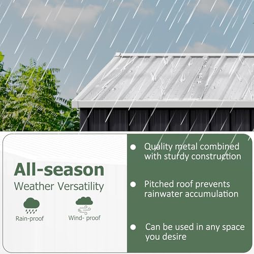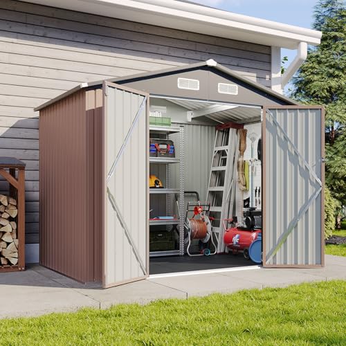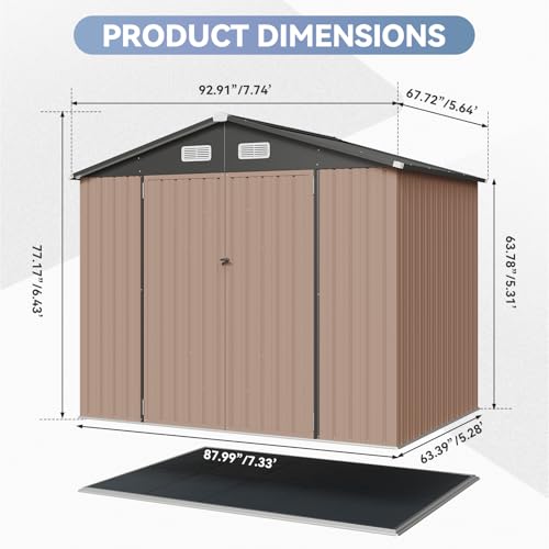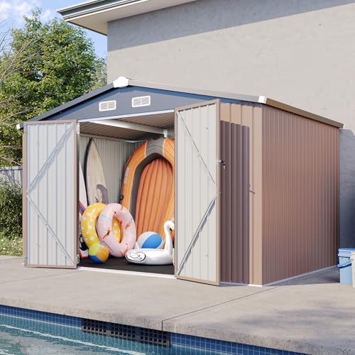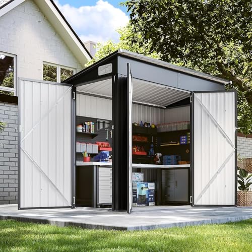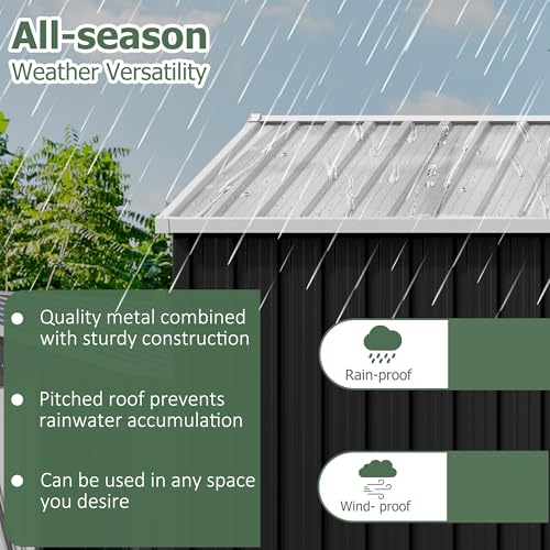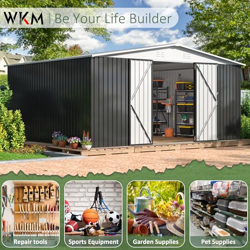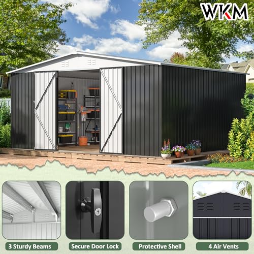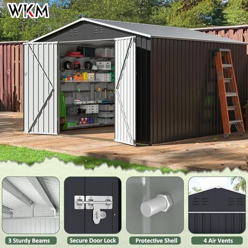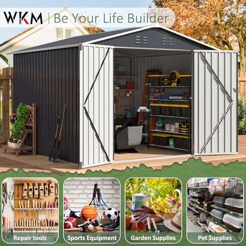 WKM 8x8 FT Outdoor Storage Shed, Utility Metal Tool Storage with Lockable Doors and Updated Frame Structure, Large Metal Garden Shed for Backyard, Patio Lawn, Black