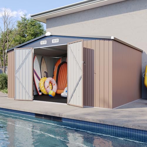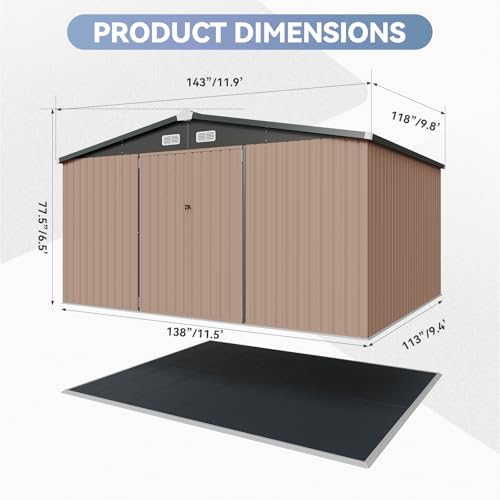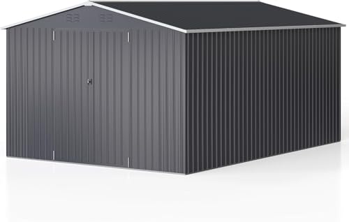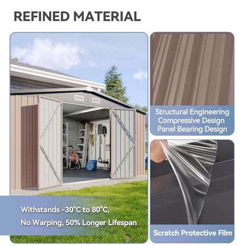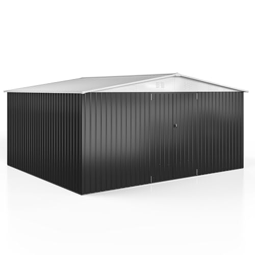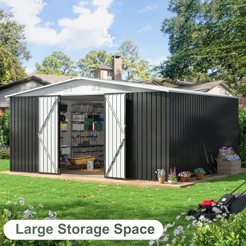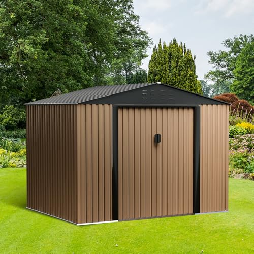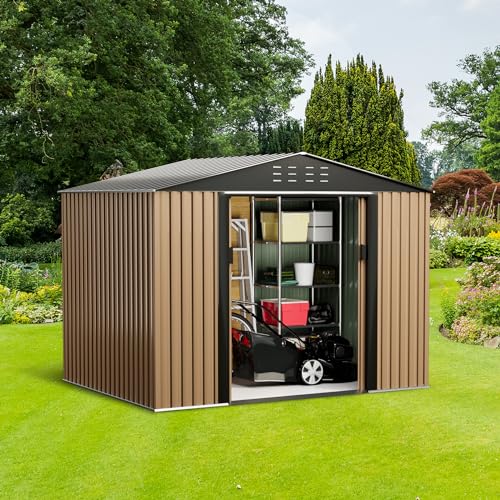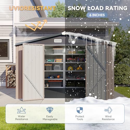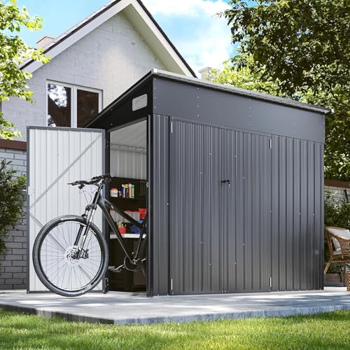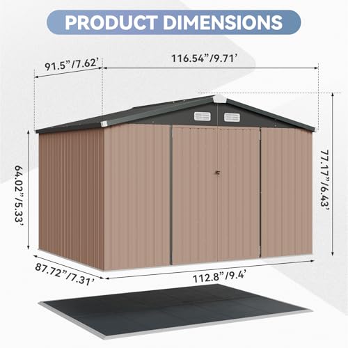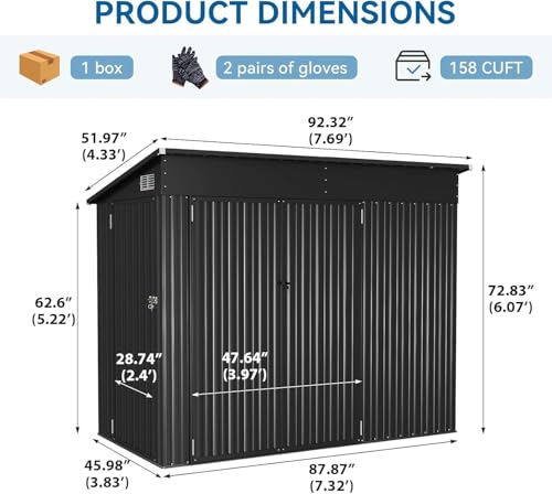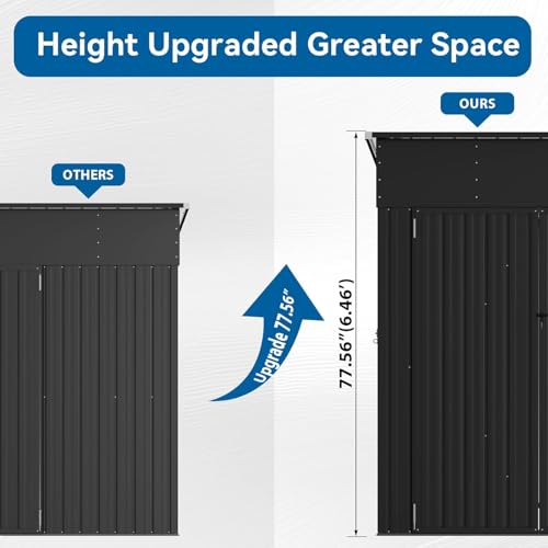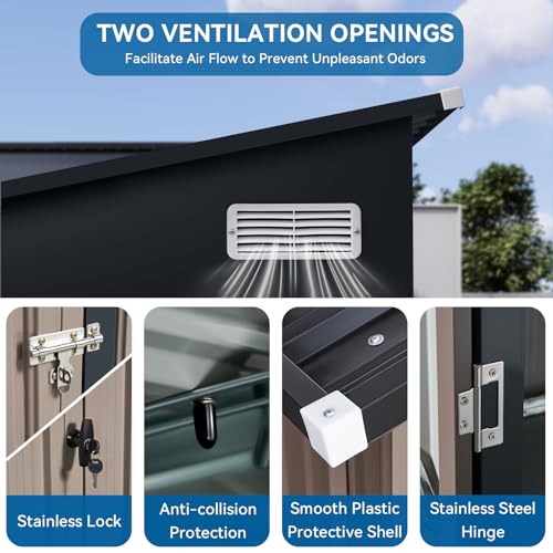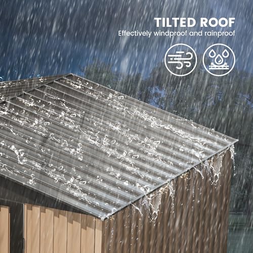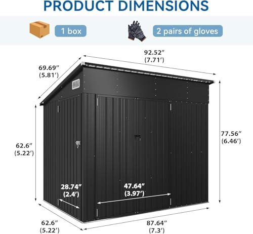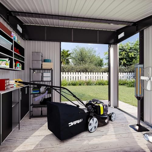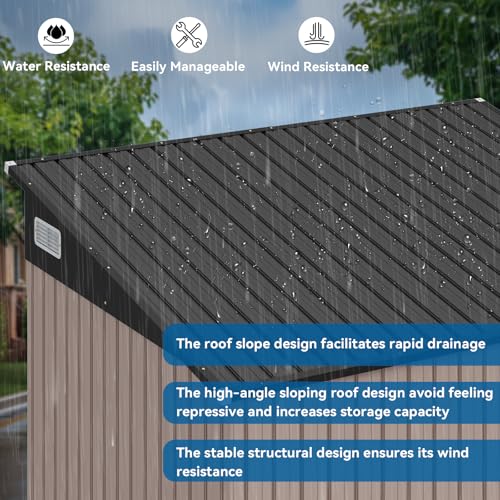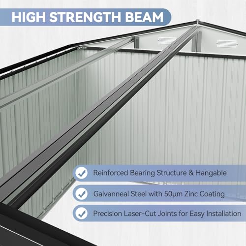 WKM 8x8 FT Outdoor Storage Shed, Utility Metal Tool Storage with Lockable Doors and Updated Frame Structure, Large Metal Garden Shed for Backyard, Patio Lawn, Black
