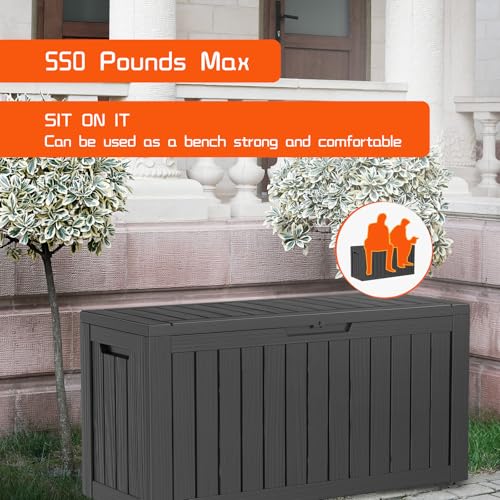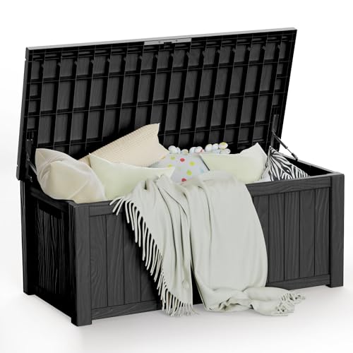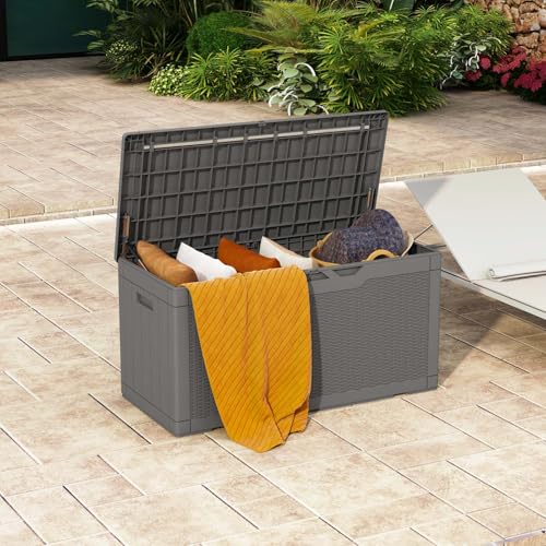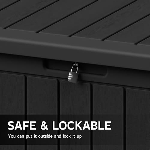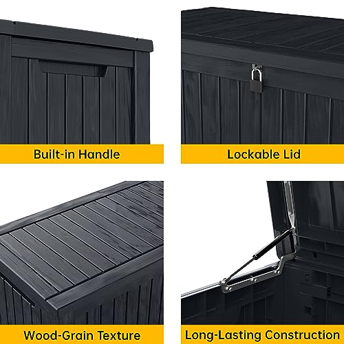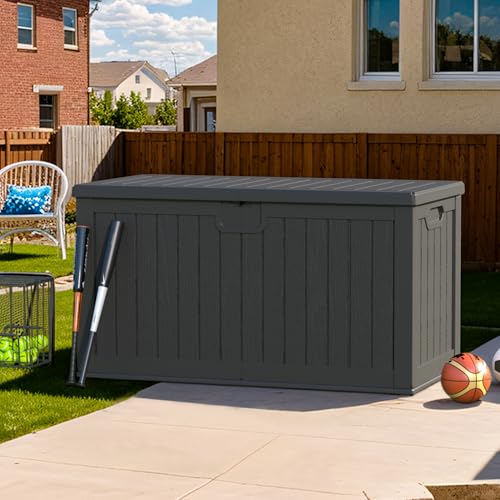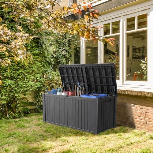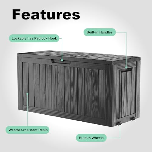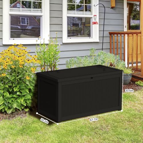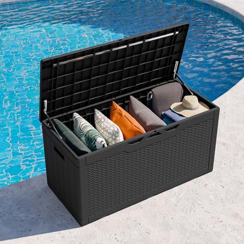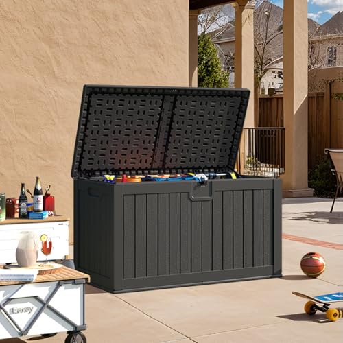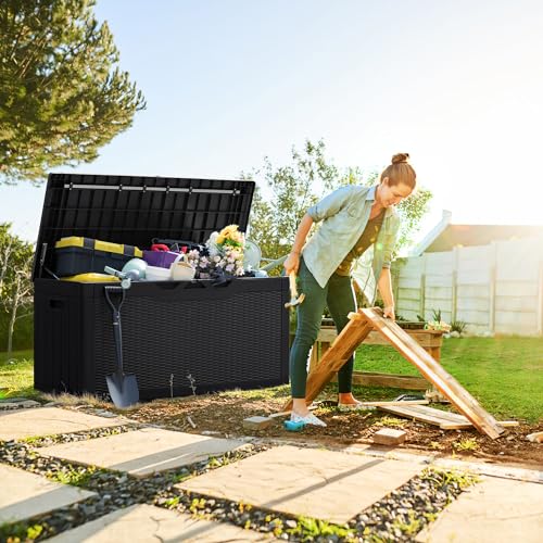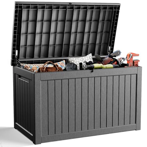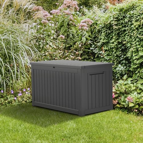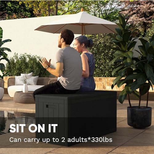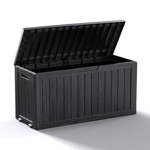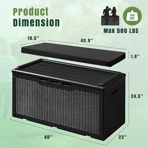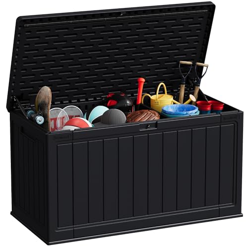 Greesum 100 Gallon Resin Deck Box Lockable Large Outdoor Storage Boxes for Garden Tools, Patio Furniture Cushions, Pool Supplies, Black