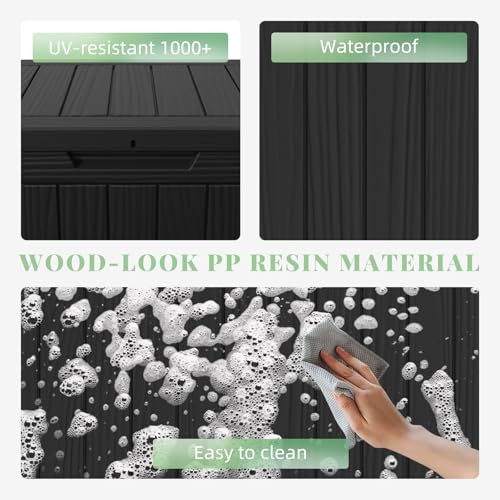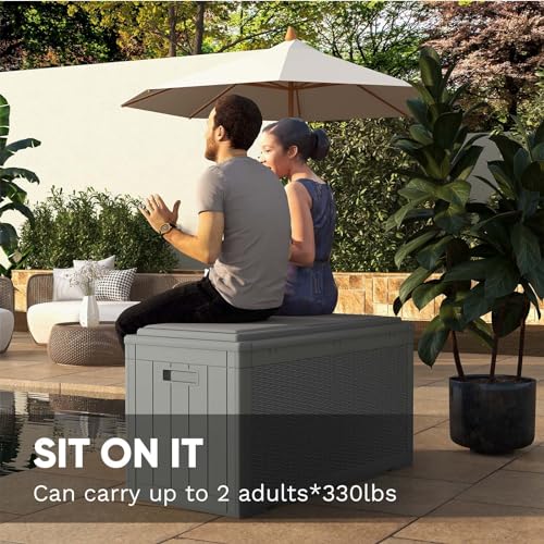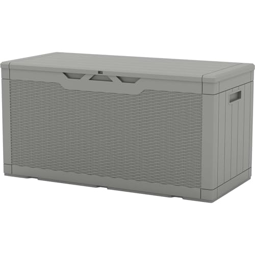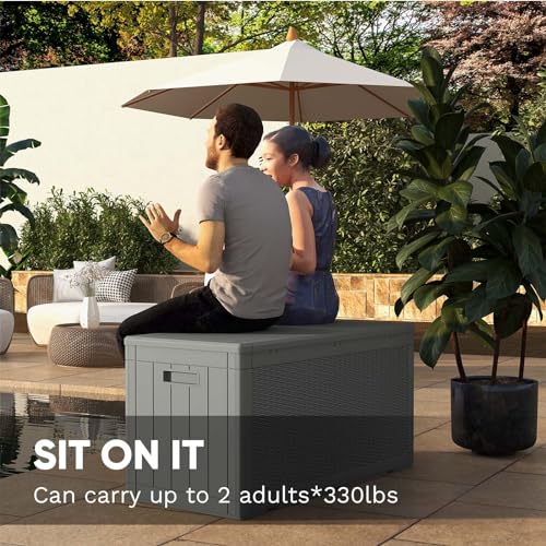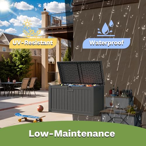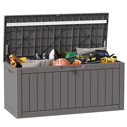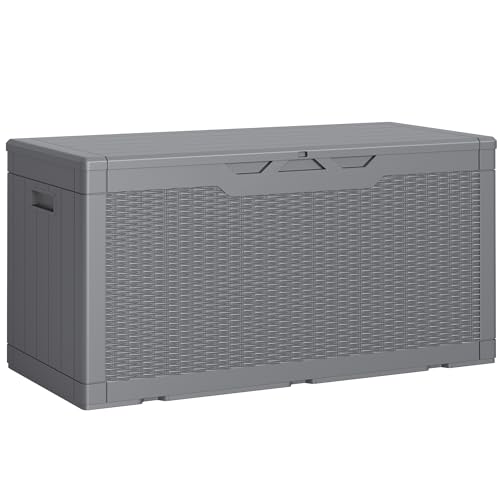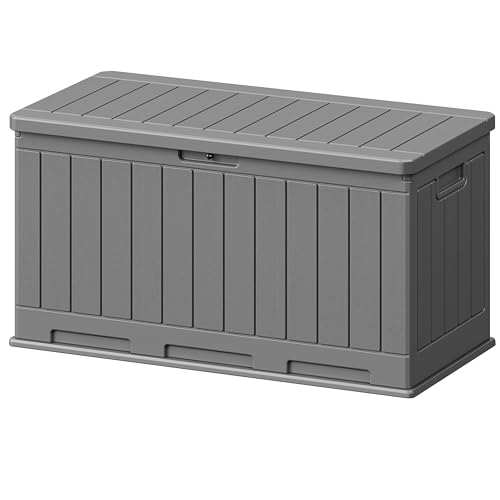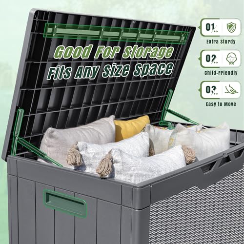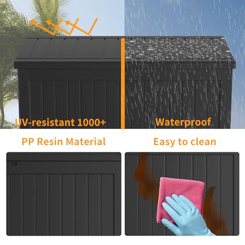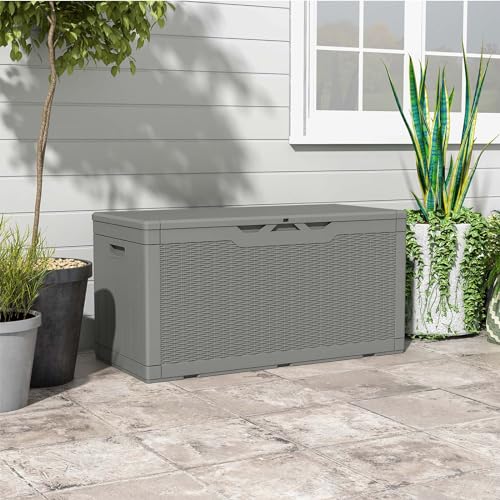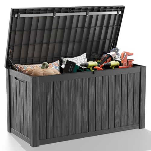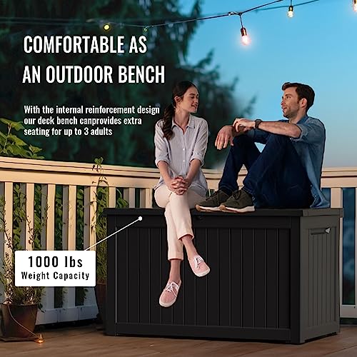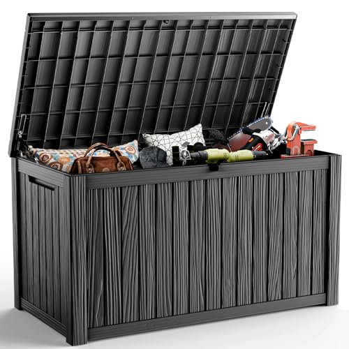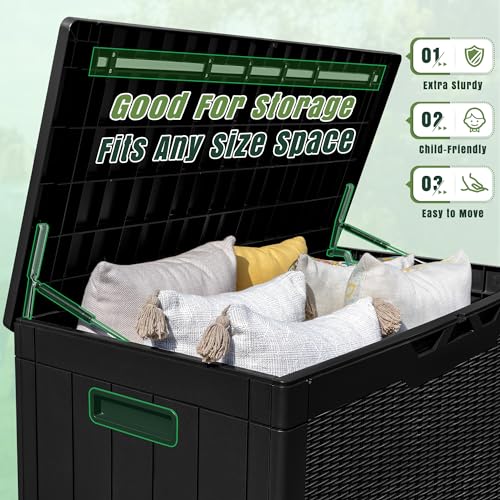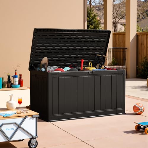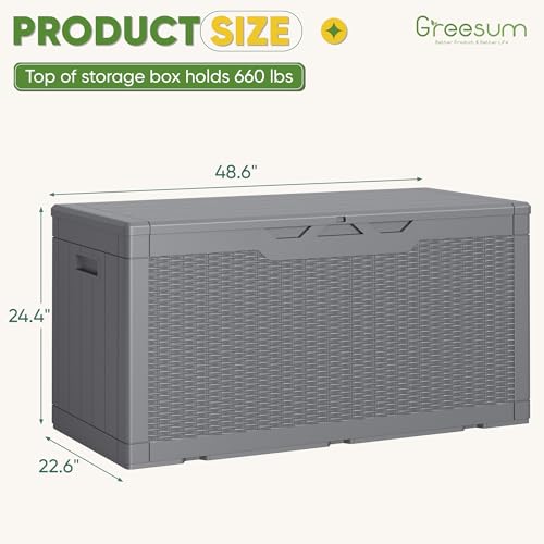 Greesum 100 Gallon Resin Deck Box Lockable Large Outdoor Storage Boxes for Garden Tools, Patio Furniture Cushions, Pool Supplies, Black