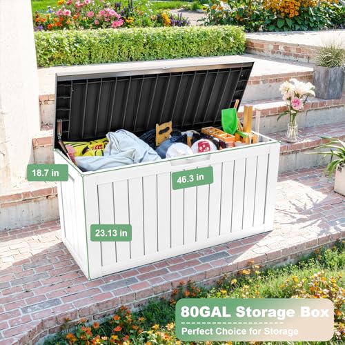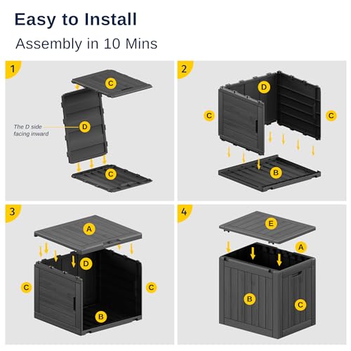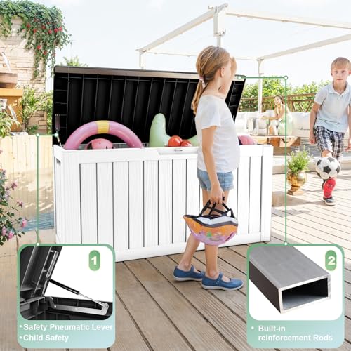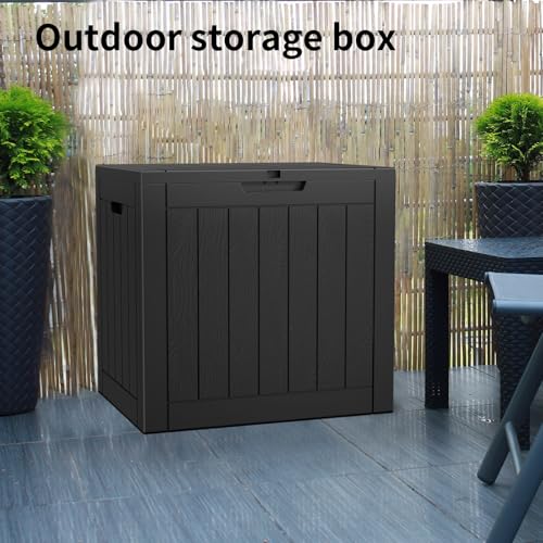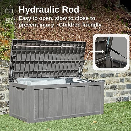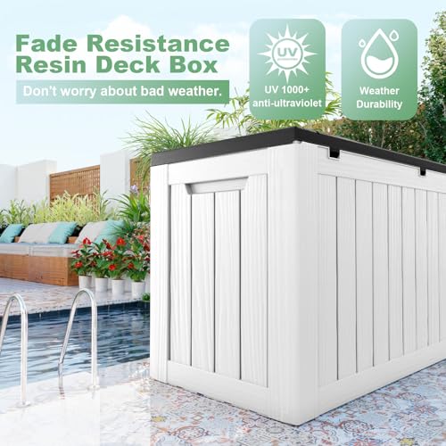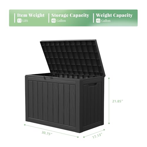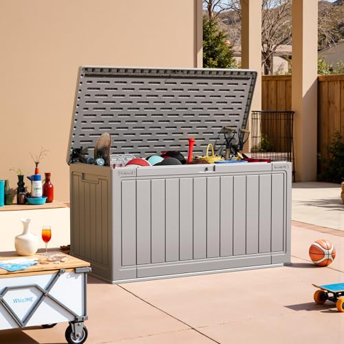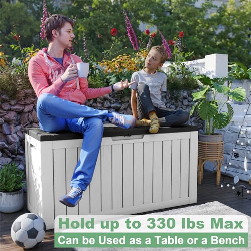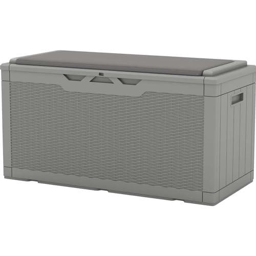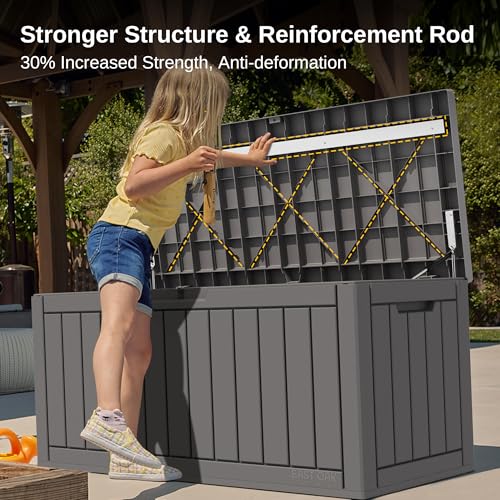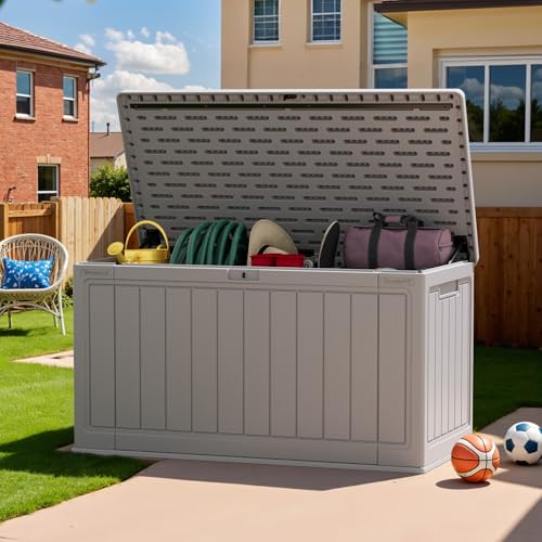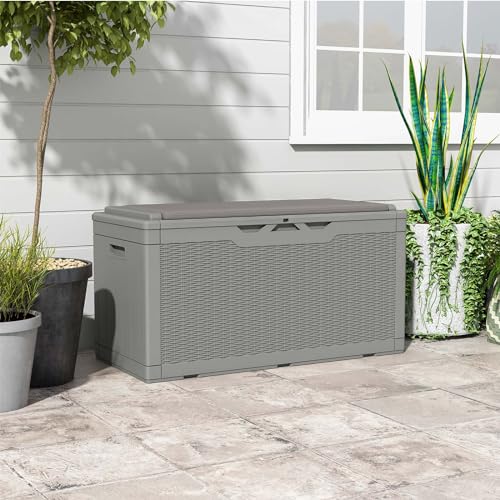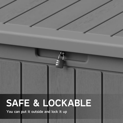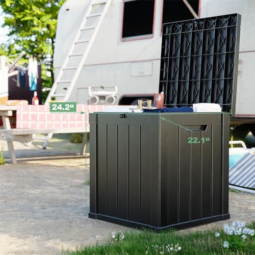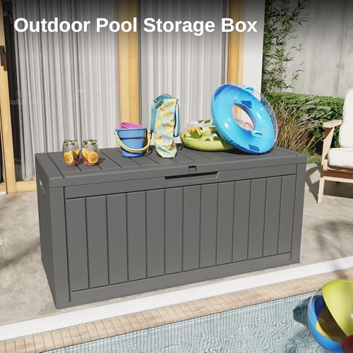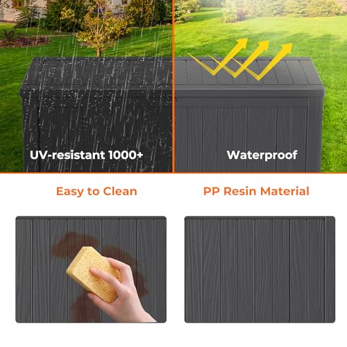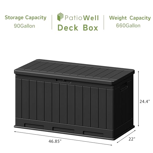 Greesum 100 Gallon Resin Deck Box Lockable Large Outdoor Storage Boxes for Garden Tools, Patio Furniture Cushions, Pool Supplies, Black
