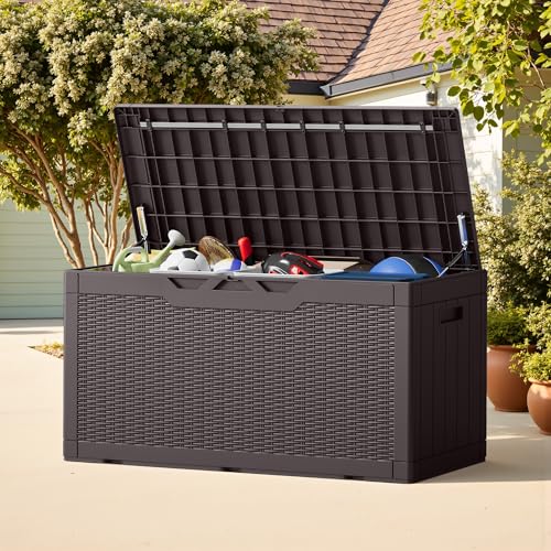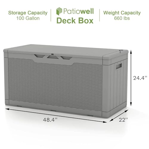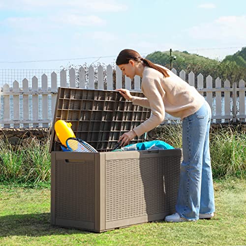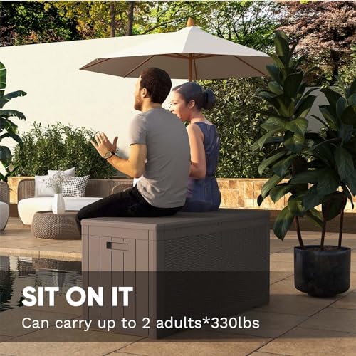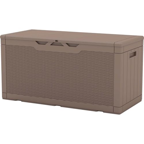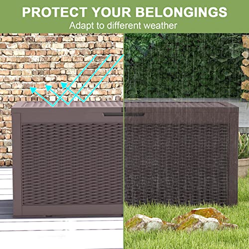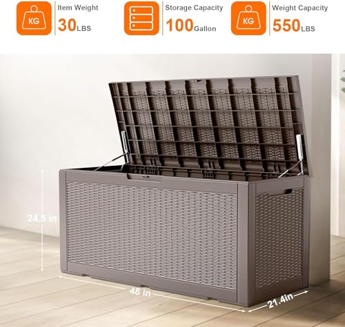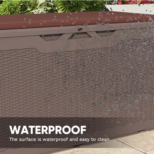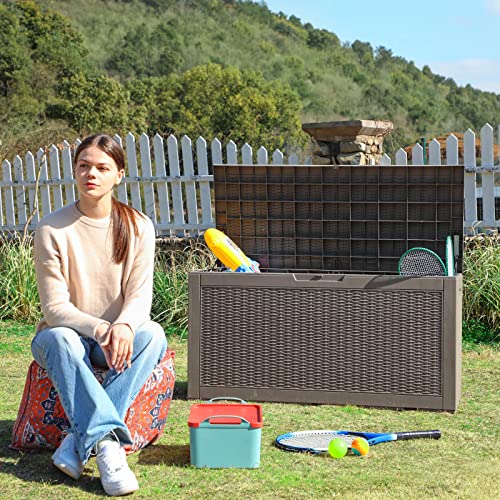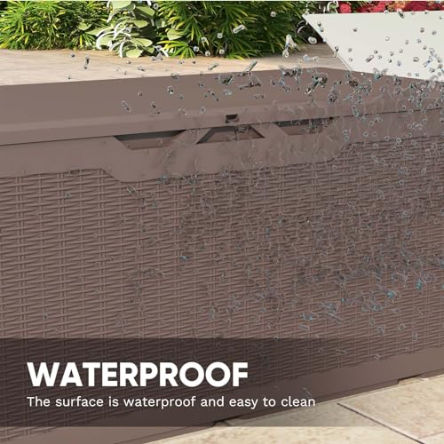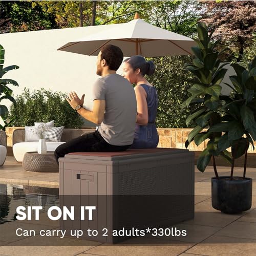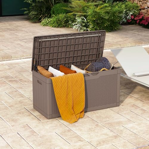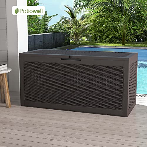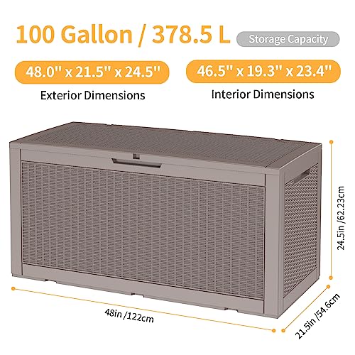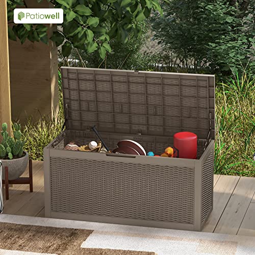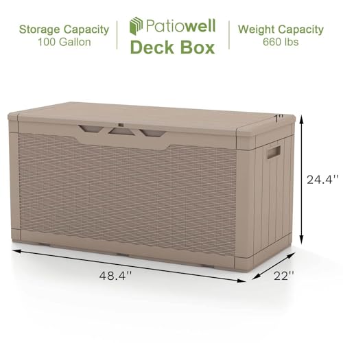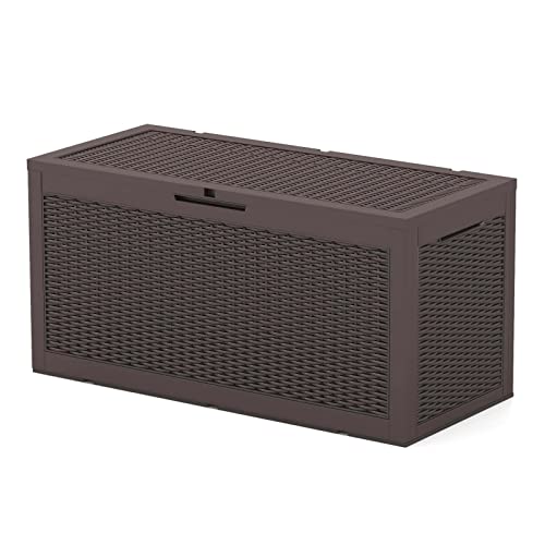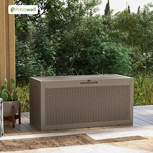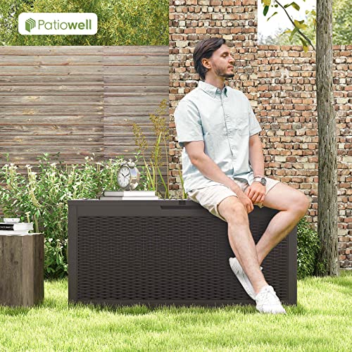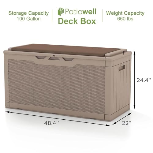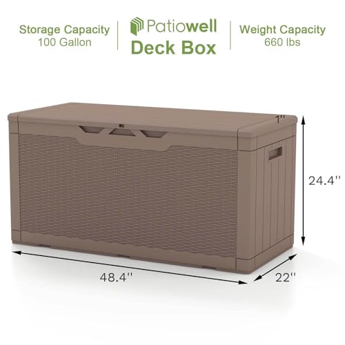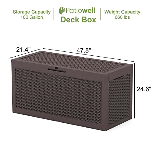 Patiowell 100 Gallon Resin Deck Box, Waterproof Large Outdoor Storage Box for Patio Furniture and Garden Tools, Dark Brown