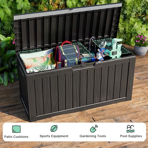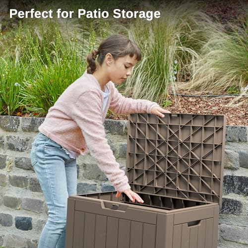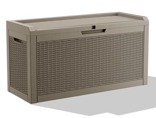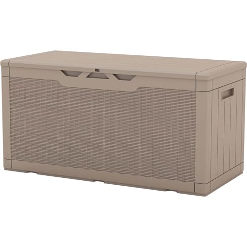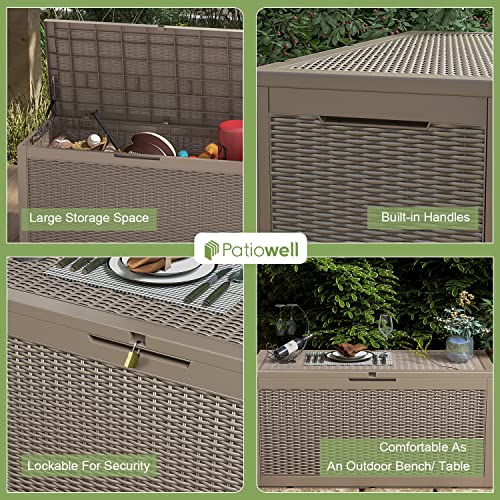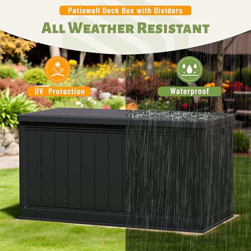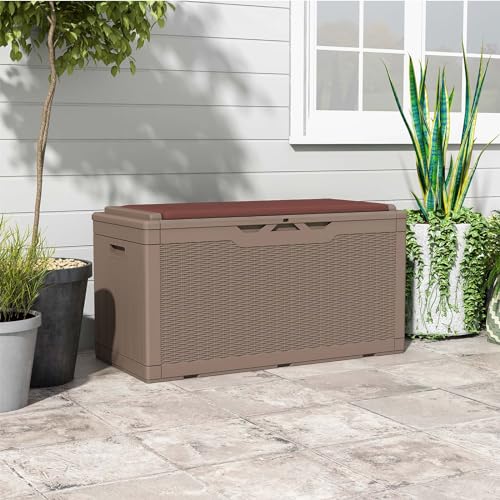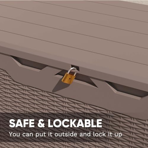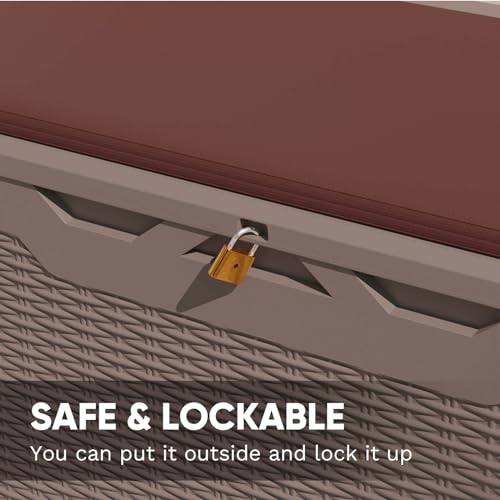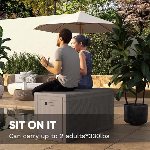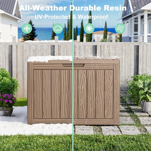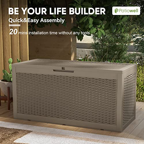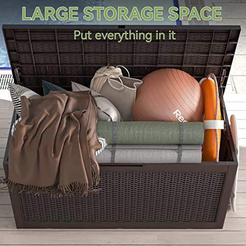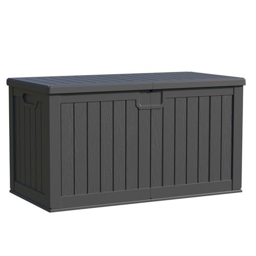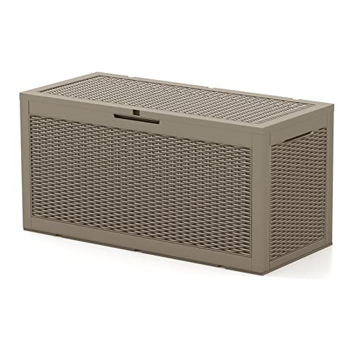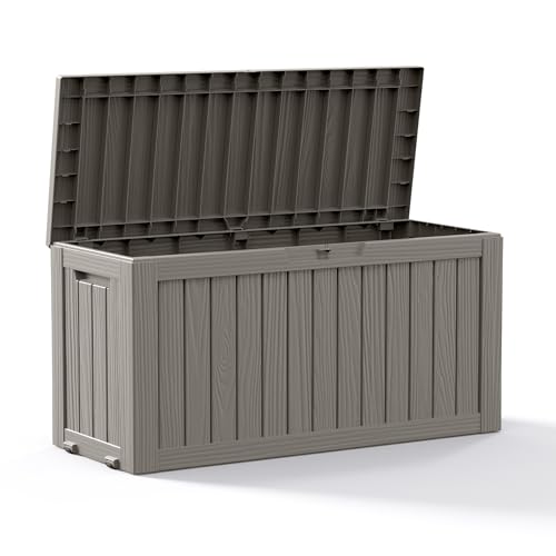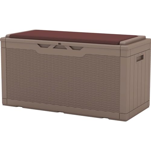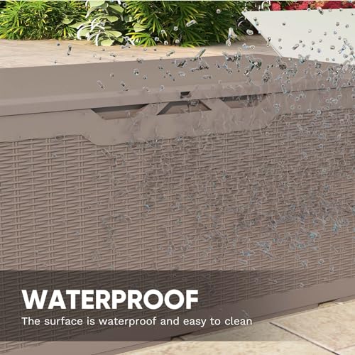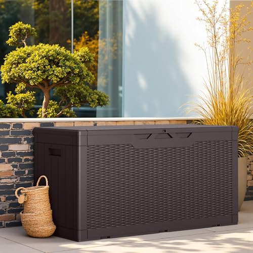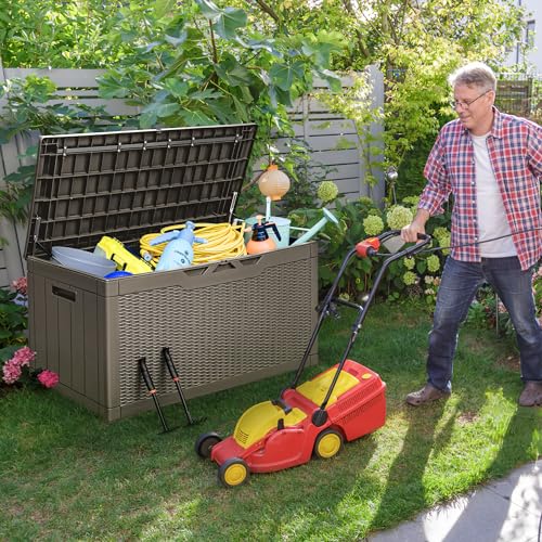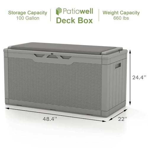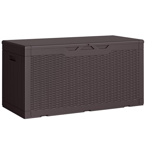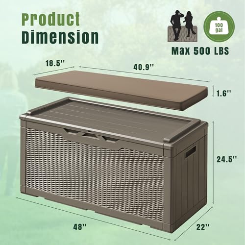 Patiowell 100 Gallon Resin Deck Box, Waterproof Large Outdoor Storage Box for Patio Furniture and Garden Tools, Dark Brown
