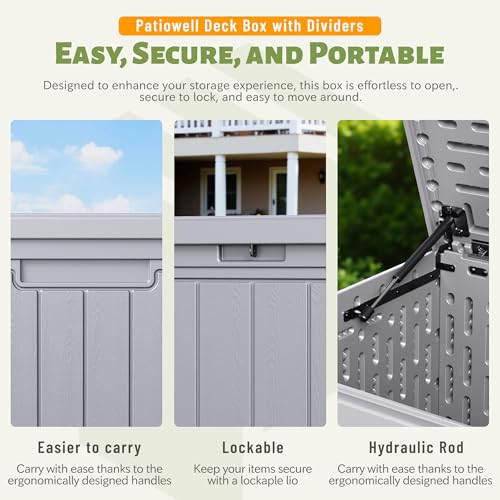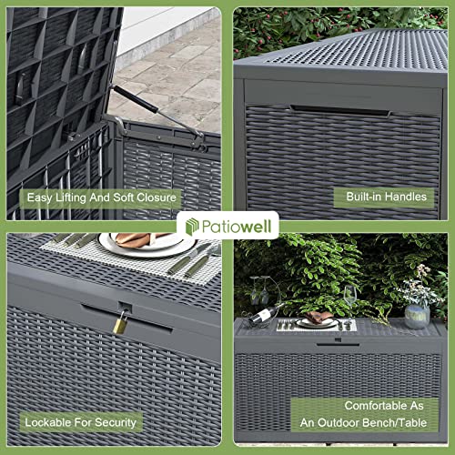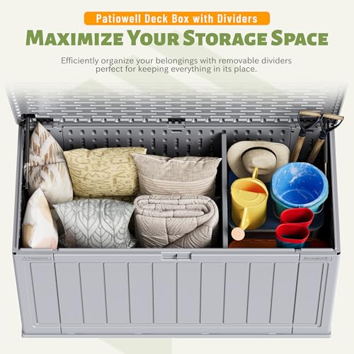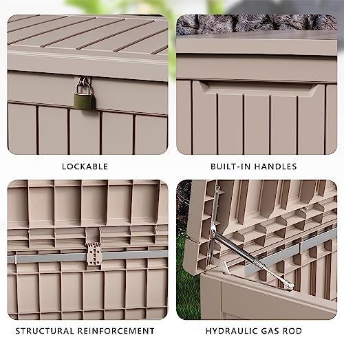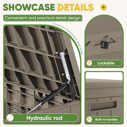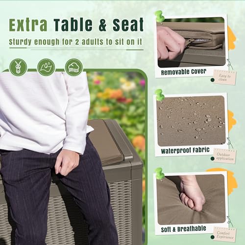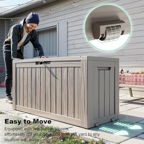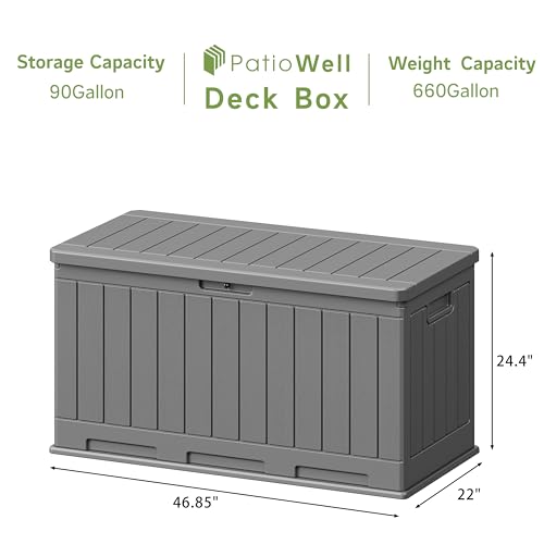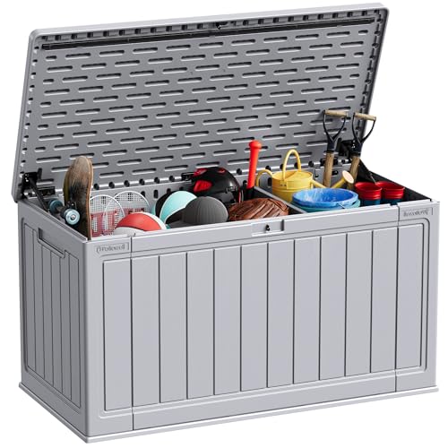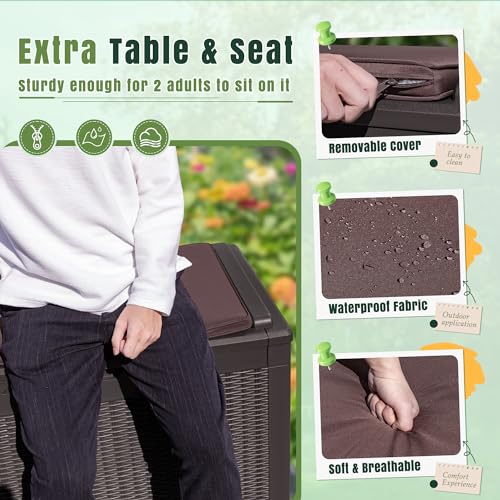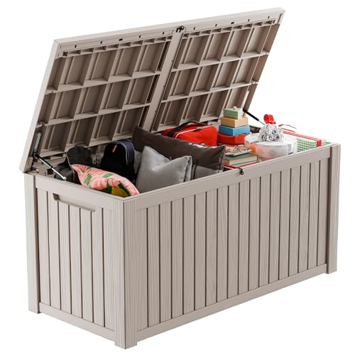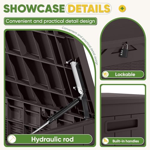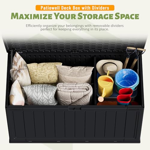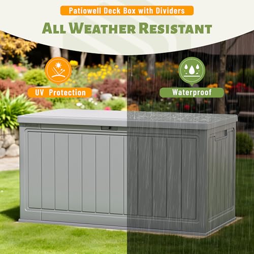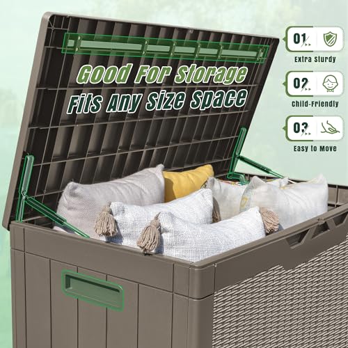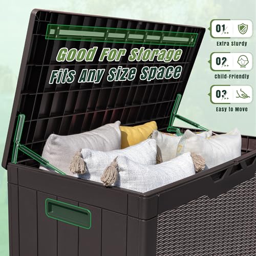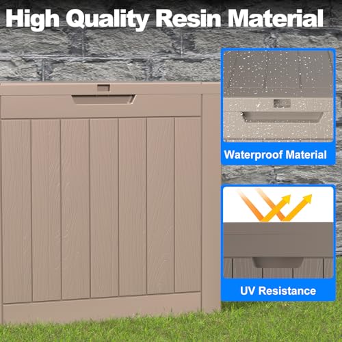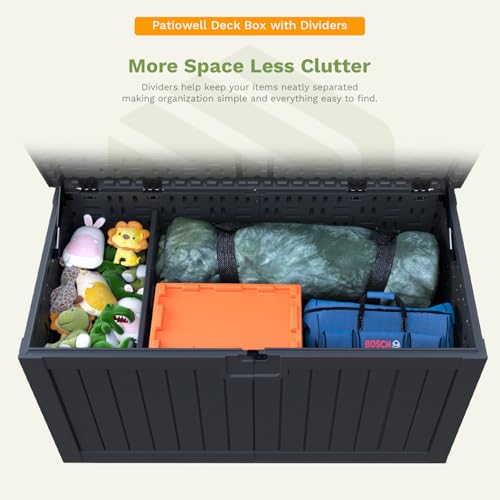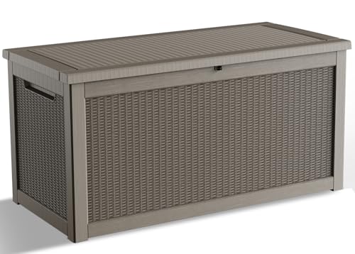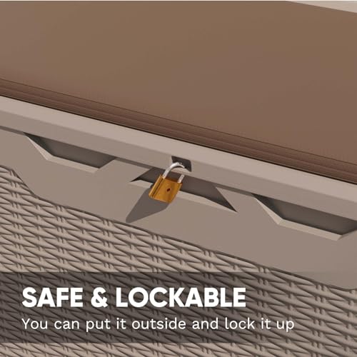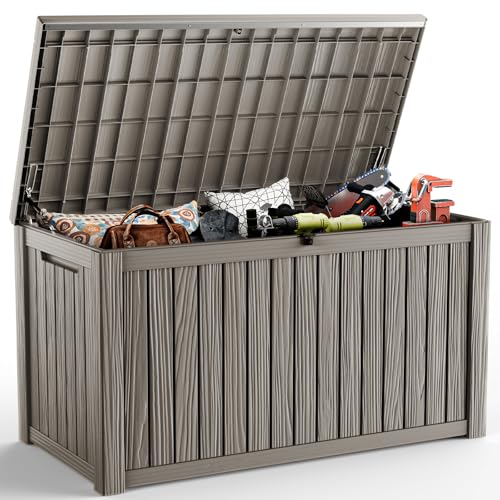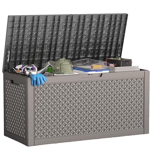 Patiowell 100 Gallon Resin Deck Box, Waterproof Large Outdoor Storage Box for Patio Furniture and Garden Tools, Dark Brown