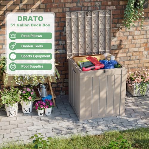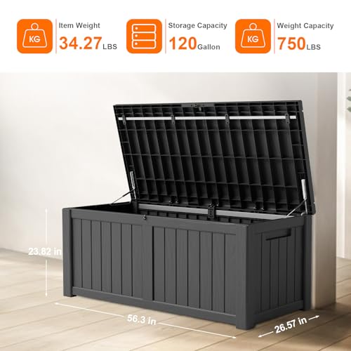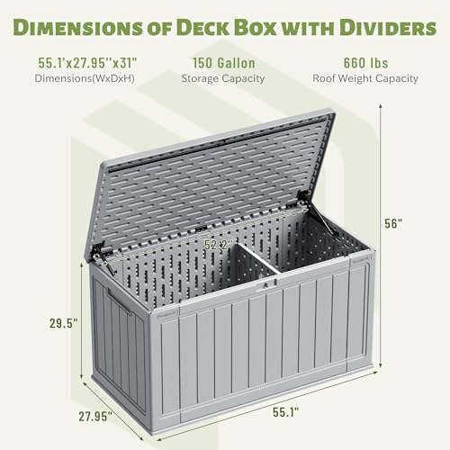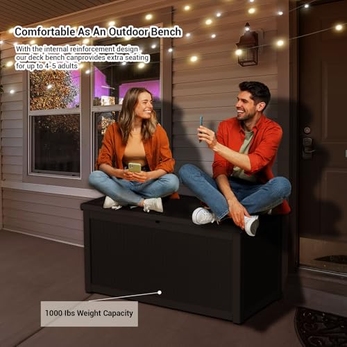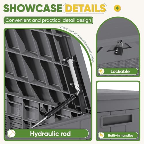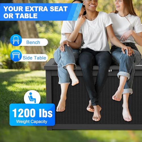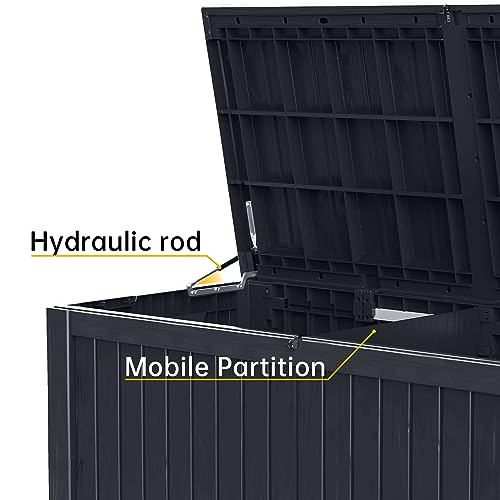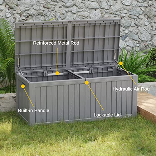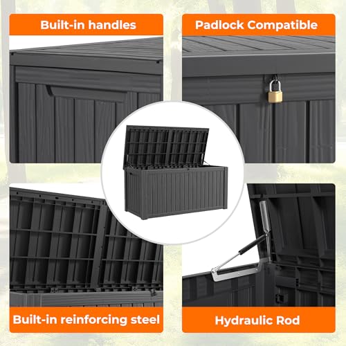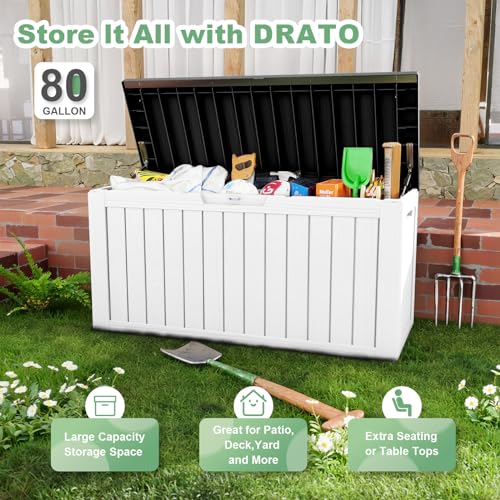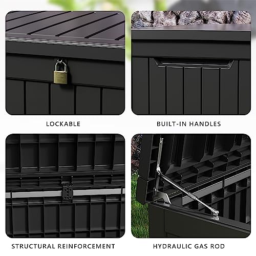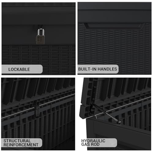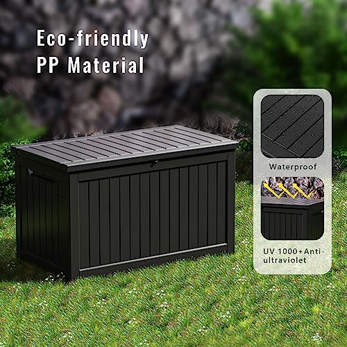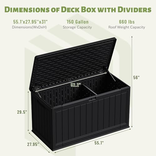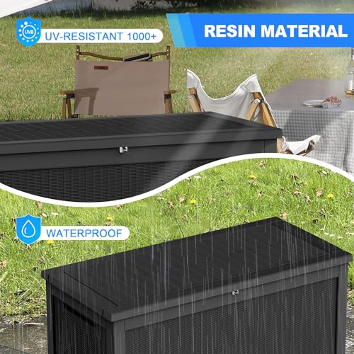 DRATO 150 Gallon Outdoor Storage Box, Large Waterproof Deck Box, Lockable Resin Storage Container with Reinforced Support for Patio Cushions, Garden Tools, UV-Resistant Outdoor Chest(Black)