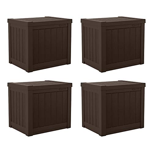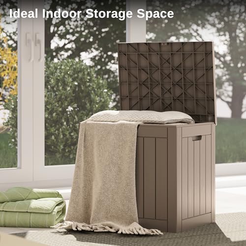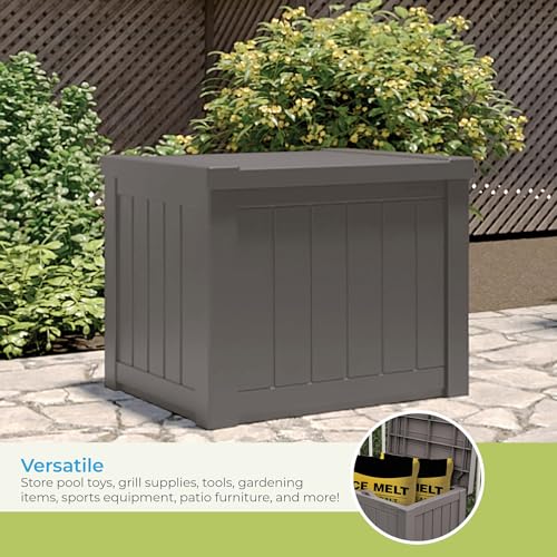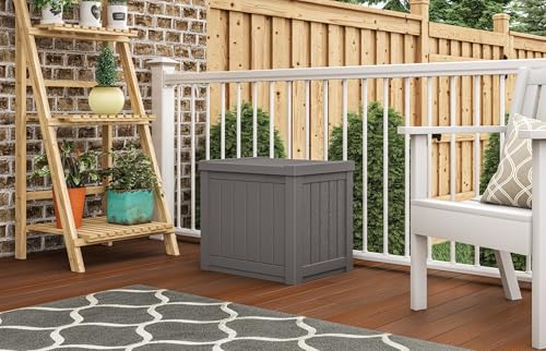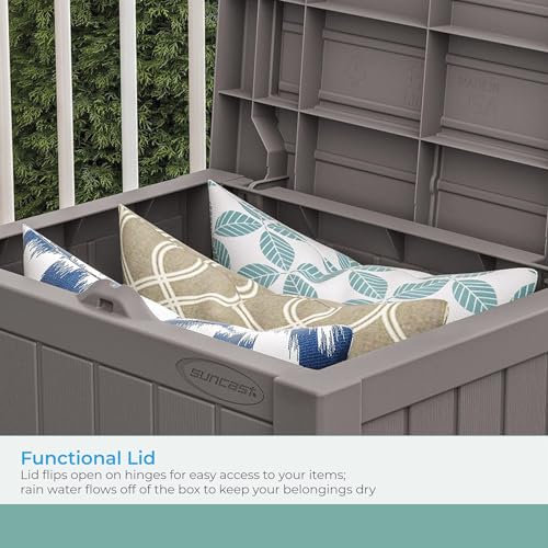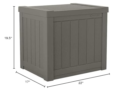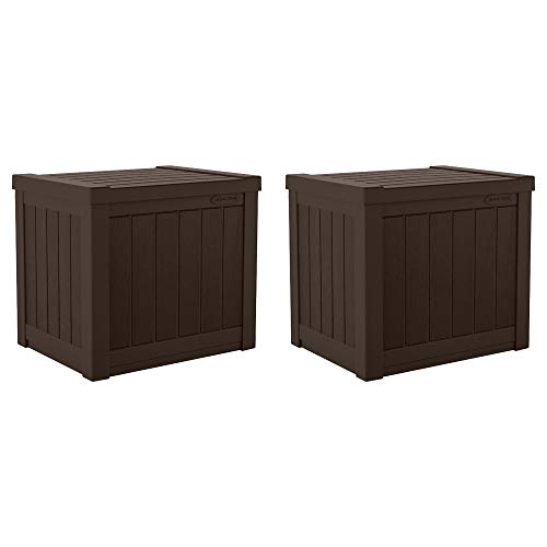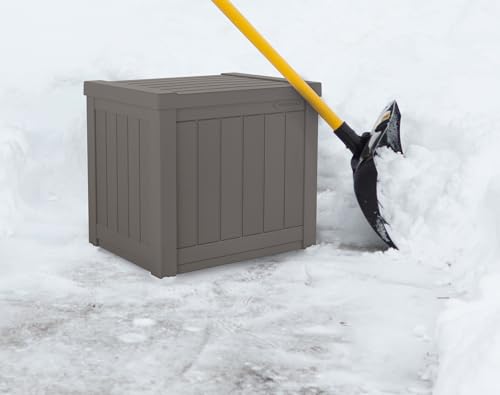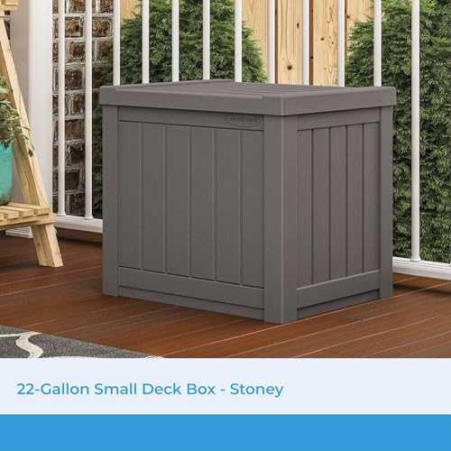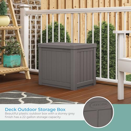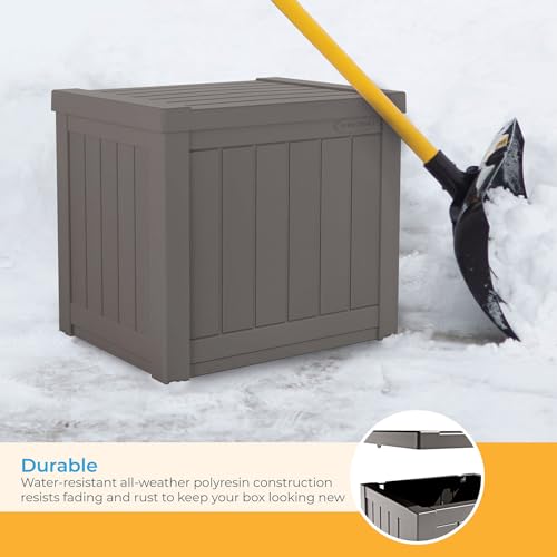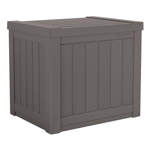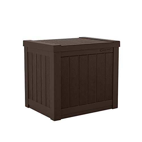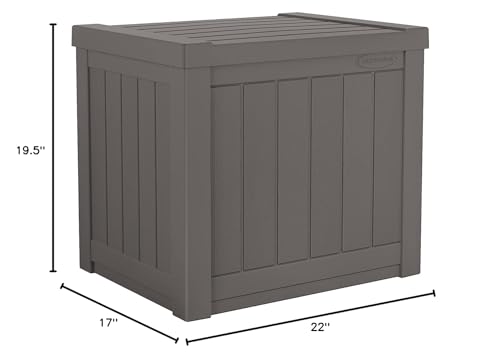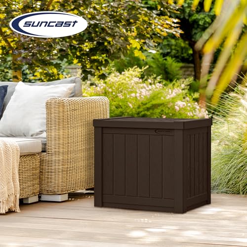 Suncast Small Outdoor Storage Box - 22 Gallon Java Resin Outdoor Deck Box, Flat-Lid Bench Seating, Patio Storage Bin Container for Organizing Tools, Cushions for Porch, Deck, Pool, & Garden