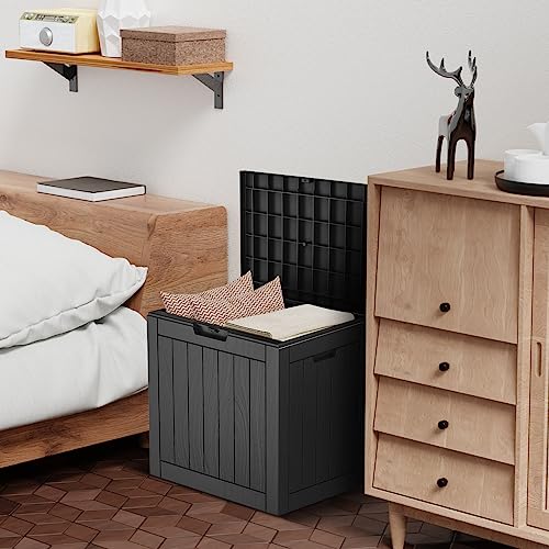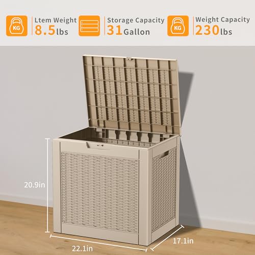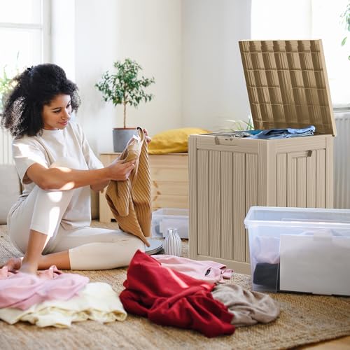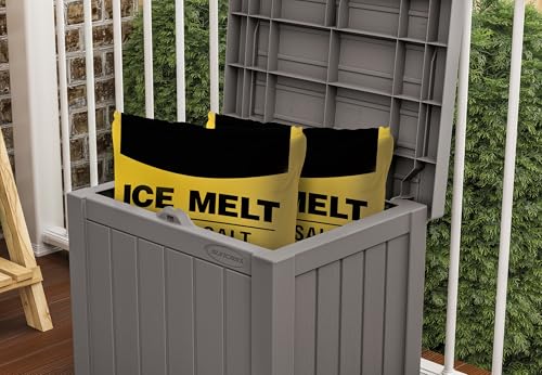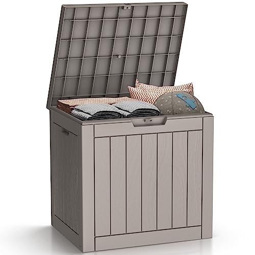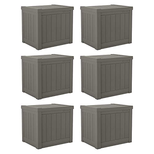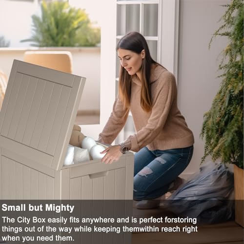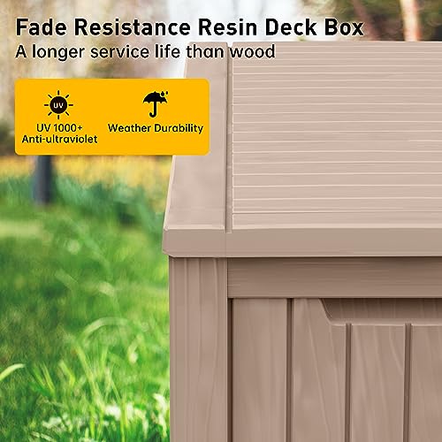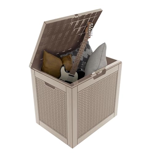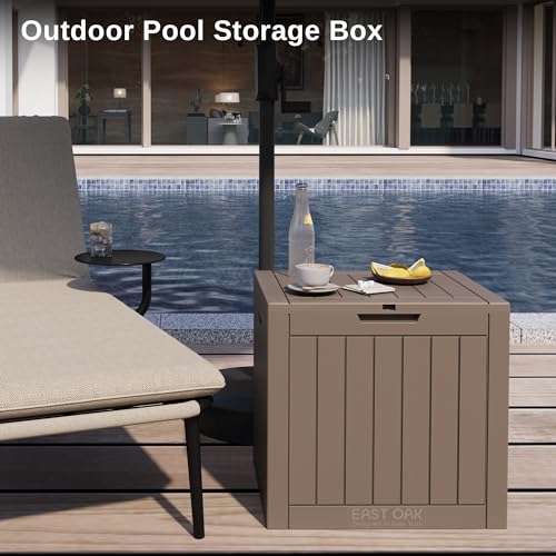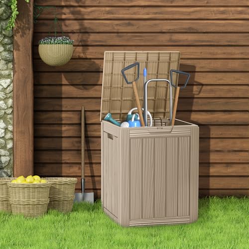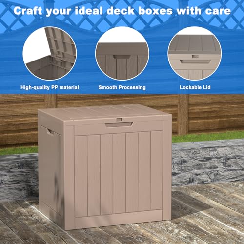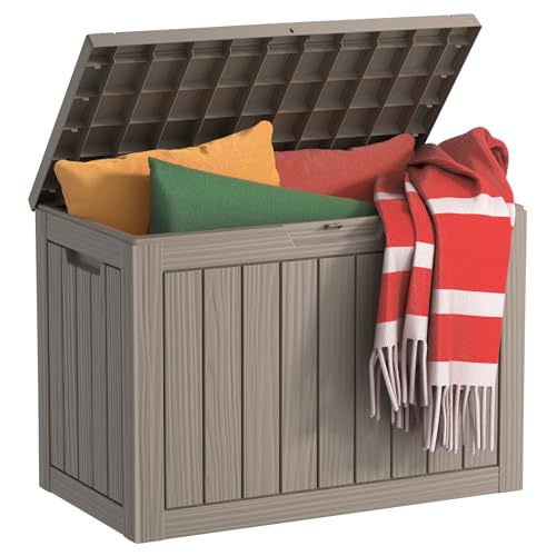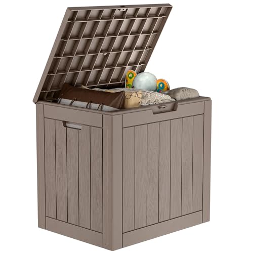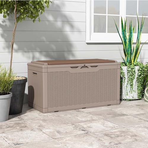 Suncast Small Outdoor Storage Box - 22 Gallon Java Resin Outdoor Deck Box, Flat-Lid Bench Seating, Patio Storage Bin Container for Organizing Tools, Cushions for Porch, Deck, Pool, & Garden
