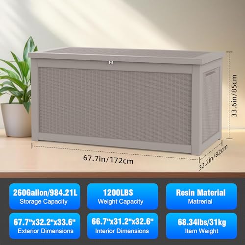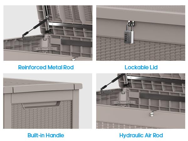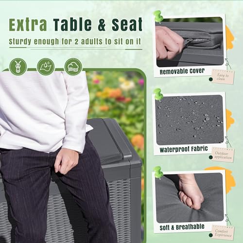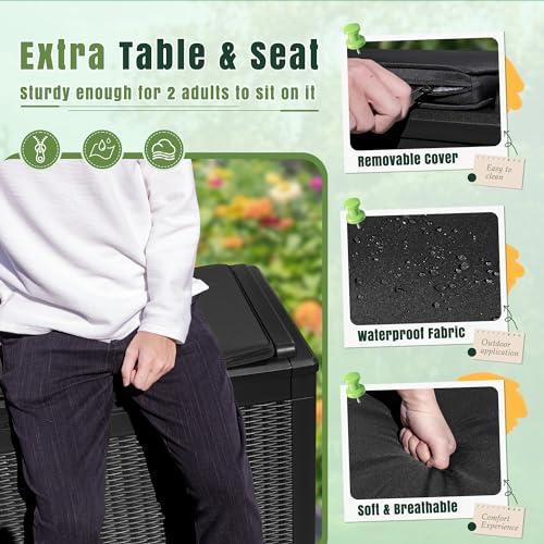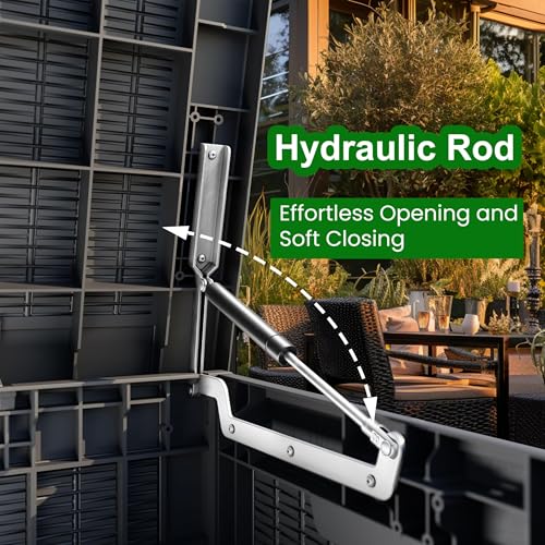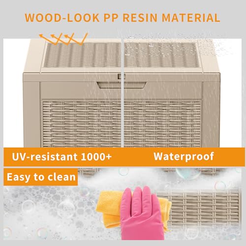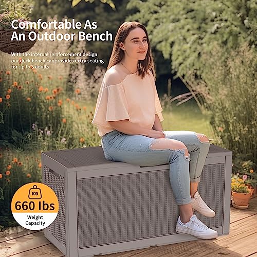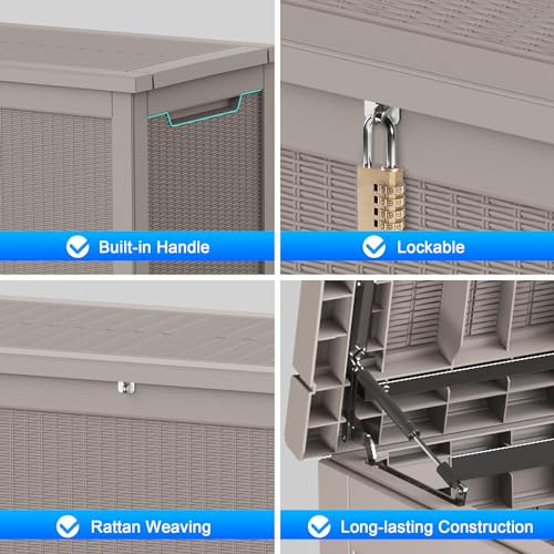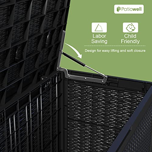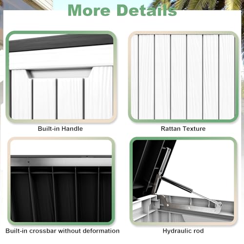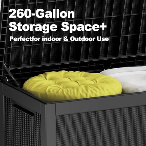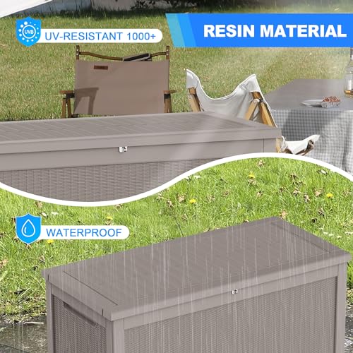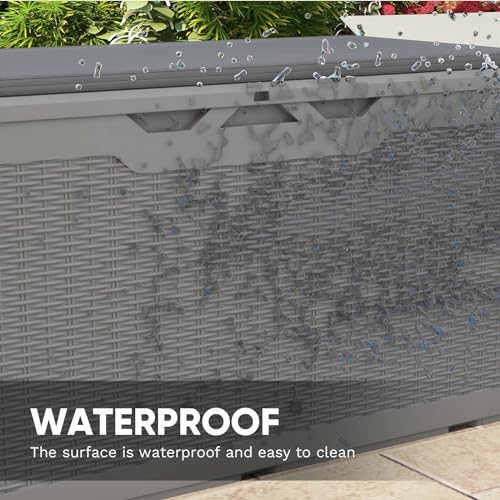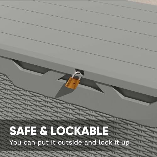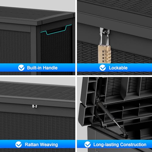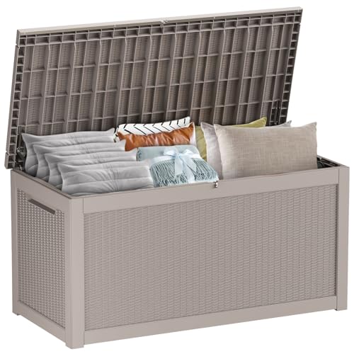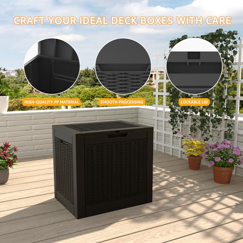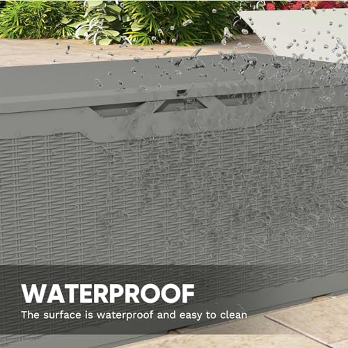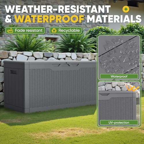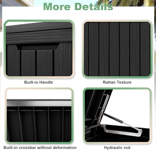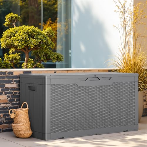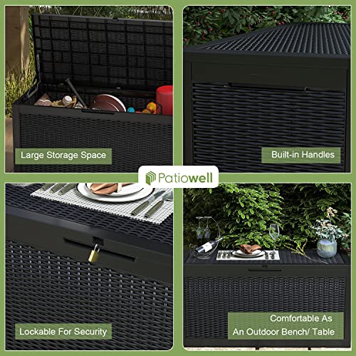 100 Gallon Outdoor Storage Box,Large Waterproof Resin Deck Box,Lockable Storage Container with Reinforced Support for Patio Cushions,Garden Tools,UV-Resistant(Black Rattan)