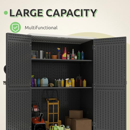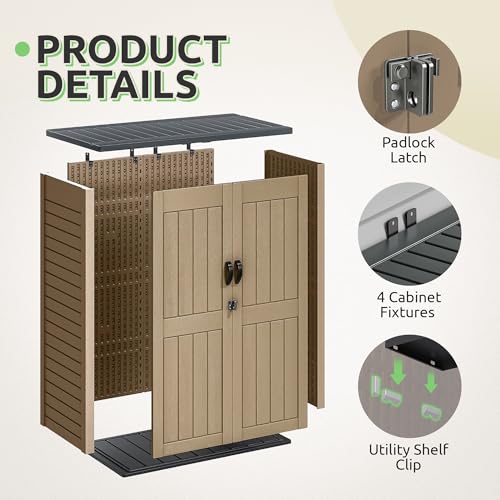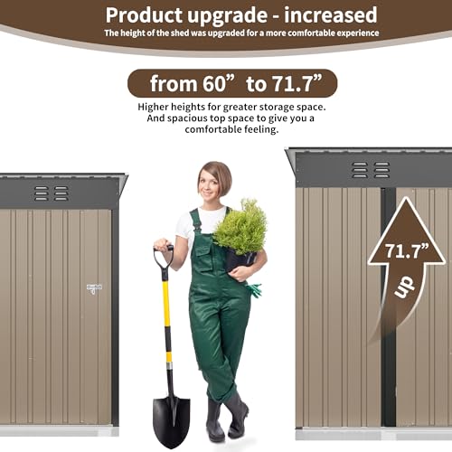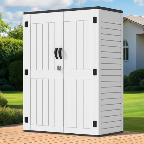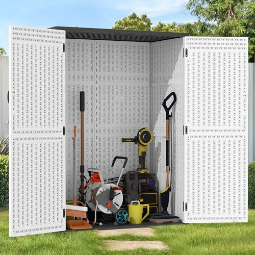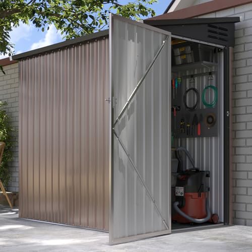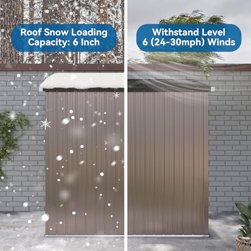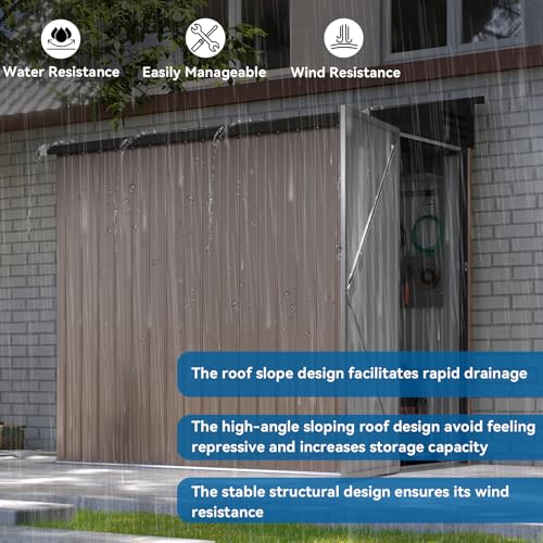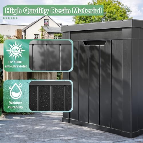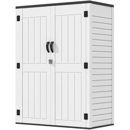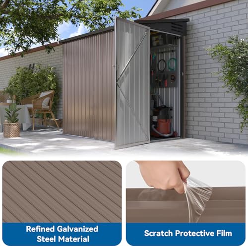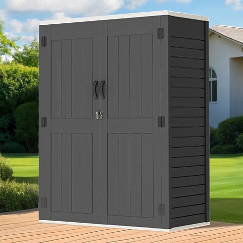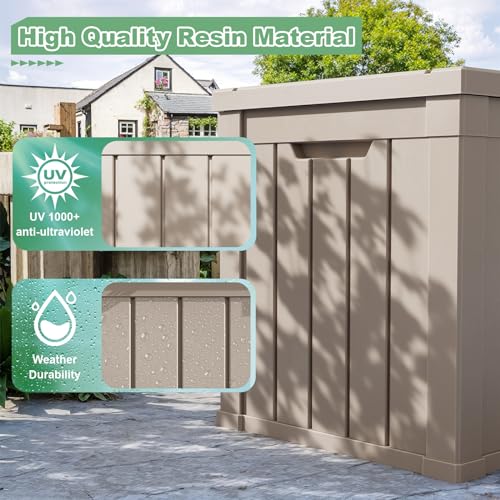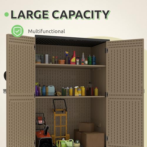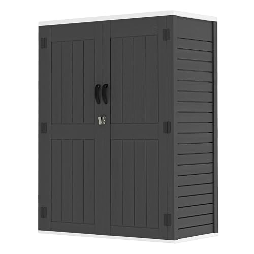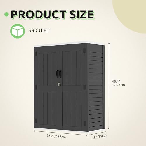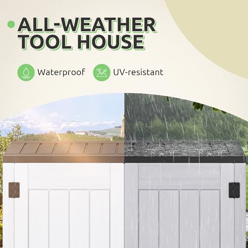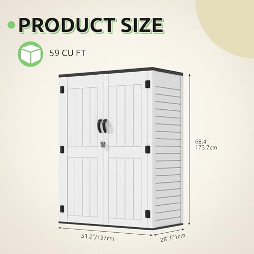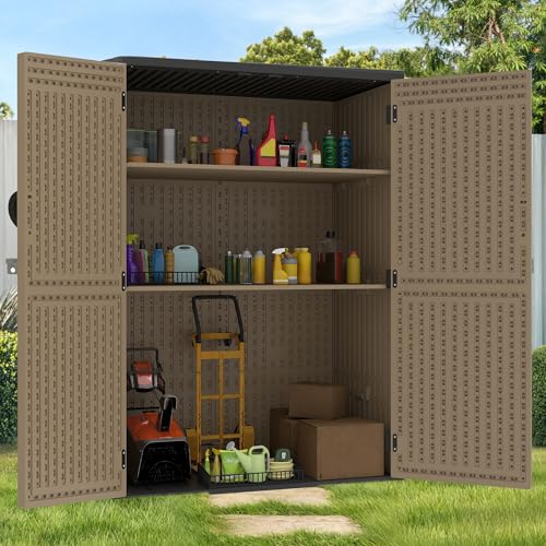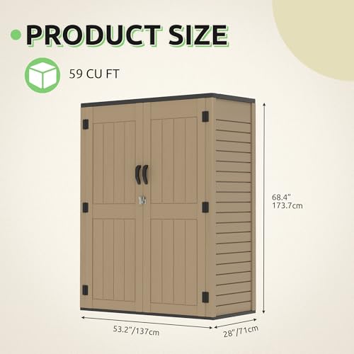 GOOBED Vertical Outdoor Storage Shed, 59 Cubic Feet Resin Tall Shed, Lockable Waterproof Tool Organizer for Garden, Garage, Patio, No Shelves (Brown)