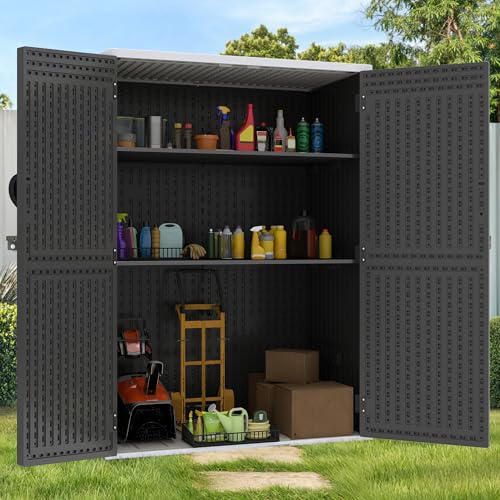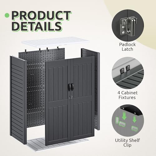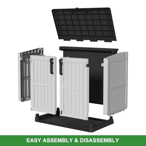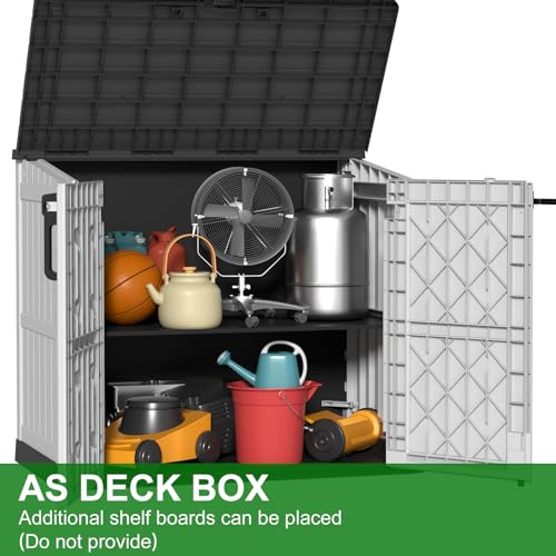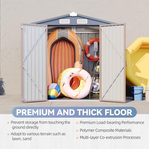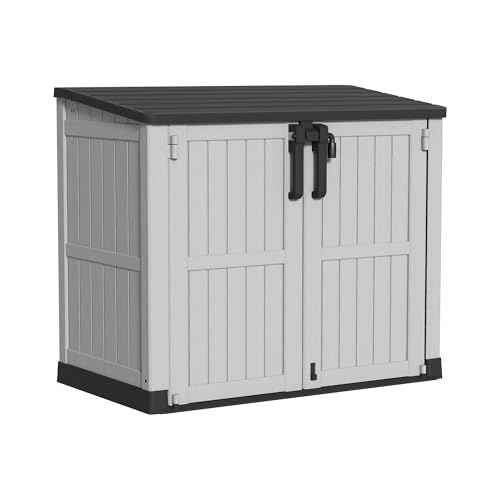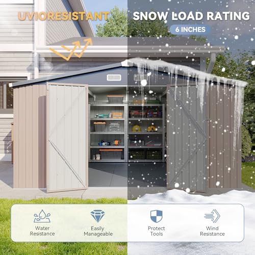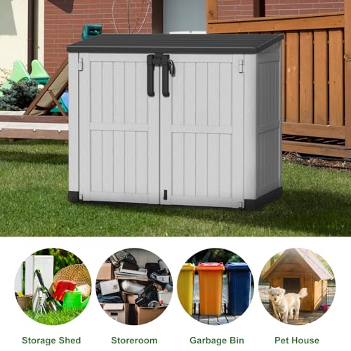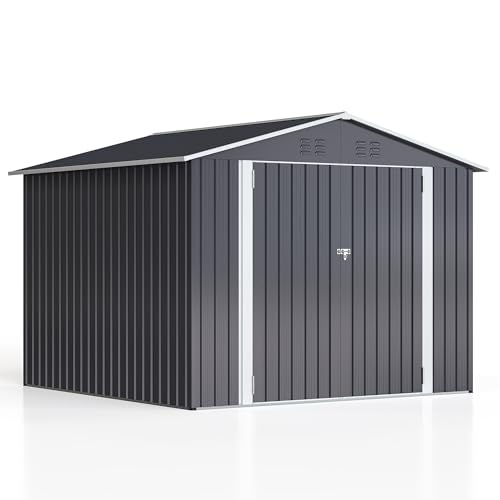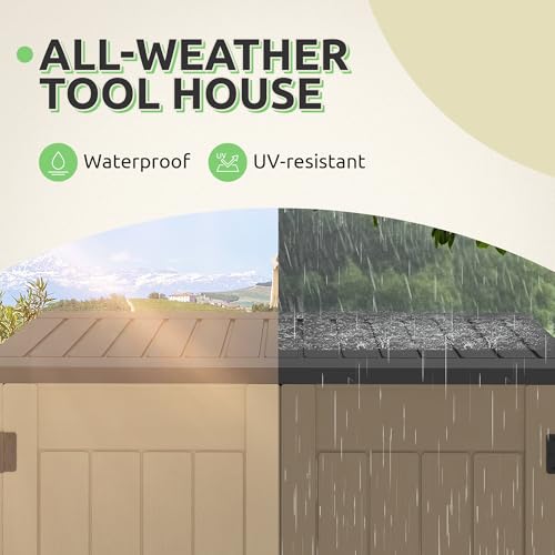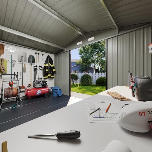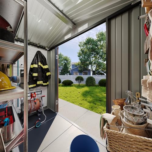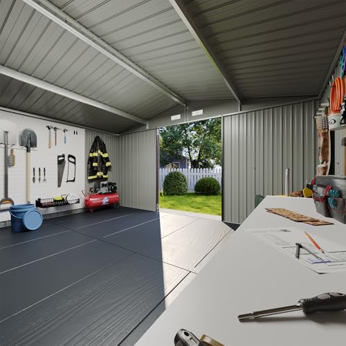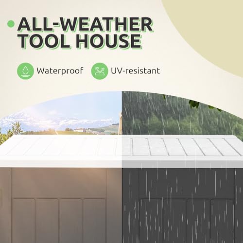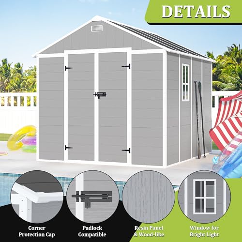8x8 FT Outdoor Resin Storage shed - Waterproof Garden Sheds with Vents, Lockable Double Doors and Windows for Lawn, Backyard, Patio, Tool Storage Use,Rust and UV Proof, Gray