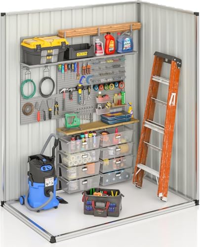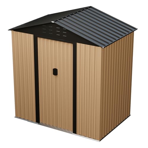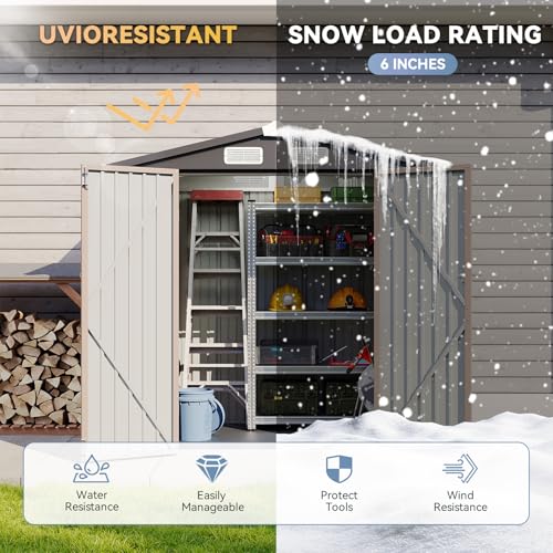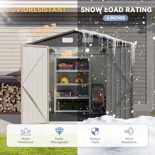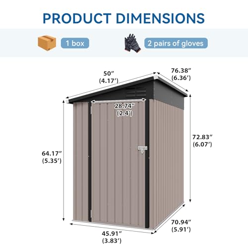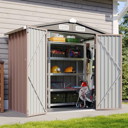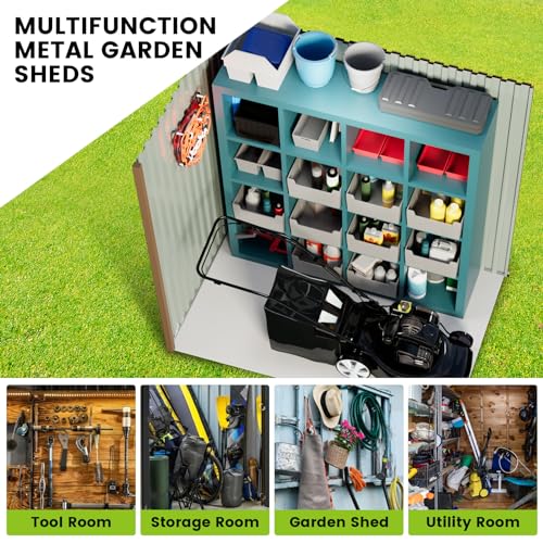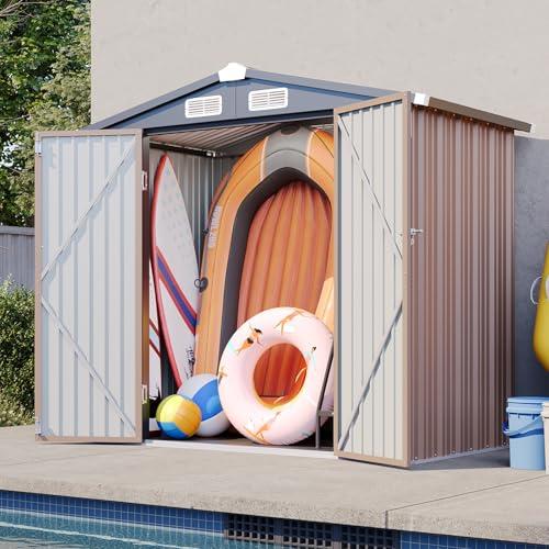DWVO 6x4ft Metal Outdoor Storage Shed with Window, Lockable Tool Storage Sheds, Steel Garden Sheds with Sloped Roof for Backyard, Patio, Garage, Lawn, Gray + White