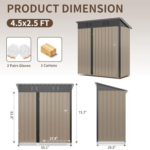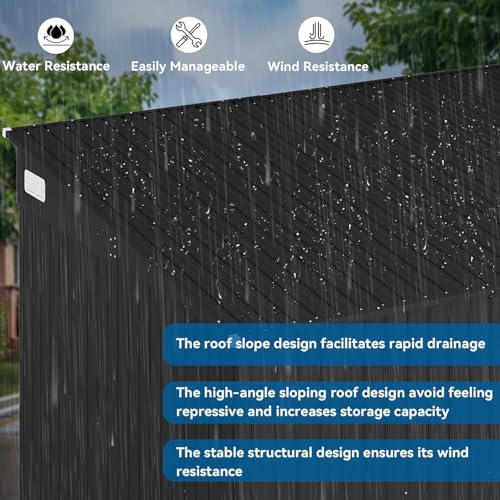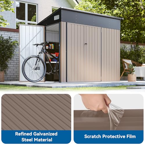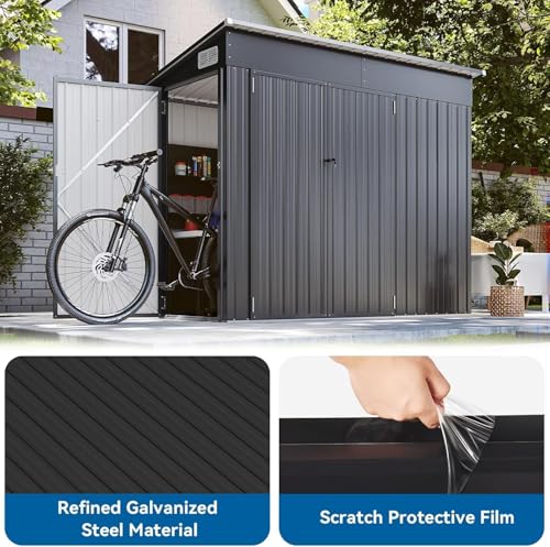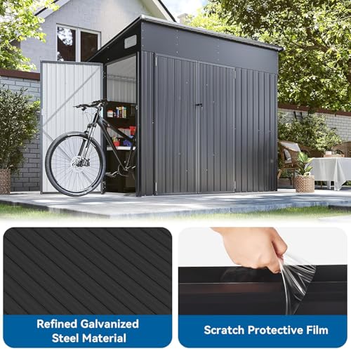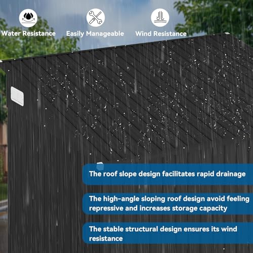8'x4' Shed Galvanized Steel Storage Sheds with Triple Doors Weatherproof Outdoor Utility Sheds, Dual Lock Lean to Shed with Sloped Roof for Mower, Bike, Generator, Garden Tools (Black)