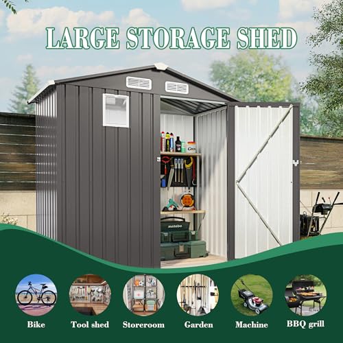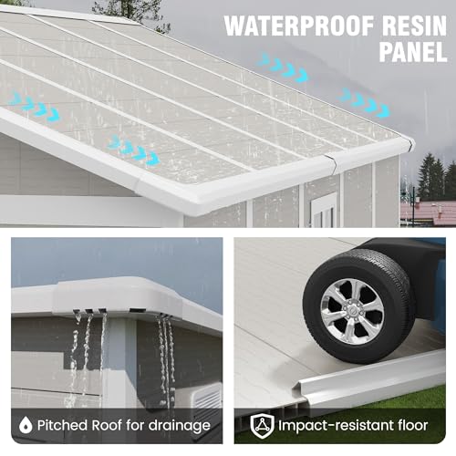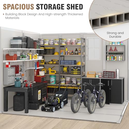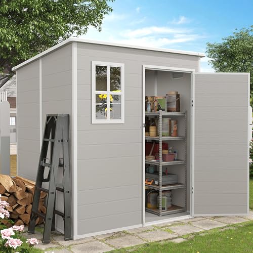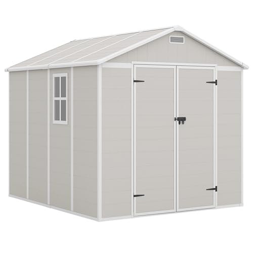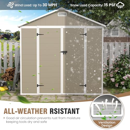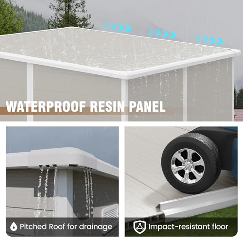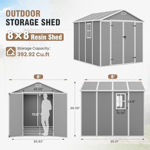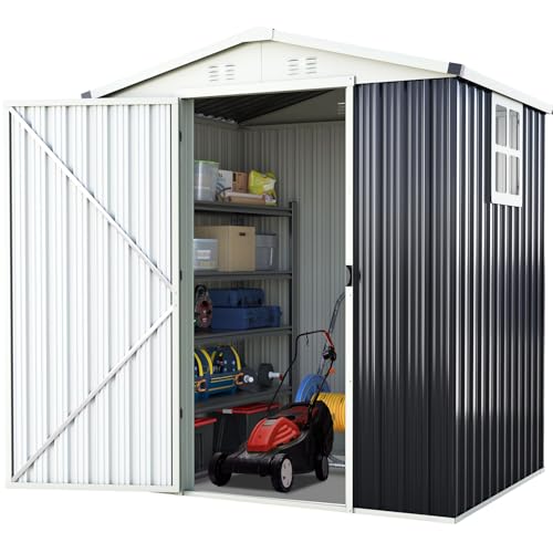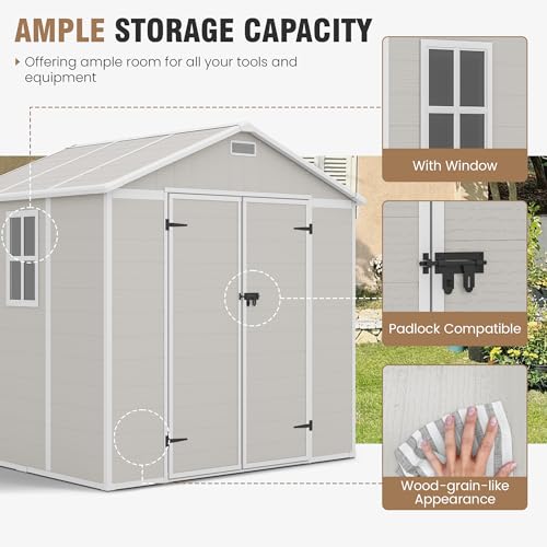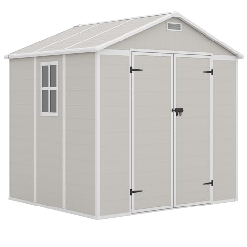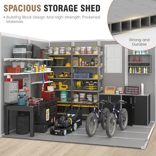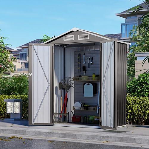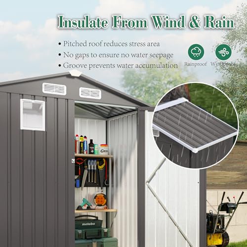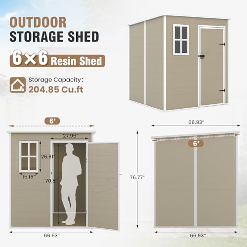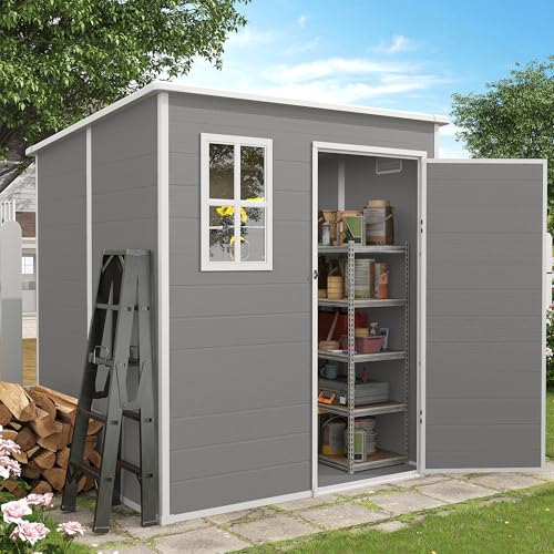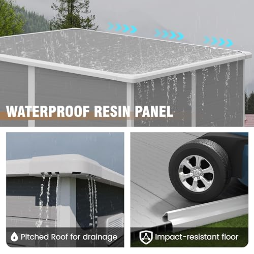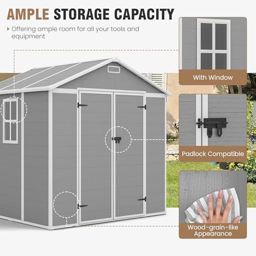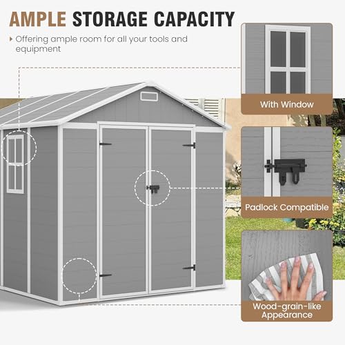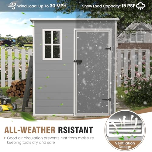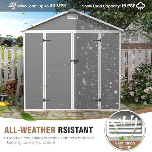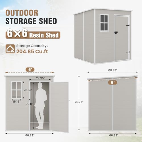 Outdoor Storage Shed, 6x6 FT Resin Shed with Floor and Lockable Door, Window, Vents, Tool Sheds and Outdoor Storage for Bike, Garden Accessories, Tools, Waterproof (Grey & White)