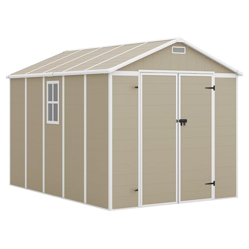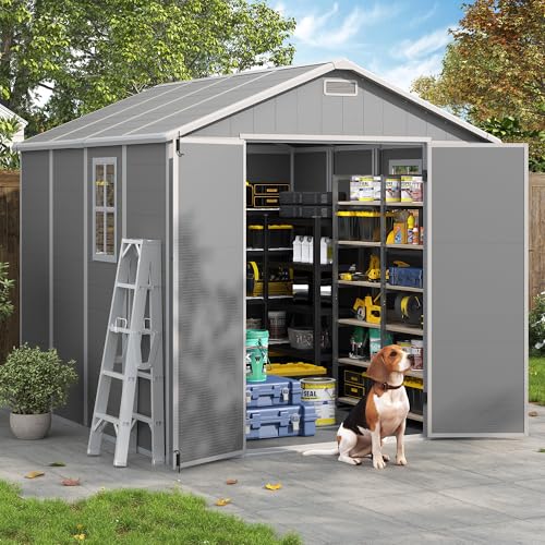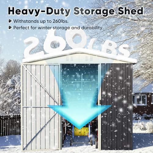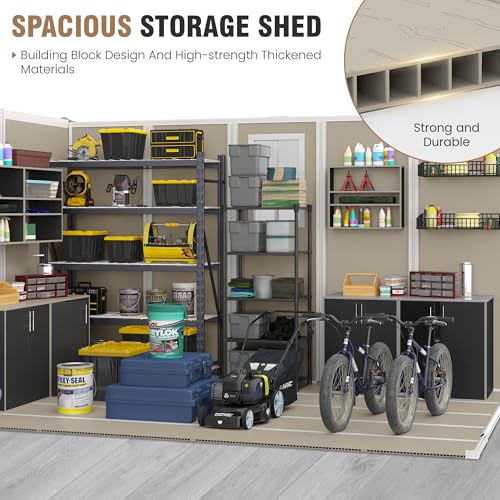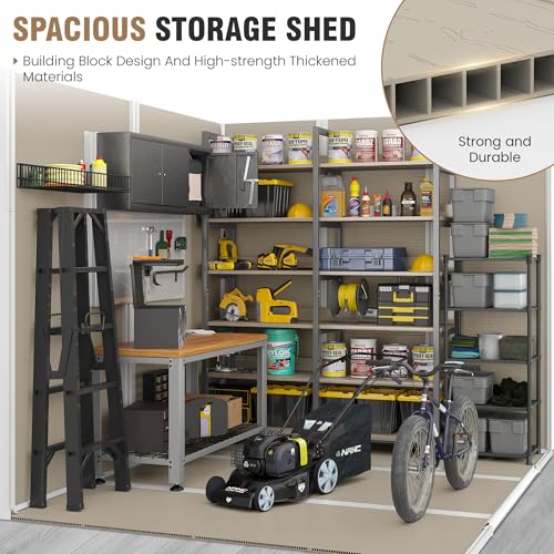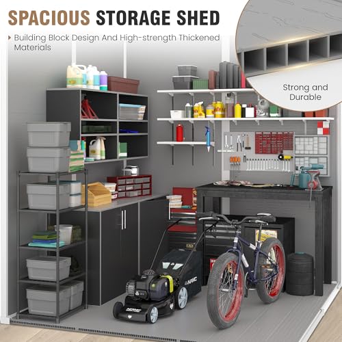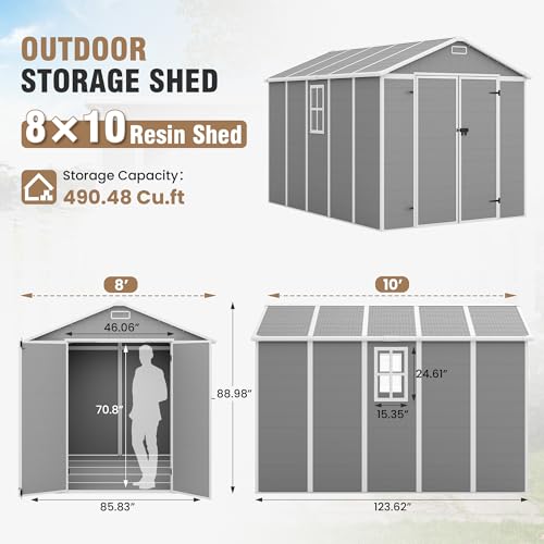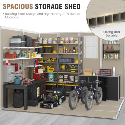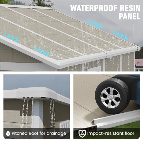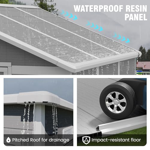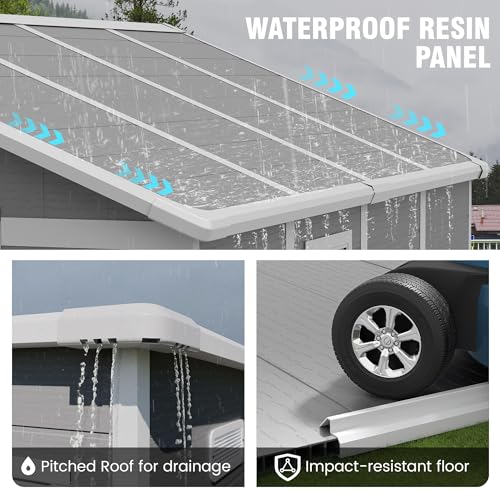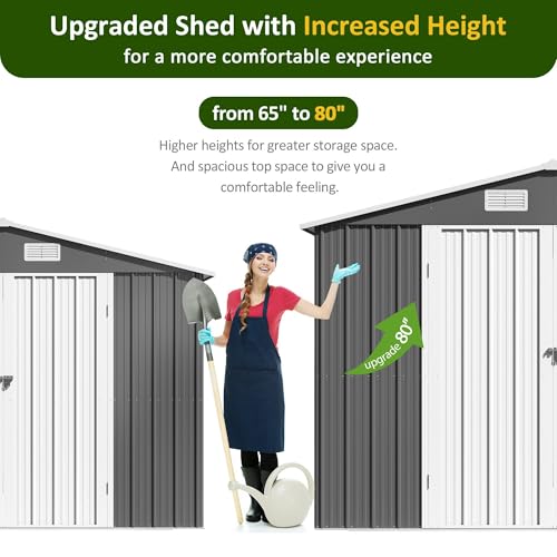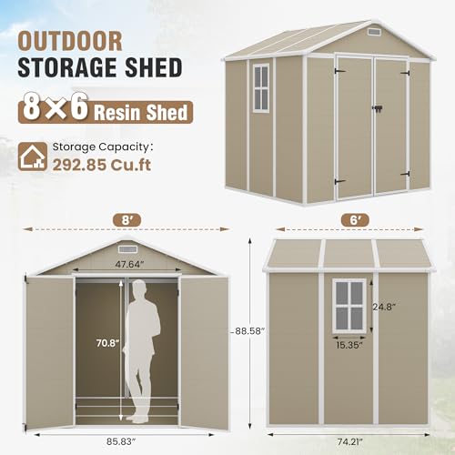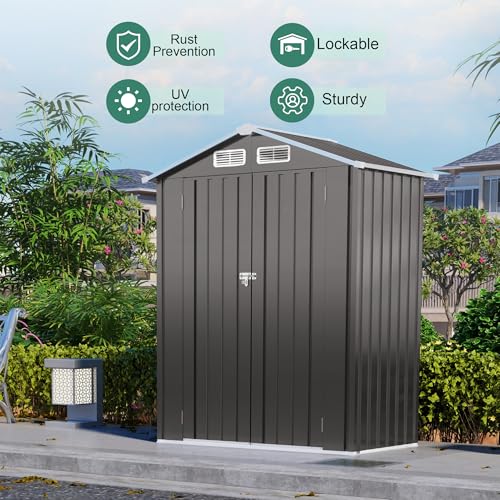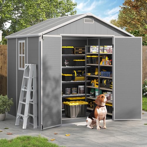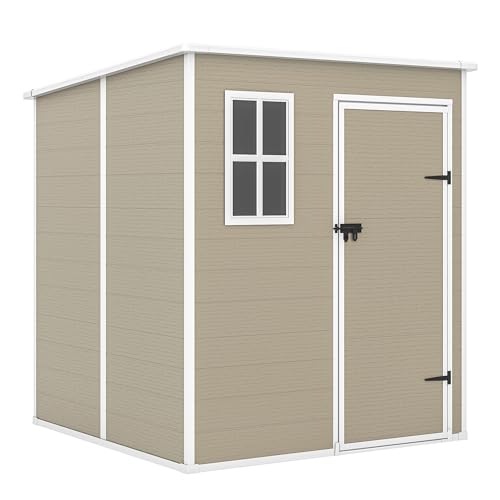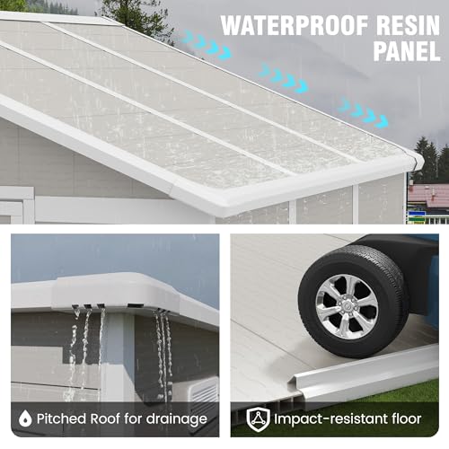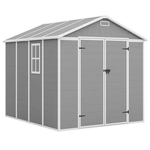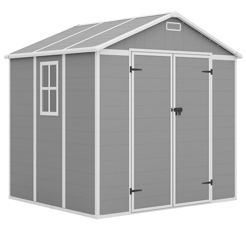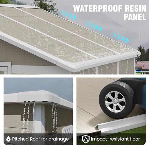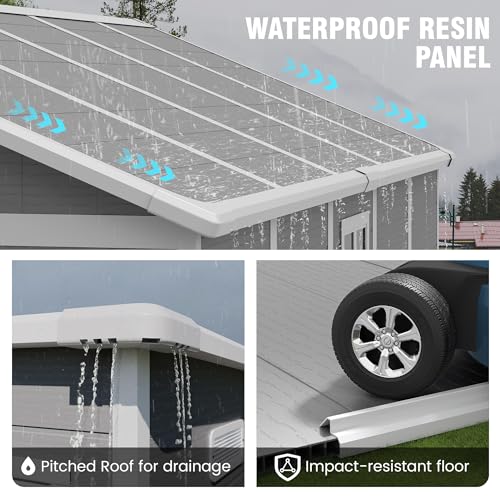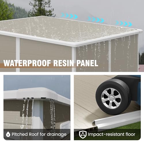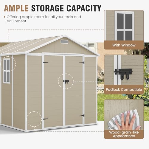 Outdoor Storage Shed, 6x6 FT Resin Shed with Floor and Lockable Door, Window, Vents, Tool Sheds and Outdoor Storage for Bike, Garden Accessories, Tools, Waterproof (Grey & White)