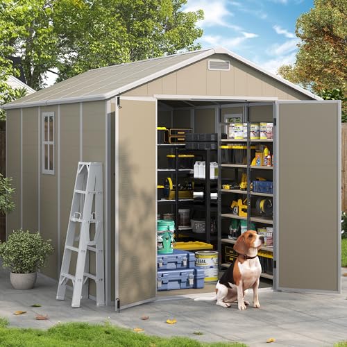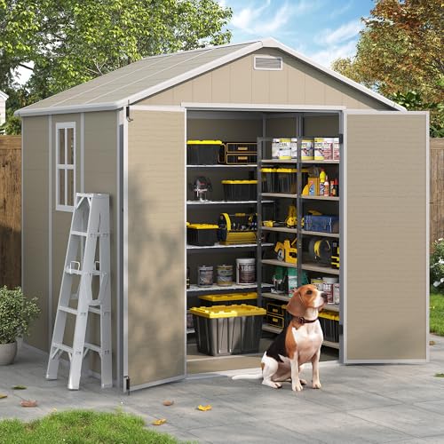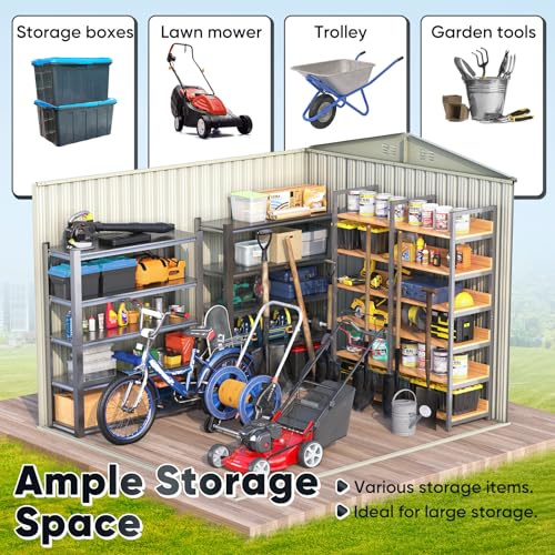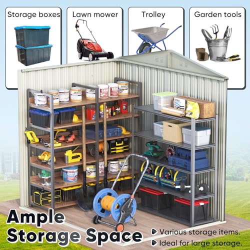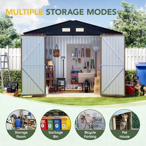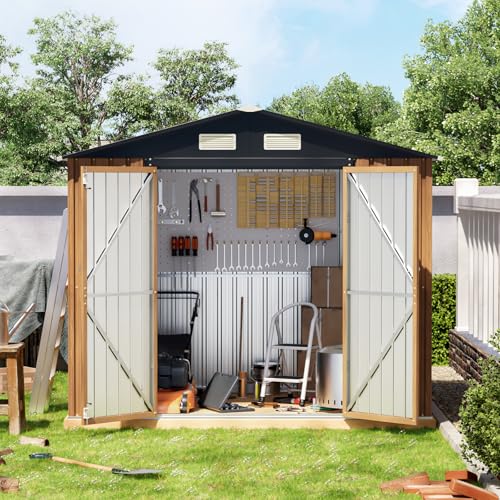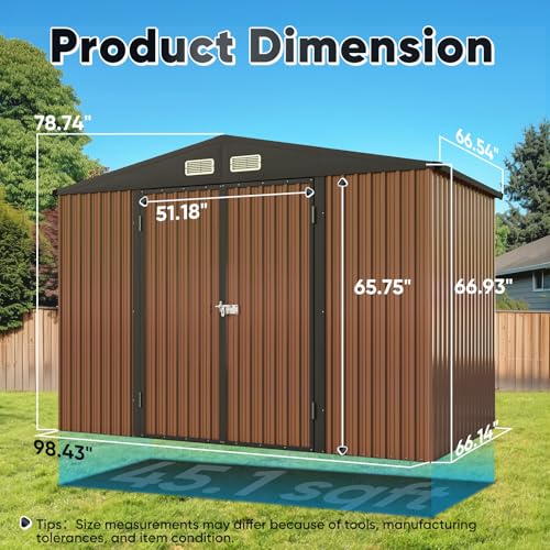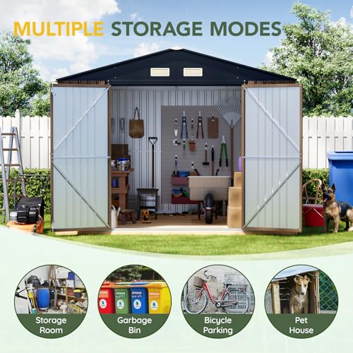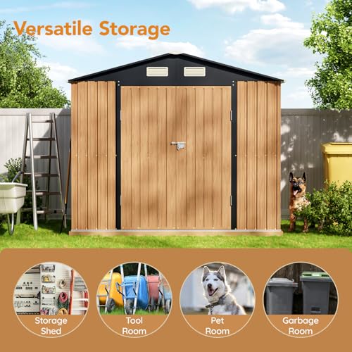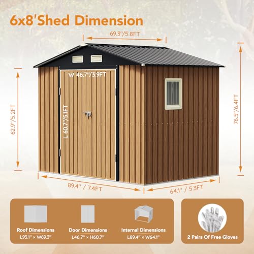 DWVO 8'x6' Large Metal Outdoor Storage Shed, Heavy Duty Tool Storage Sheds for Backyard Patio Lawn - Ideal for Bicycles, Garden Tools, and Lawn Equipment, Easy-to-Assemble, Brown