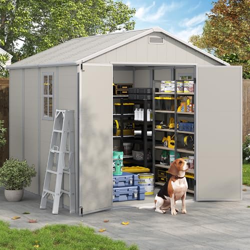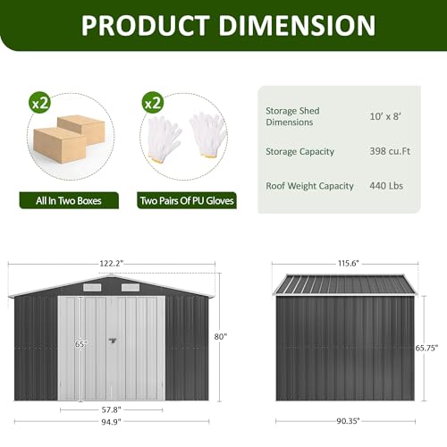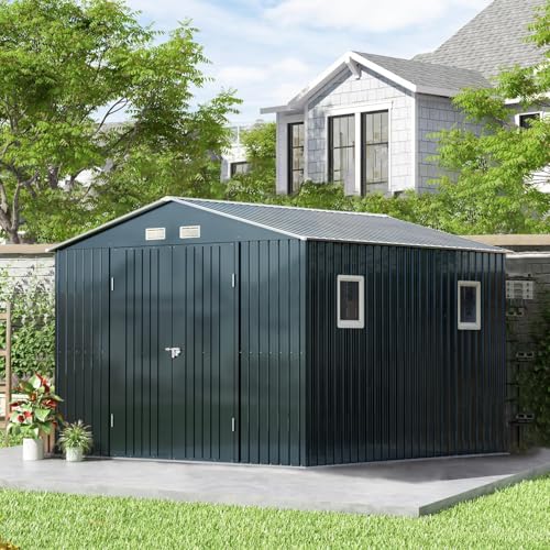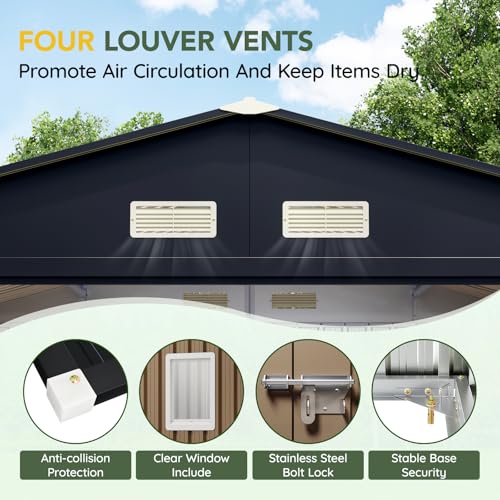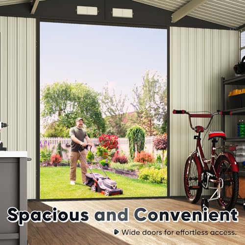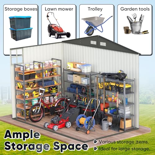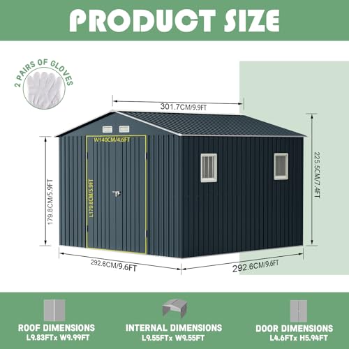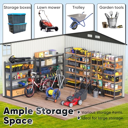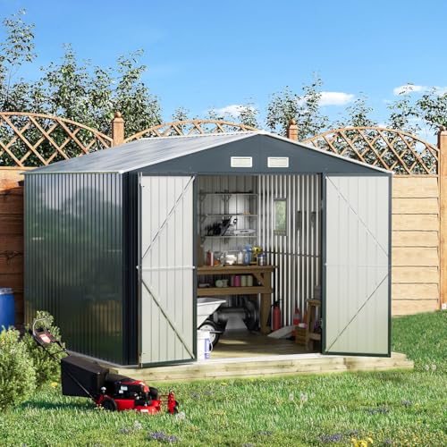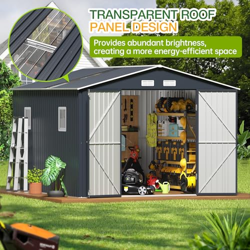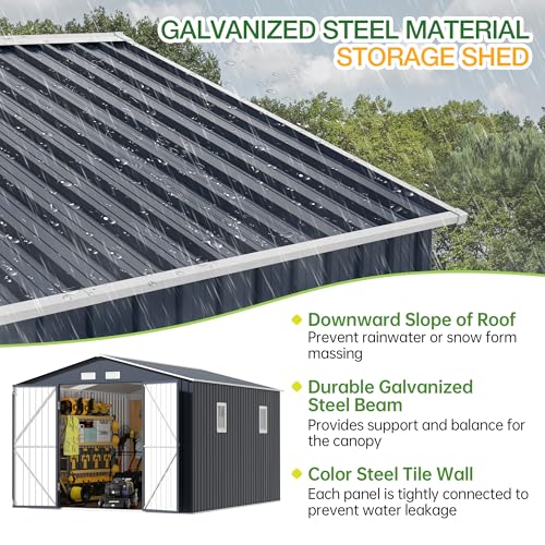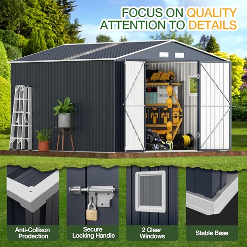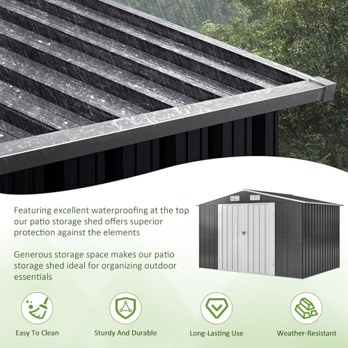DWVO 10x8ft Metal Outdoor Storage Shed, Waterproof Tool Shed Heavy-Duty Storage Unit with Lockable Door and Vents, Ideal for Bicycles, Tools, Lawnmowers, Backyards, Patios, Lawns - Dark Gray