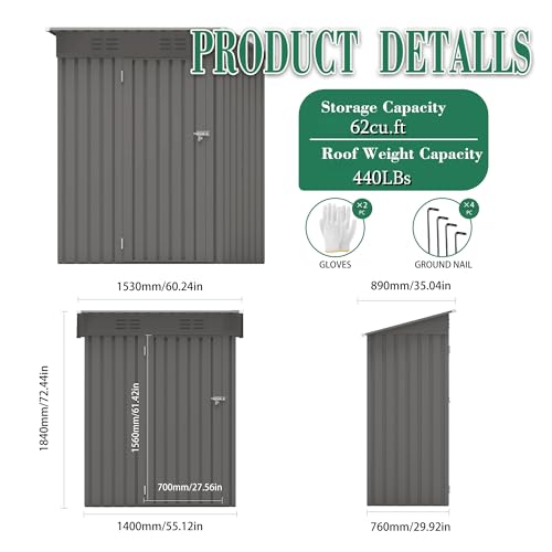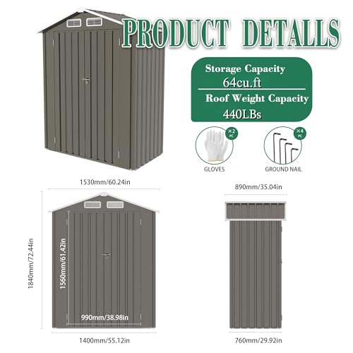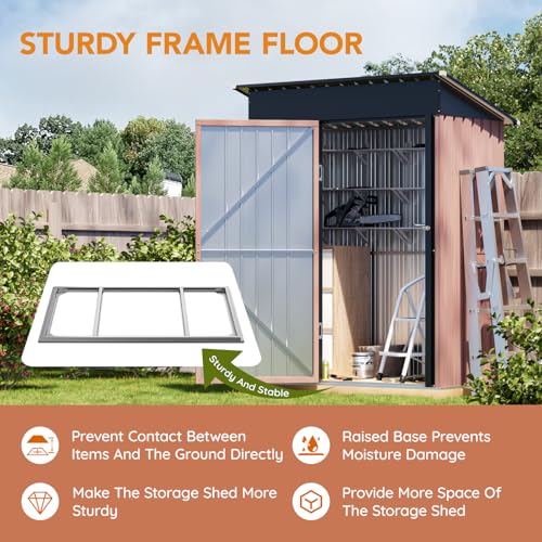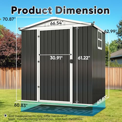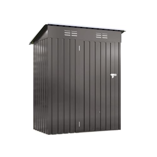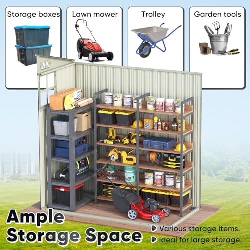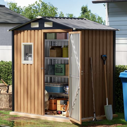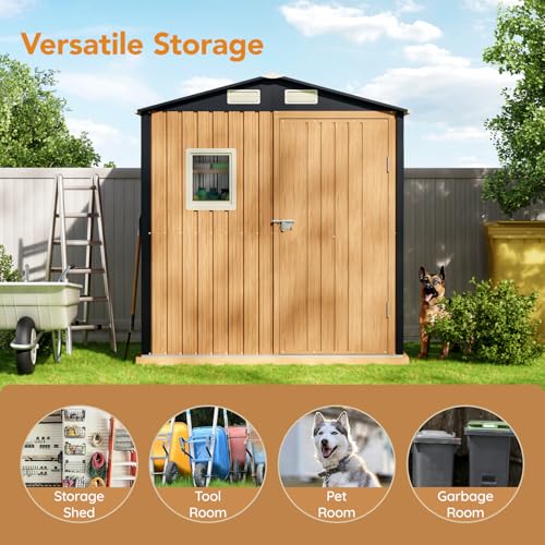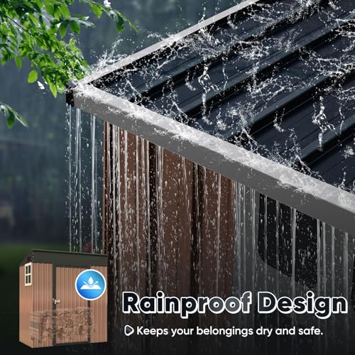 5X3X6.1FT Garden Storage Shed with Lockable Door,Steel Tool Shed with Sloping Roof,Anti-Corrosion Metal Shed for Backyard Patio Lawn (Light Wood Grain)