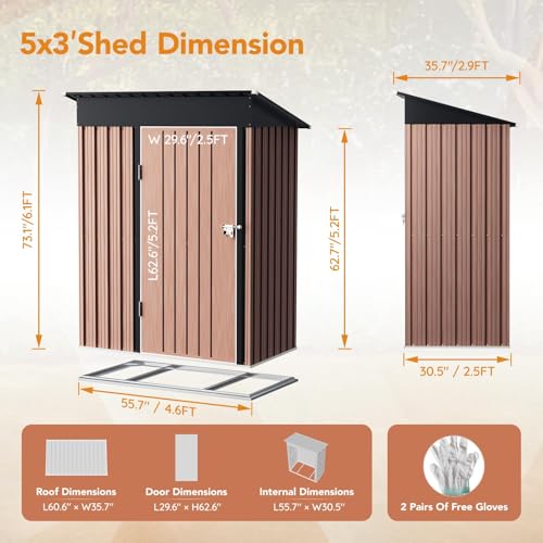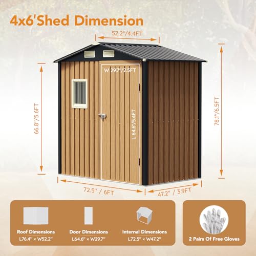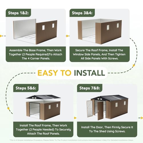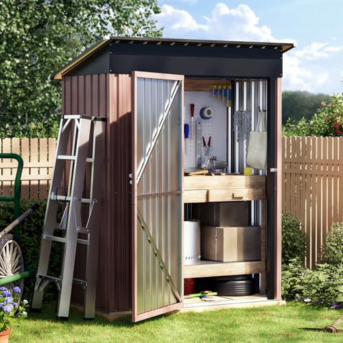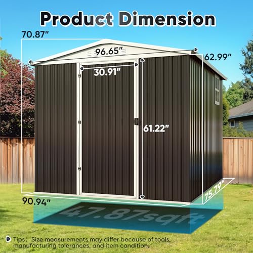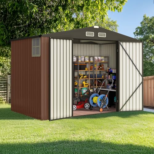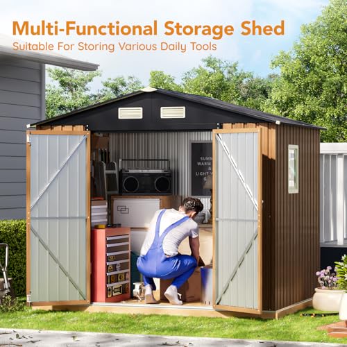 8FT x 6FT Sheds & Outdoor Storage, Metal Garden Shed, Outdoor Storage Shed, Metal Utility Tool Storage Shed with Door Lock, Waterproof Roofs, for Backyard Garden Patio Lawn, Brown
