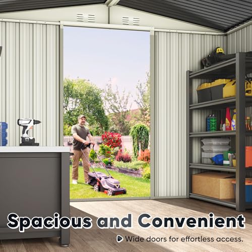 10x8 FT Outdoor Storage Shed, Metal Garden Tool Shed with Updated Frame Structure and Lockable Doors, Ideal for Backyard Garden Patio Lawn, Grey