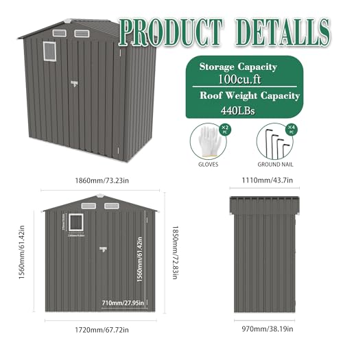 Storage Sheds 6x8 FT, Portable Shed with Rolled up Zipper Door, Waterproof, Storage Tent Heavy Duty for Motorcycle, Bike, Firewood, Garden Tools, Grey