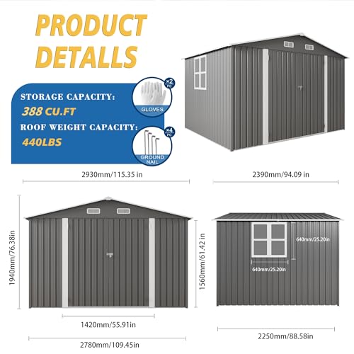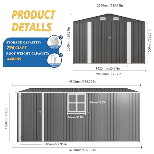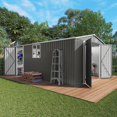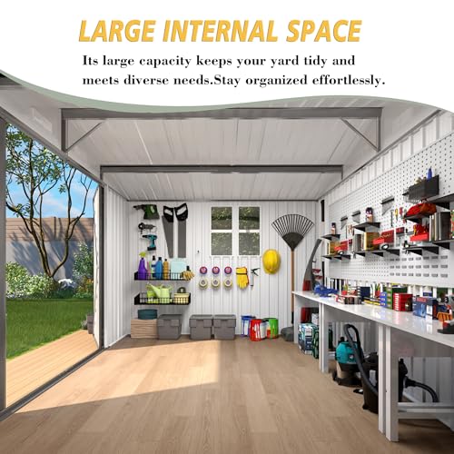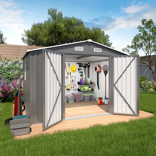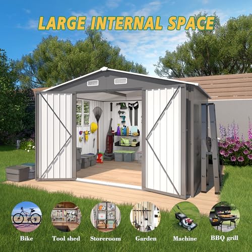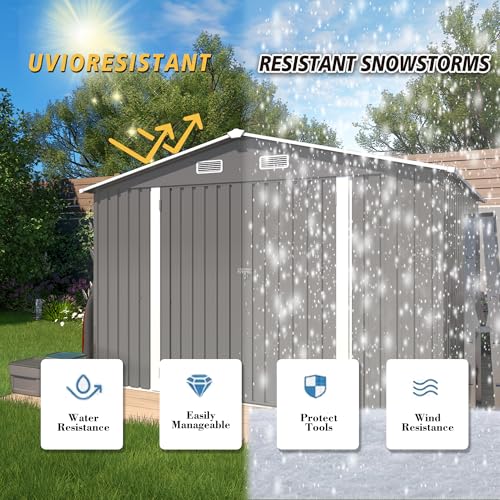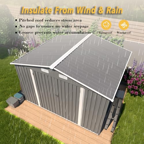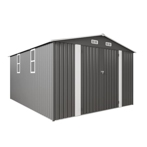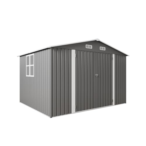 Outsunny Outdoor Storage Cabinet, Outdoor Tool Shed with Galvanized Top and Two Shelves for Yard Tools or Pool Accessories, Gray
