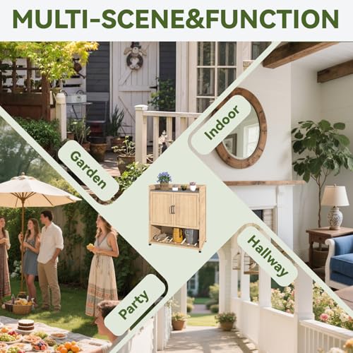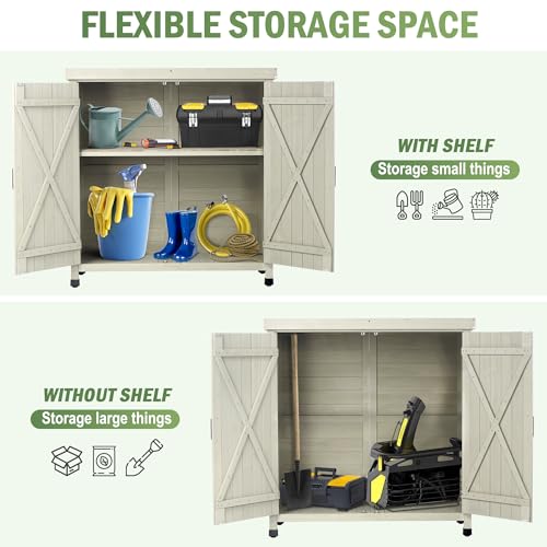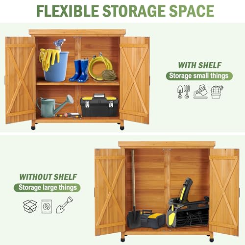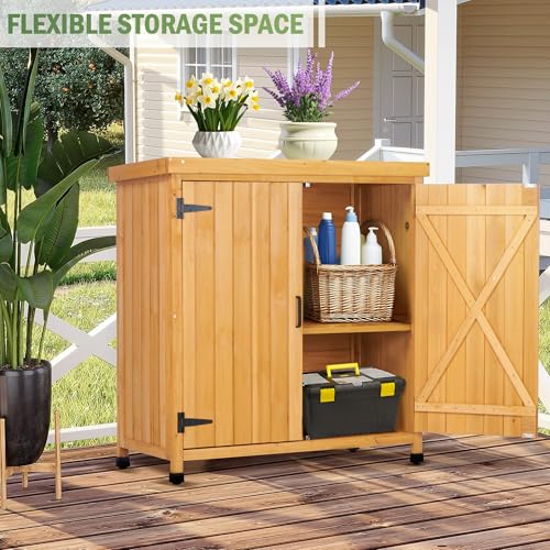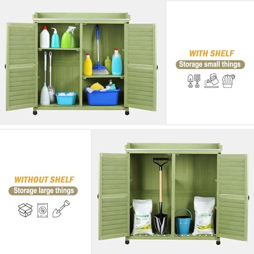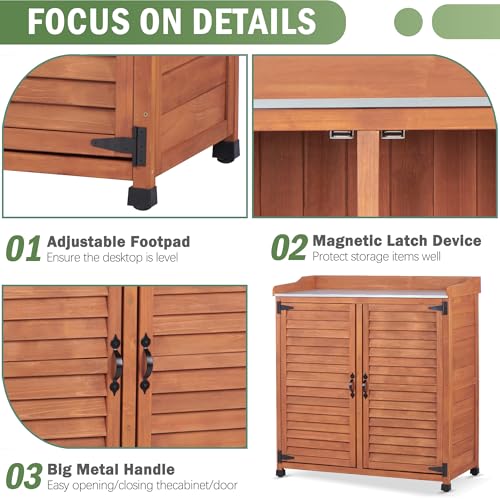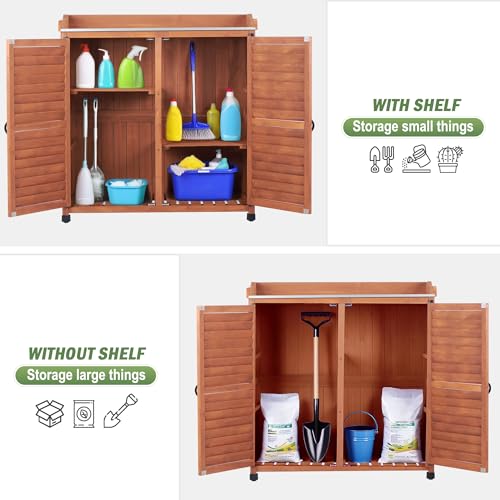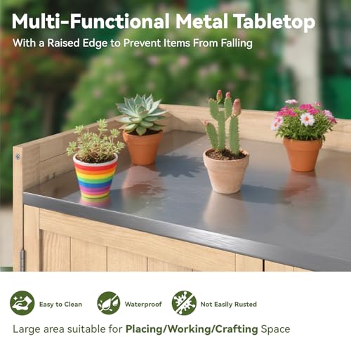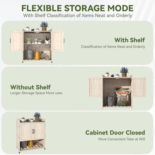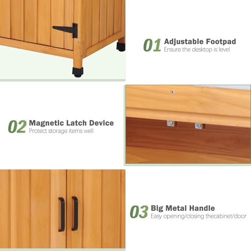 Outdoor Garden Patio Wooden Storage Cabinet Furniture Waterproof Tool Shed with Potting Benches Outdoor Work Station Table (Natural)