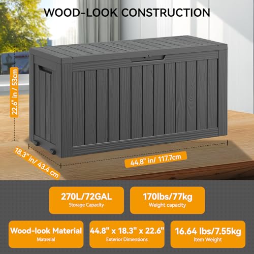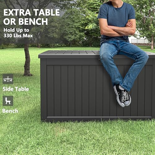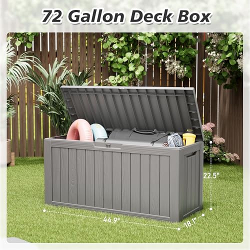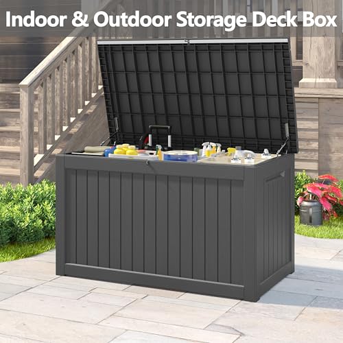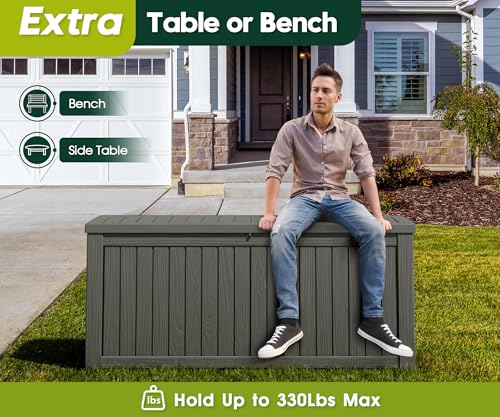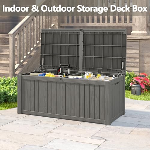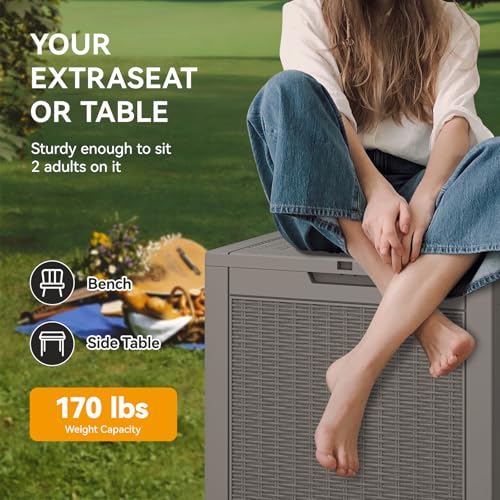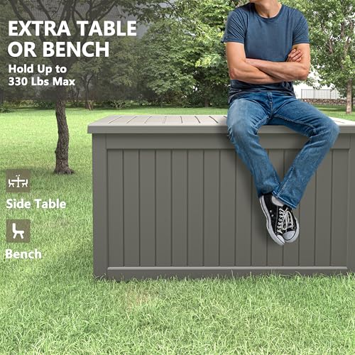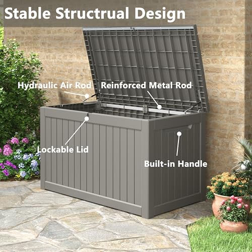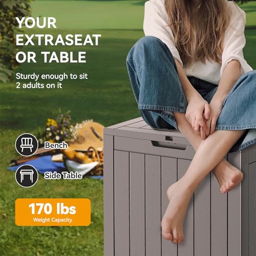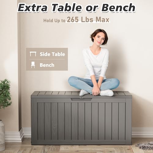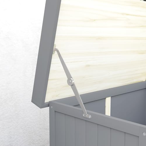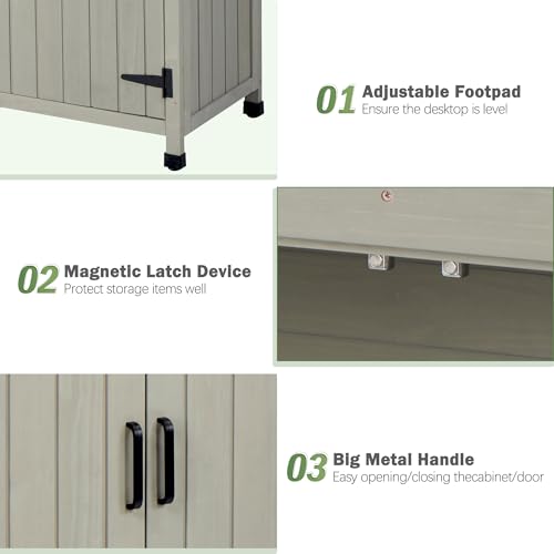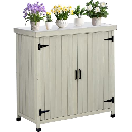 AECOJOY Outdoor Storage Cabinet&Potting Bench Table, Garden Wooden Work Bench with Adjustable Shelf, Patio Tool Work Station Planting Table with Metal Tabletop, Grey