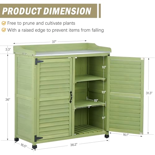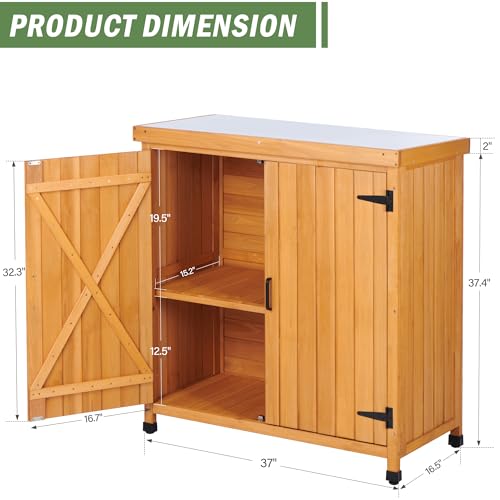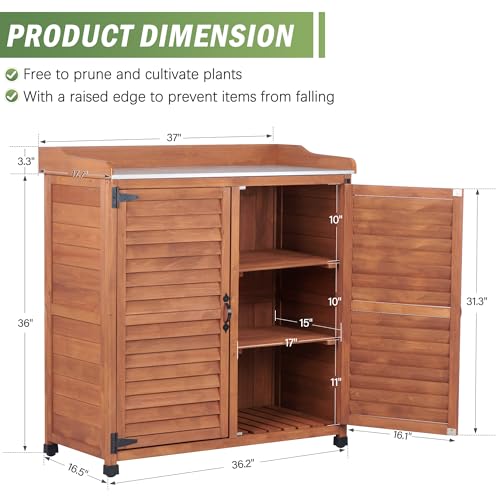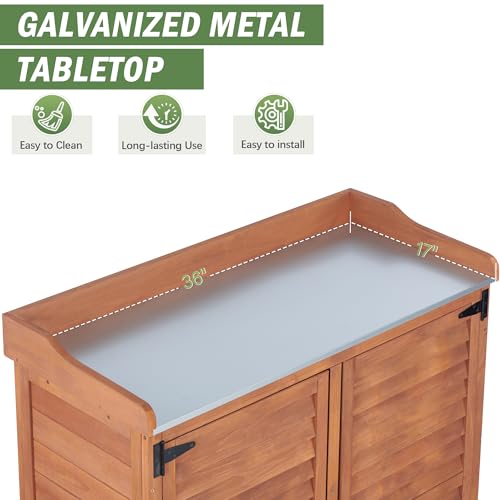 Outdoor Potting Bench with Metal Work Top - Waterproof Garden Storage Cabinet, Wooden Tool Station Shed for Backyard, Patio, Lawn Gardening (Coffee, 18" D x 37" W x 39" H)