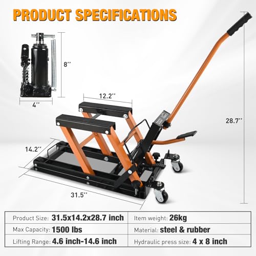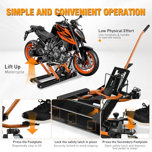 Nilight Motorcycle Lift Jack 1500 LBS Hydraulic Lifts ATV Scissor Jacks with Wheel Foot Pedal Handle Ratchet Belt Heavy Duty Lifter Stand Hoist Table for Dirt Bike Garage Storage Repair Tool,Orange