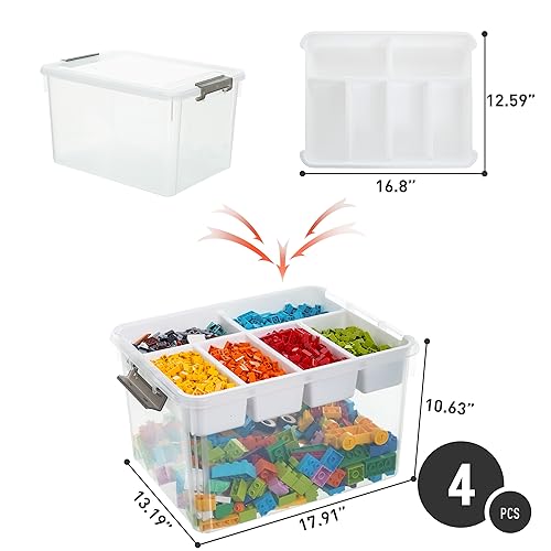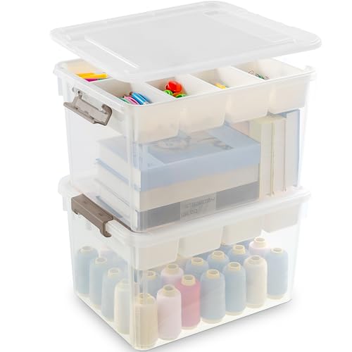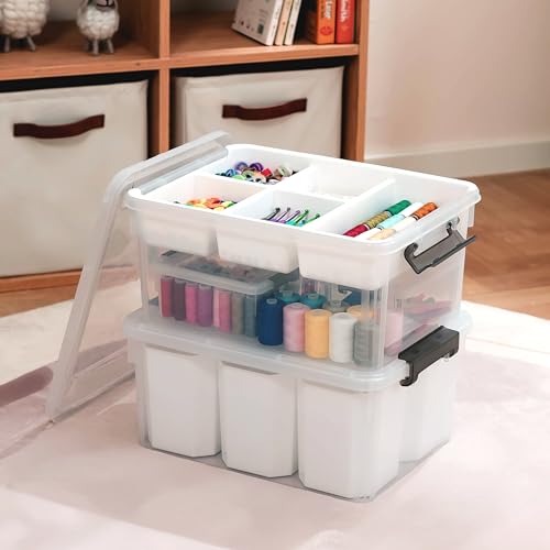 Citylife 17 QT Plastic Storage Box with Removable Tray Craft Organizers and Storage Clear Storage Container for Organizing Bead, Tool, Sewing, Playdoh