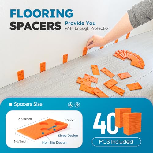 Laminate/Vinyl Flooring Tools, NAACOO Tapping Block for Vinyl Plank Flooring-Double Sided with Notches,10In Contour Gauge, Pull Bar, 40Pcs Floor Spacers,Rubber Mallet. Universal Floor Installation kit