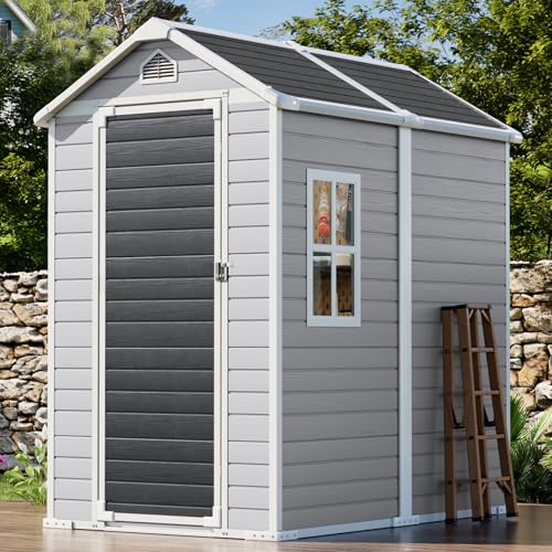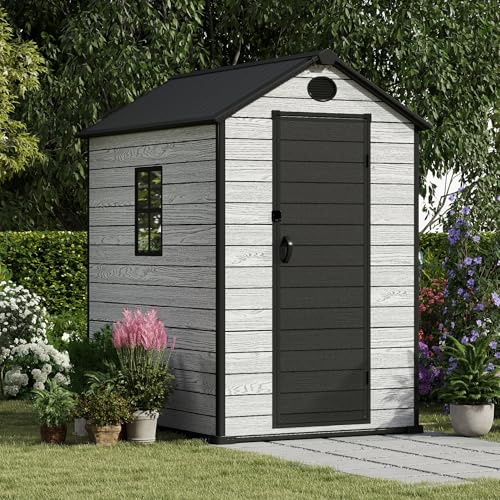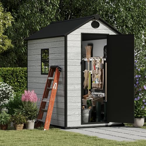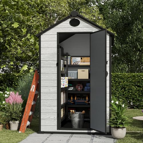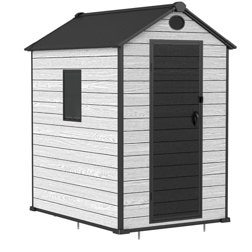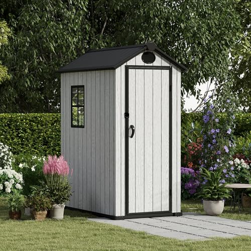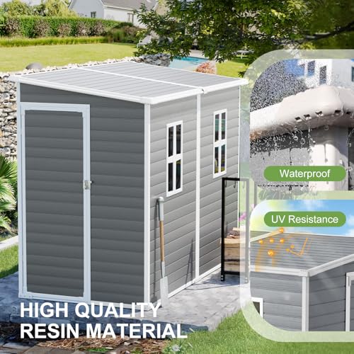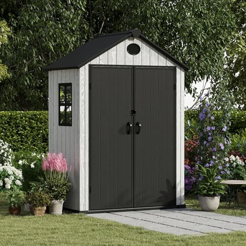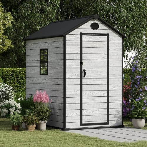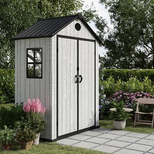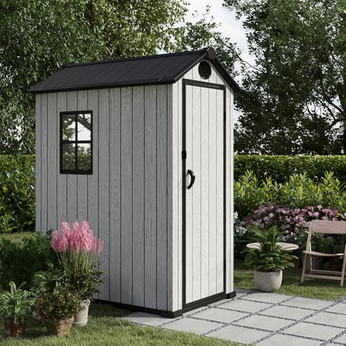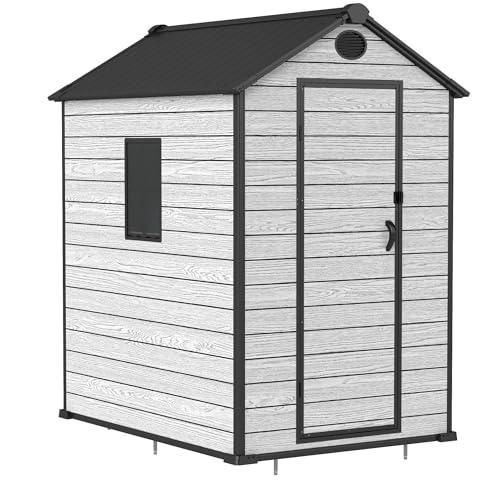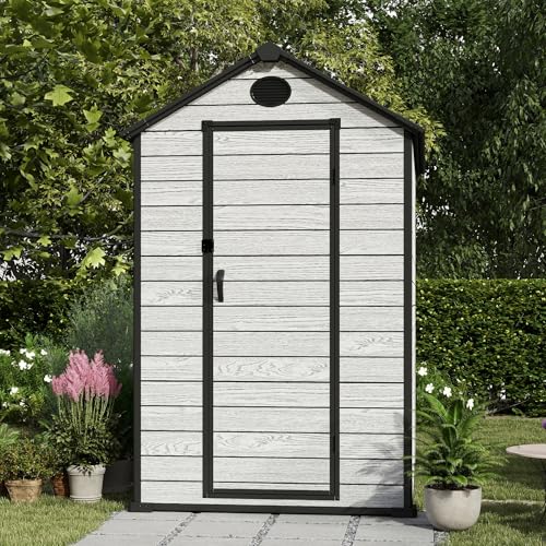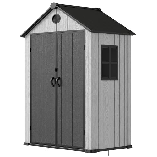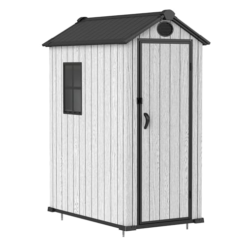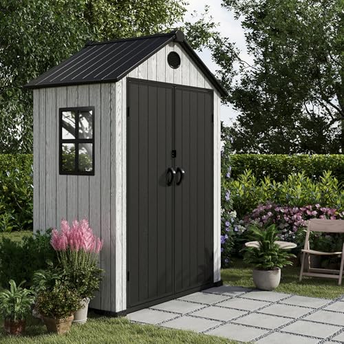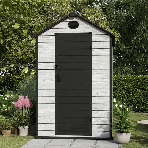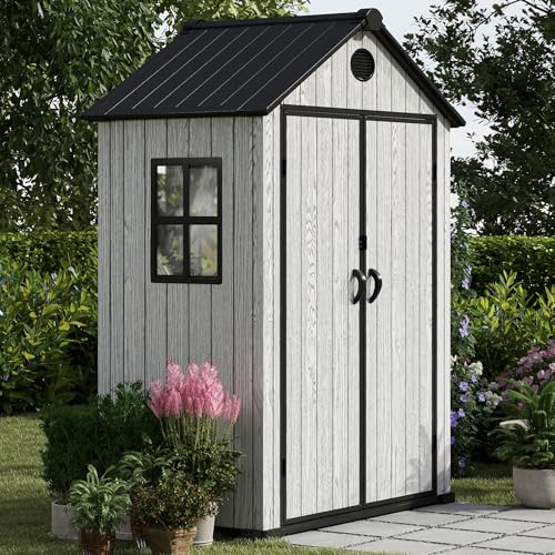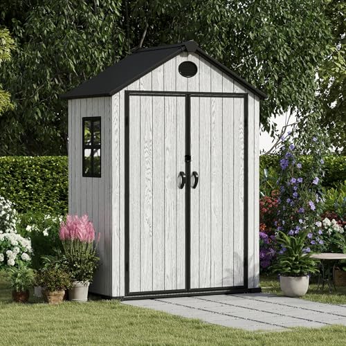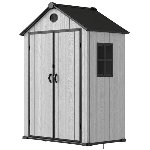 Resin Outdoor Storage Shed with Floor 5x4 FT Waterproof Plastic Sheds Kit Window Lockable Door Included, Outside Garden Tools Sheds for Backyard Patio